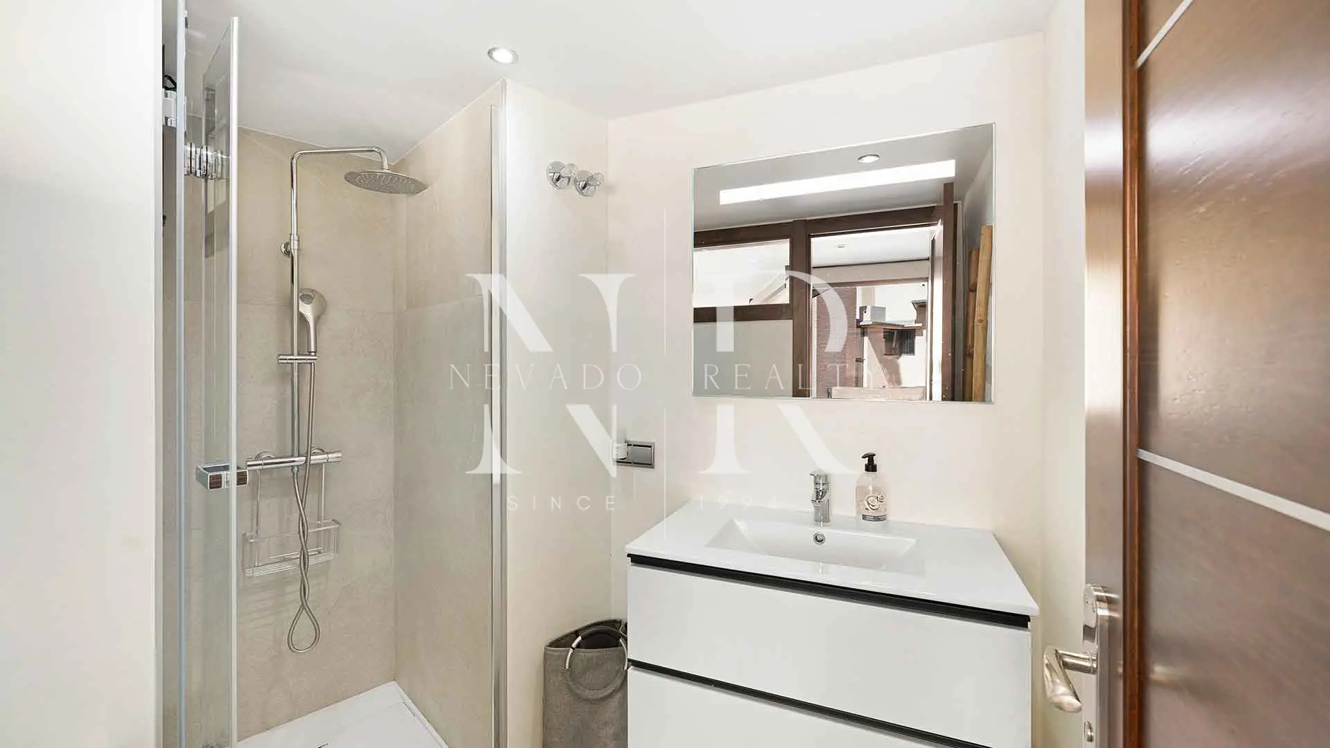 L’étage comprend une chambre supplémentaire avec salle de bains attenante, parfaite comme chambre d’amis, bureau ou espace polyvalent. Il y a également une terrasse privée orientée au nord, qui offre une fraîcheur estivale et un autre environnement confortable pour se détendre ou lire en plein air.