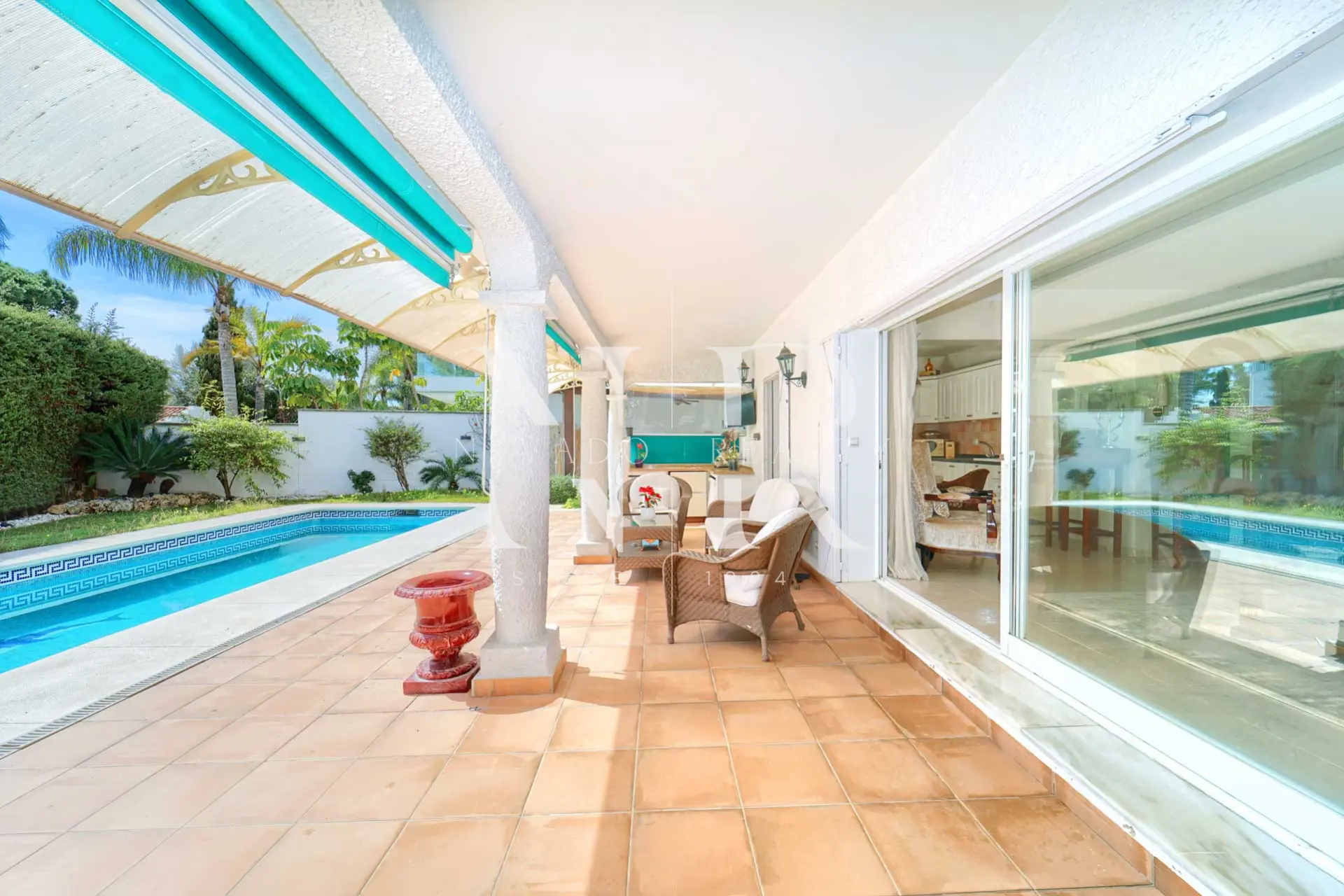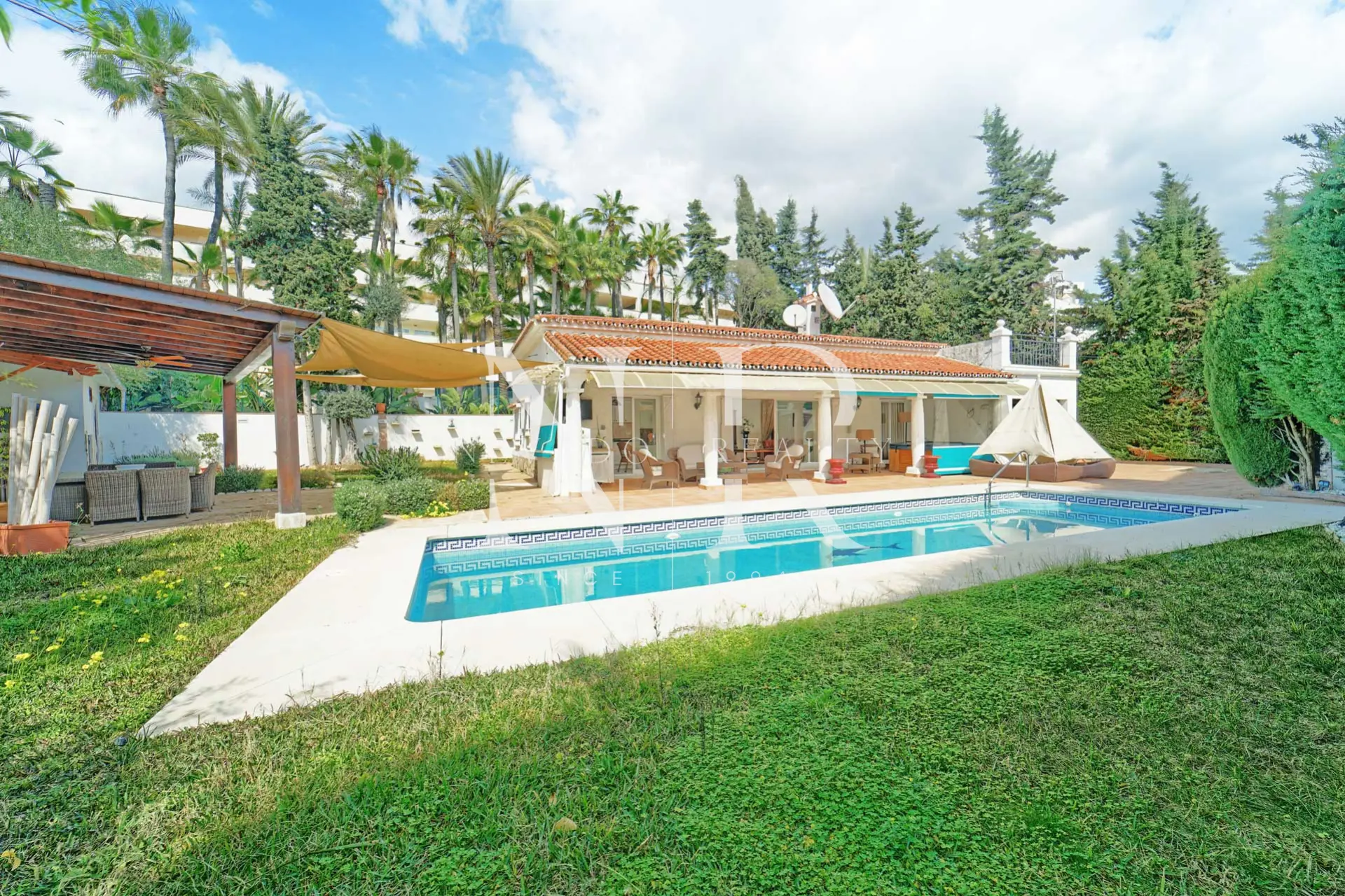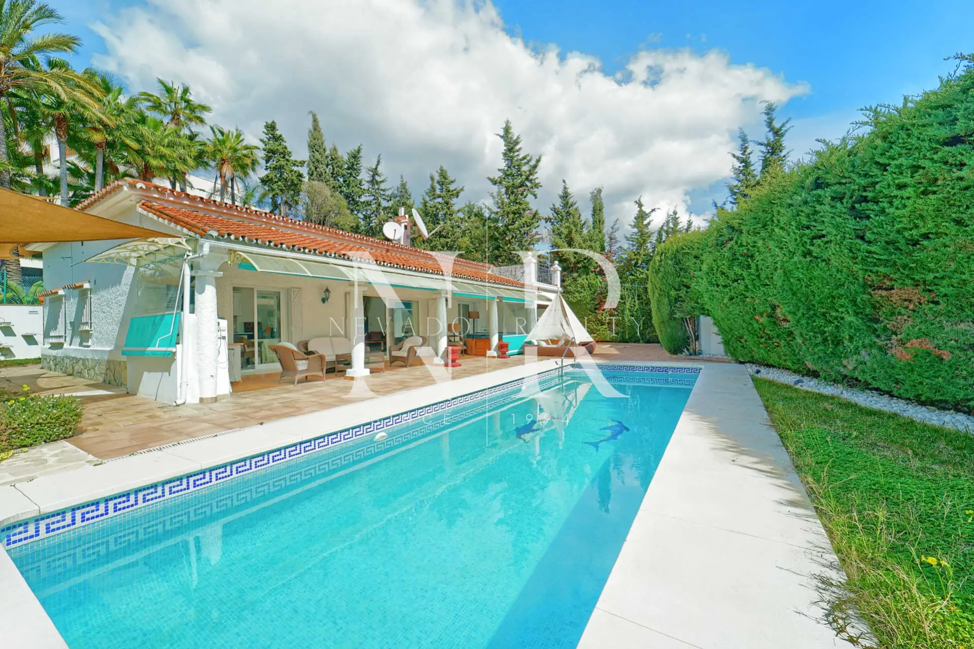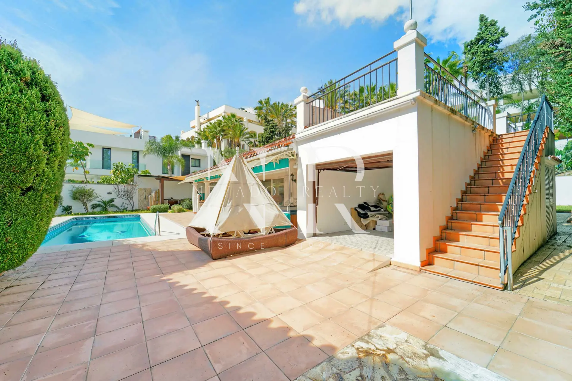 Villa à vendre sur le Golden Mile de Marbella. Villa de bord de mer à vendre dans le Golden Mile de Marbella dans une urbanisation bien connue à distance de marche de la plage et du Paseo Maritimo avec un emplacement privilégié offrant intimité et tranquillité. Il se trouve à distance de marche des clubs de plage, de la pharmacie, des supermarchés et de toutes les commodités. Plusieurs terrains de golf se trouvent à proximité, comme l’Aloha Golf Club, Los Naranjos Golf ou Rio Real Golf.