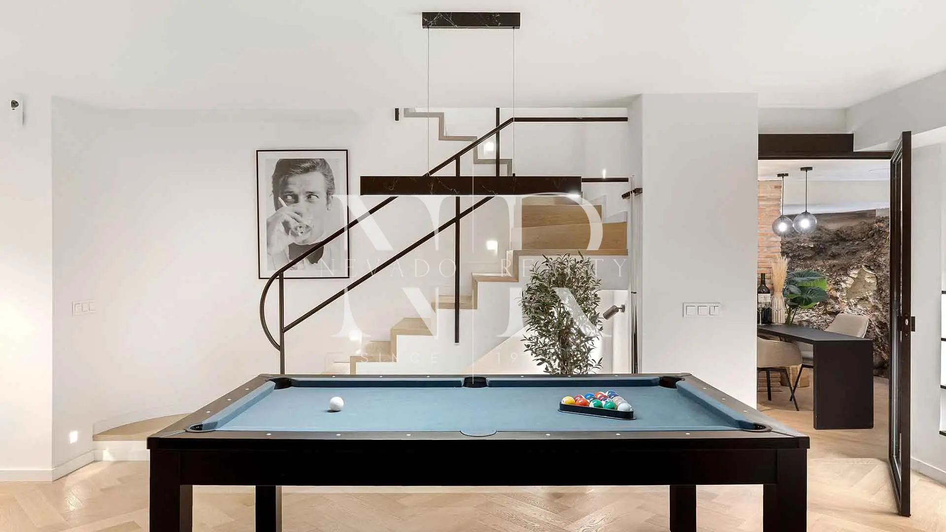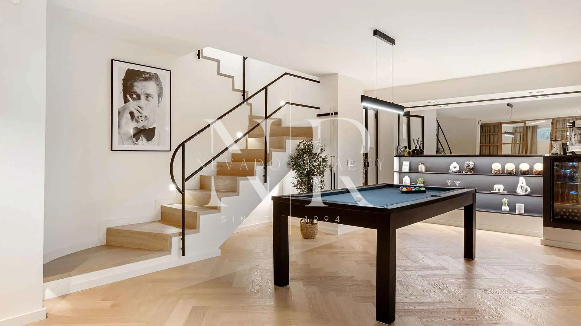 Cet appartement offre également un espace de divertissement exclusif, avec un home cinéma équipé d’un système Dolby Stereo Surround, une table de billard, un bar et une salle de sport. Une impressionnante cave à vin construite dans la roche naturelle de la montagne ajoute une touche distinctive au design de la maison. À l’extérieur, vous pourrez profiter d’une terrasse privée avec barbecue et douche extérieure, idéale pour les loisirs et la détente. Le chauffage au sol dans les salles de bains, la climatisation, une place de parking couverte et une salle de rangement sont autant d’équipements supplémentaires.