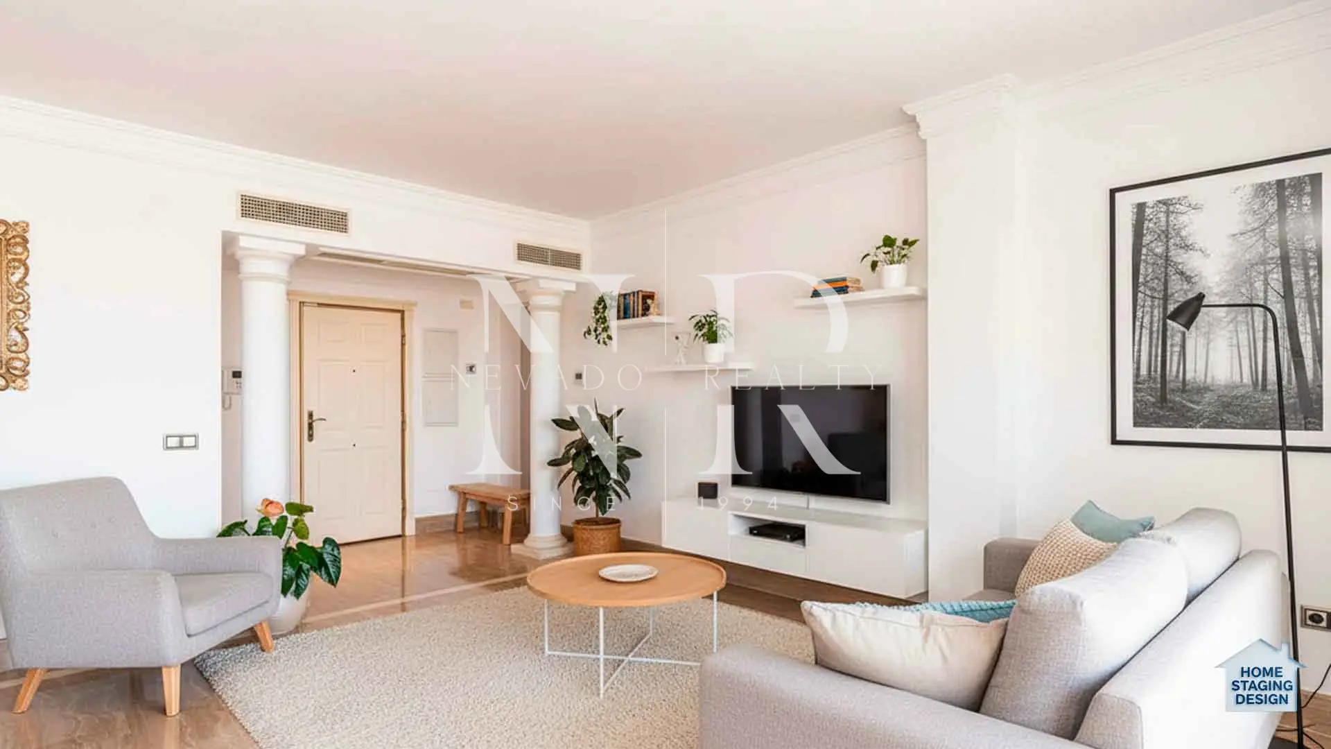 Cette propriété est en excellent état et a été conçue avec des matériaux de haute qualité, tels que des sols en marbre, de grandes baies vitrées qui optimisent la lumière naturelle et un système de climatisation centralisé. Elle comprend également trois places de parking dans le parking souterrain du complexe et un débarras privé de 18 m², ce qui ajoute à son exclusivité.