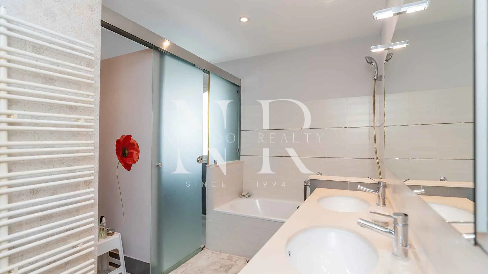 Réparti sur un seul étage, l’appartement se distingue par son design fonctionnel et sa grande luminosité. Le salon principal, spacieux et accueillant, s’ouvre sur une grande terrasse orientée au sud, idéale pour profiter de la vue imprenable sur la mer. La cuisine est entièrement équipée et communique avec une salle à manger supplémentaire, qui donne à son tour sur un deuxième salon avec vue sur la montagne. La suite principale dispose d’un accès direct à la terrasse principale, ainsi que d’un dressing et d’une salle de bain privée. Les deux autres chambres, qui donnent également sur une terrasse, partagent une salle de bain complète et offrent une vue sur la montagne de La Concha.