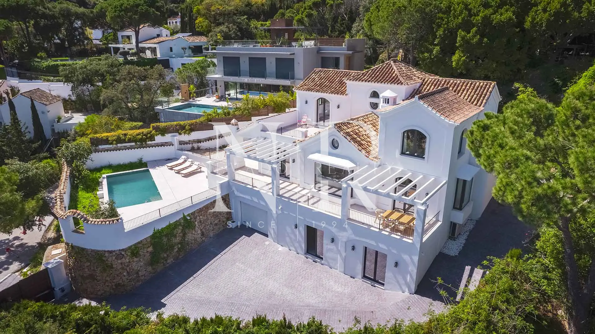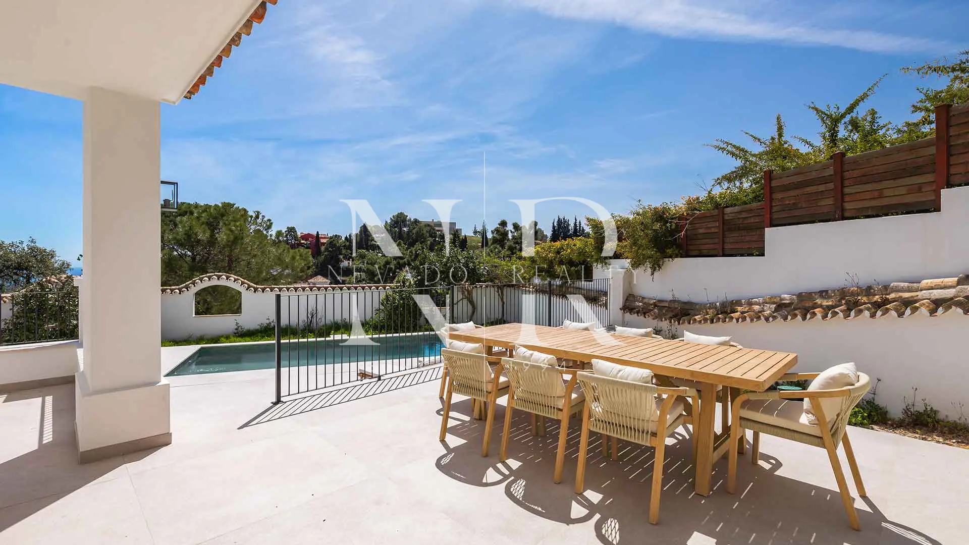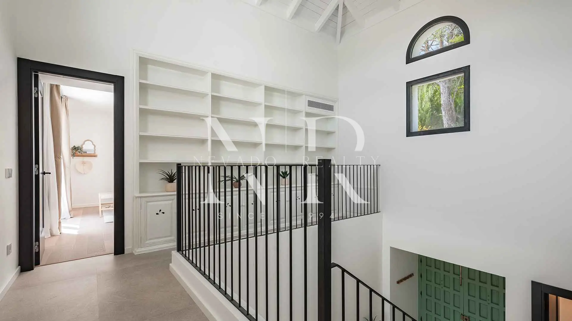 Villa entièrement rénovée à vendre dans le domaine sécurisé d’El Madroñal. Située dans un quartier résidentiel prestigieux, cette villa entièrement rénovée offre une combinaison exceptionnelle d’élégance, de confort et de style de vie méditerranéen. Nichée sur un terrain surélevé bénéficiant d’une orientation sud-sud-est, la propriété jouit d’une luminosité naturelle abondante tout au long de la journée et d’une vue panoramique sur la mer. Garantissant une intimité totale et une sécurité 24h/24, elle constitue le refuge idéal pour ceux qui recherchent la tranquillité, le prestige et la proximité des meilleures commodités.