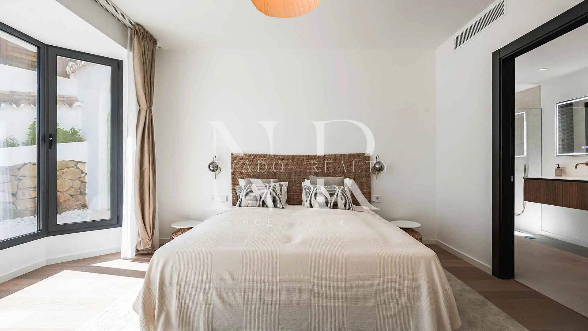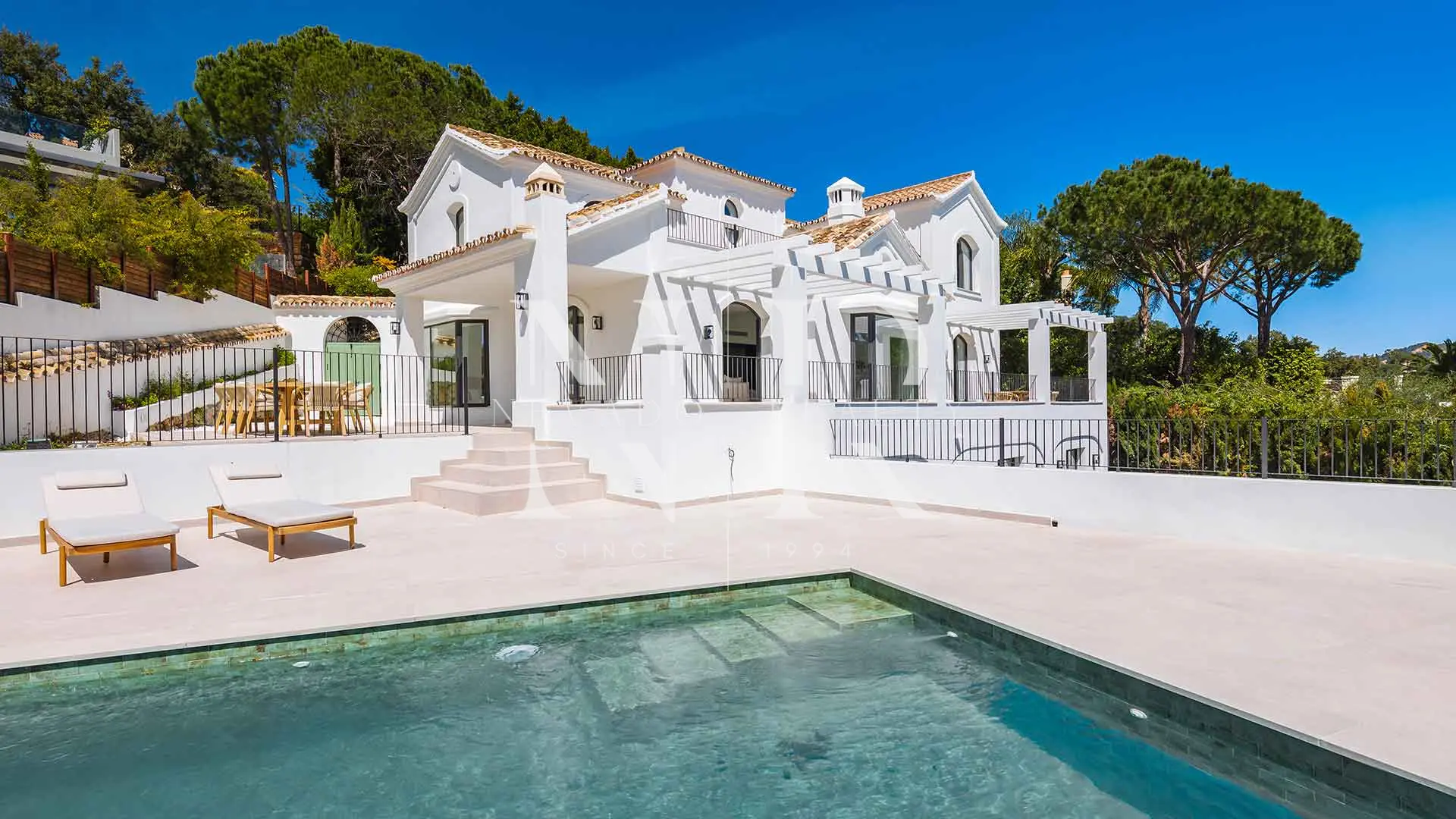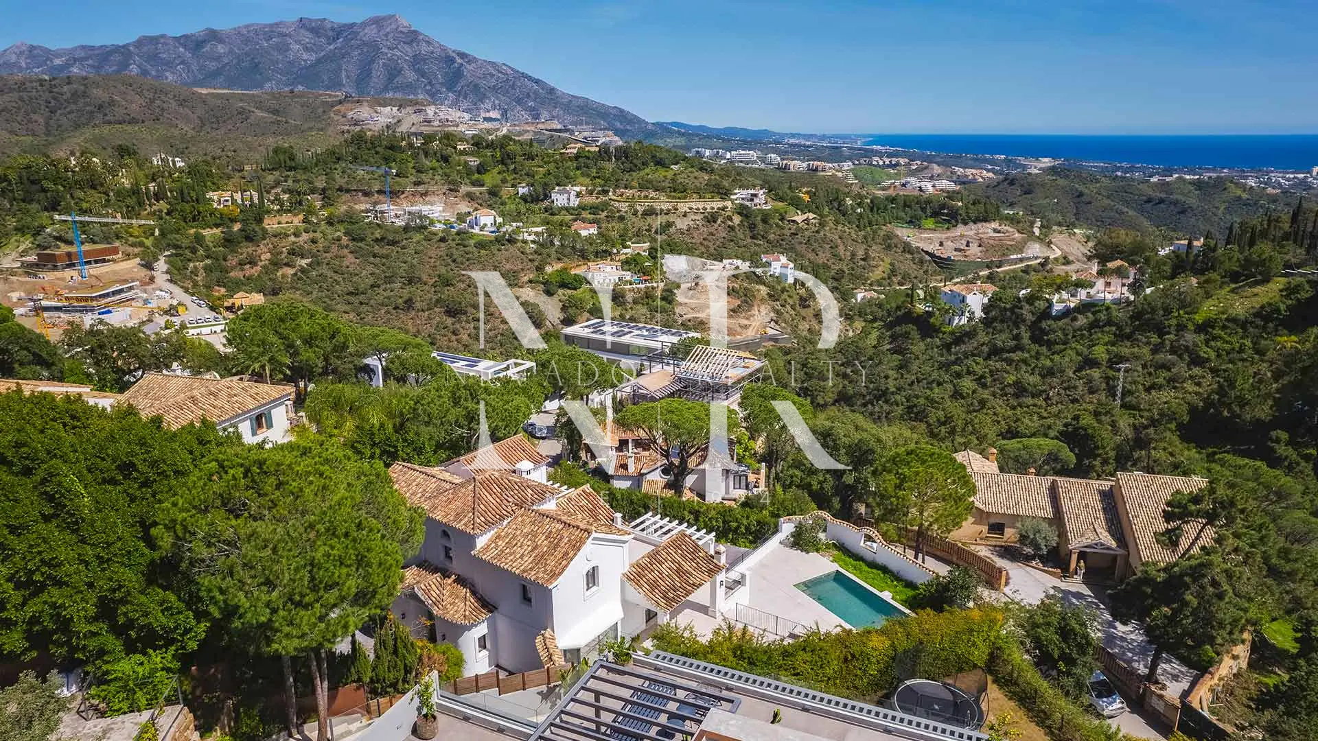Villa entièrement rénovée à vendre dans le domaine sécurisé d’El Madroñal. Située dans un quartier résidentiel prestigieux, cette villa entièrement rénovée offre une combinaison exceptionnelle d’élégance, de confort et de style de vie méditerranéen. Nichée sur un terrain surélevé bénéficiant d’une orientation sud-sud-est, la propriété jouit d’une luminosité naturelle abondante tout au long de la journée et d’une vue panoramique sur la mer. Garantissant une intimité totale et une sécurité 24h/24, elle constitue le refuge idéal pour ceux qui recherchent la tranquillité, le prestige et la proximité des meilleures commodités.