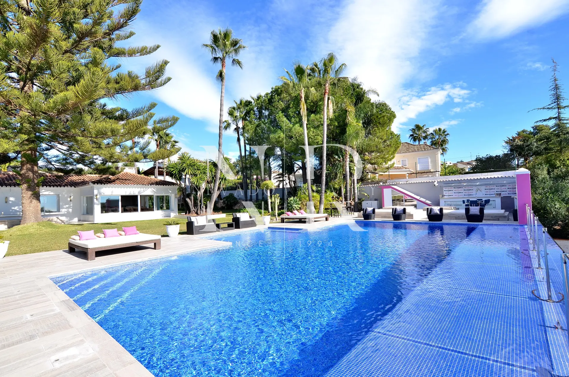 Villa à Elviria avec belle vue sur la mer à vendre. Villa de luxe en position de vente élevé à Marbella Est offrant une vue magnifique sur la mer avec de magnifiques installations extérieures conçues pour profiter de tout soleil toute l’année et Marbella avec la famille et les amis situés à quelques minutes de la plage, centre commercial avec toutes sortes de services tels que les banques, les supermarchés, les restaurants et le célèbre club de plage Nikki Beach.