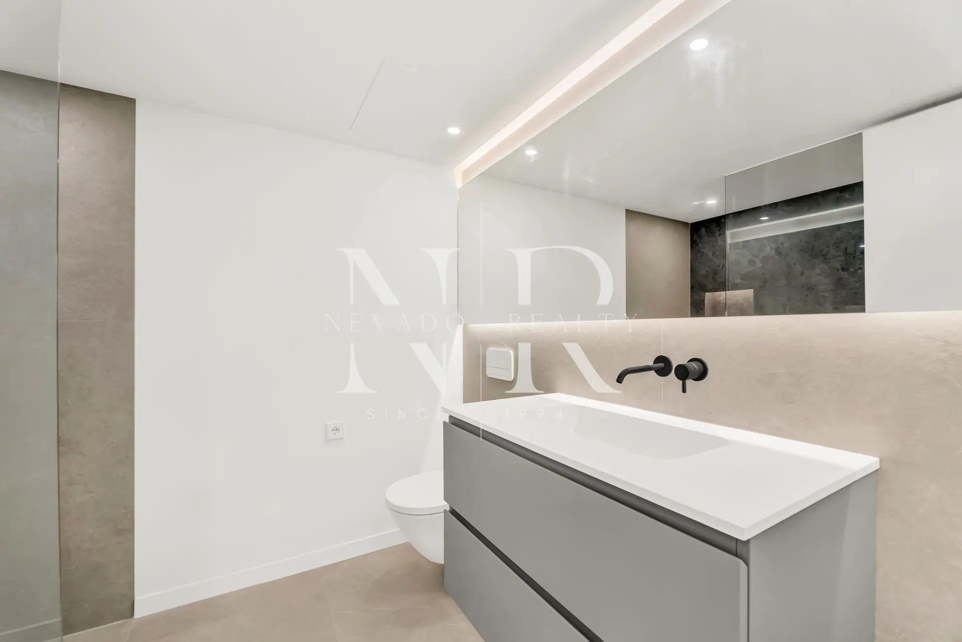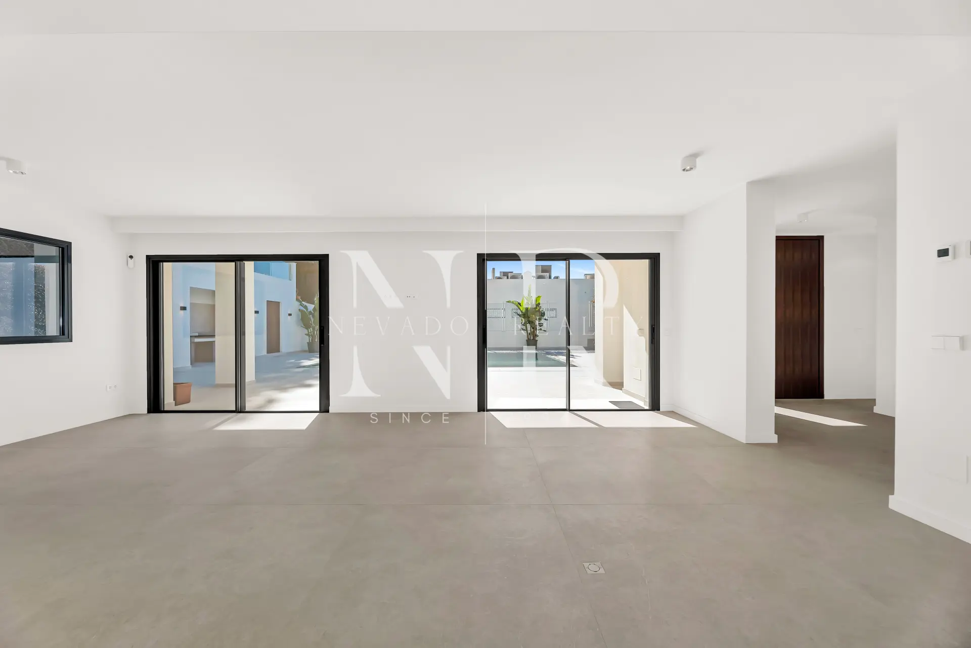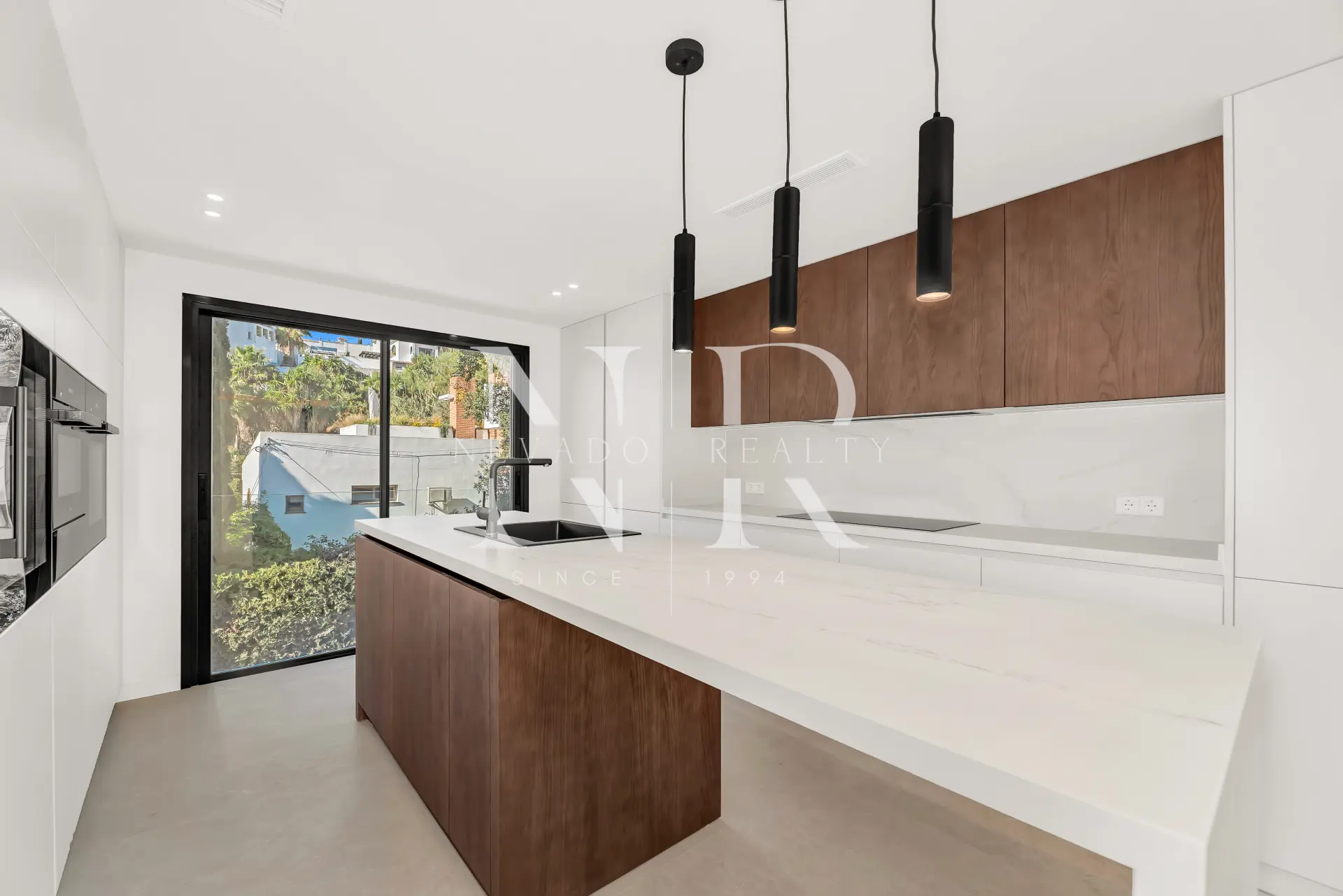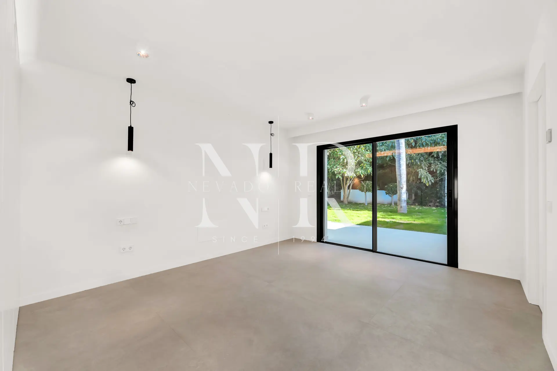 Villa entièrement rénovée à vendre à Elviria. Située dans une rue calme sans issue au cœur d’Elviria, à Marbella Est, cette impressionnante villa moderne se distingue par son architecture aux lignes épurées. Avec un terrain de 1 100 m² et une surface construite de 460 m², cette propriété offre intimité, confort et proximité de tous les services essentiels, notamment les commerces, les restaurants et les écoles internationales.