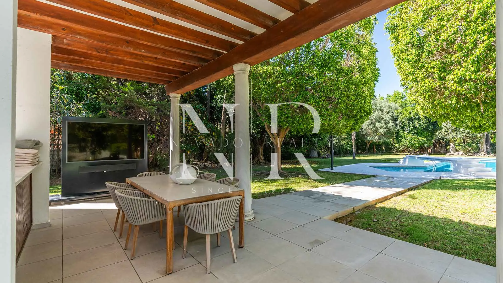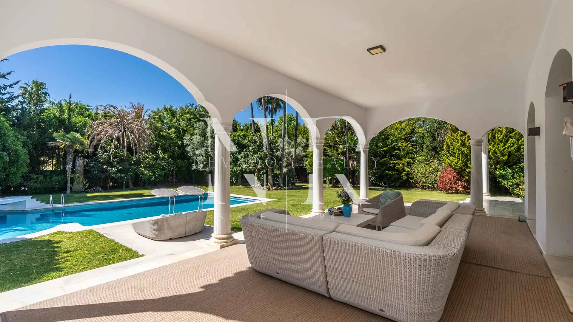 Entourée de jardins luxuriants avec irrigation automatique par eau naturelle, la résidence se présente comme une retraite idéale sur la Costa del Sol. Son architecture classique est complétée par une entrée imposante et un environnement résidentiel bien établi, avec un accès facile aux terrains de golf, aux écoles internationales et aux magasins.