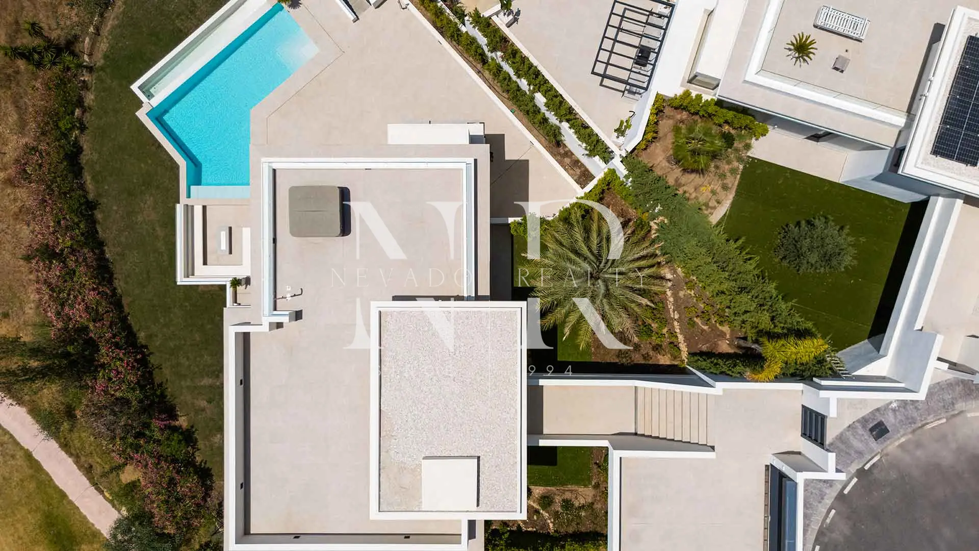 Villa neuve à vendre à La Resina Golf. Située dans le cadre prestigieux de La Resina Golf, l’un des quartiers les plus calmes et les mieux établis d’Estepona, cette villa neuve se distingue par son design avant-gardiste et son intégration harmonieuse dans le paysage. Conçue par l’architecte Francisco Martínez Galván, la propriété combine des lignes épurées, des matériaux nobles et une distribution pensée pour maximiser le confort et la connexion avec l’extérieur. Située sur un terrain surélevé, elle offre une vue imprenable sur la mer Méditerranée et le terrain de golf, créant un environnement idéal pour vivre ou profiter d’une résidence secondaire haut de gamme.