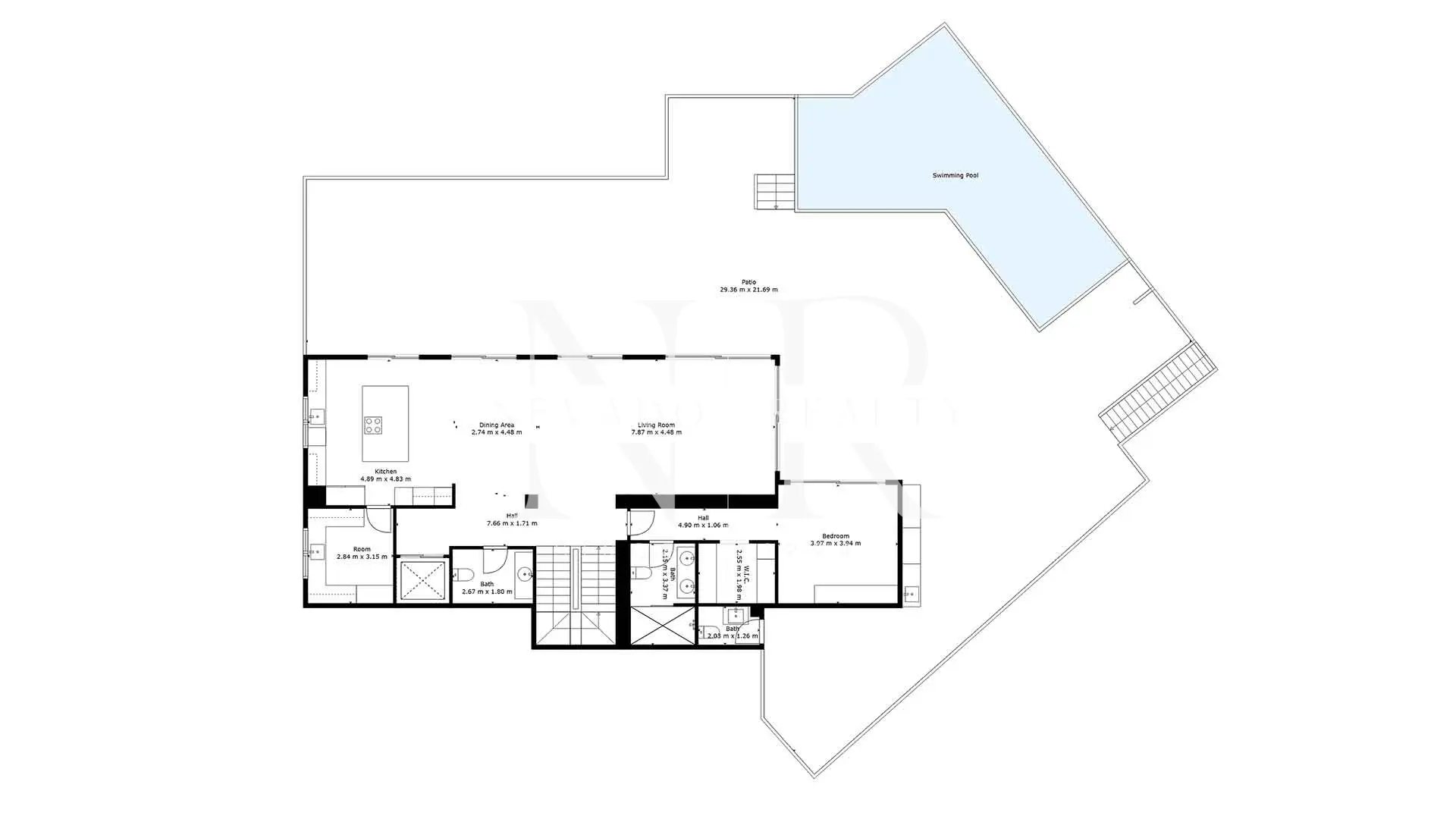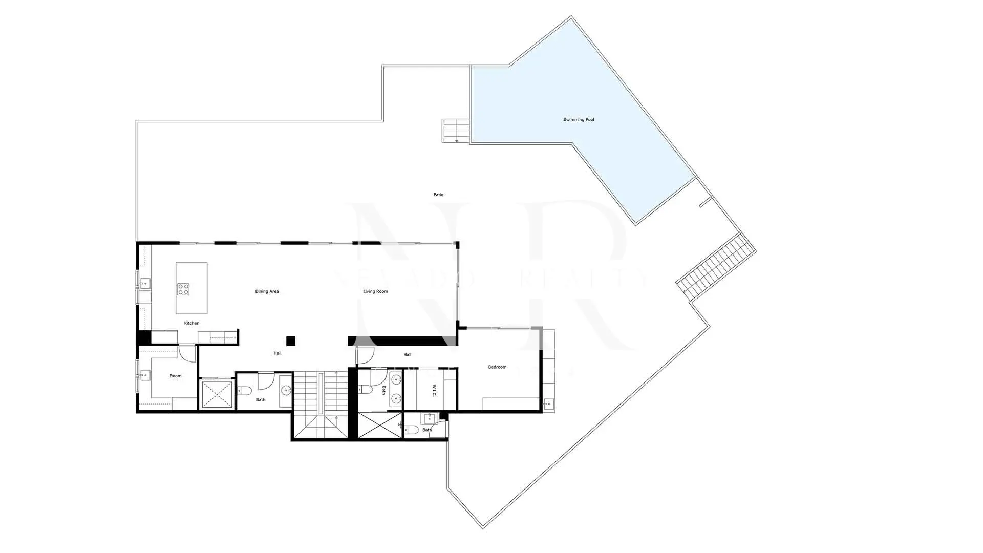 L’espace extérieur est complété par une piscine à débordement d’eau salée, entourée de jardins matures et d’une végétation tropicale qui apportent intimité et sérénité. Au même niveau se trouve une chambre d’amis avec salle de bains attenante.