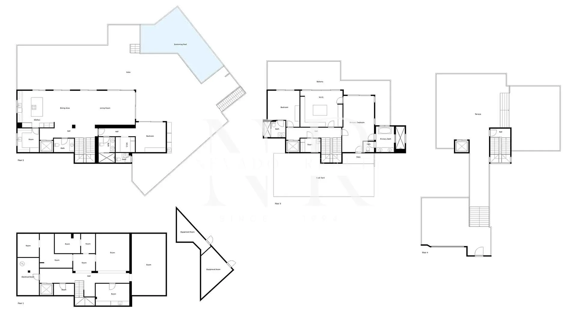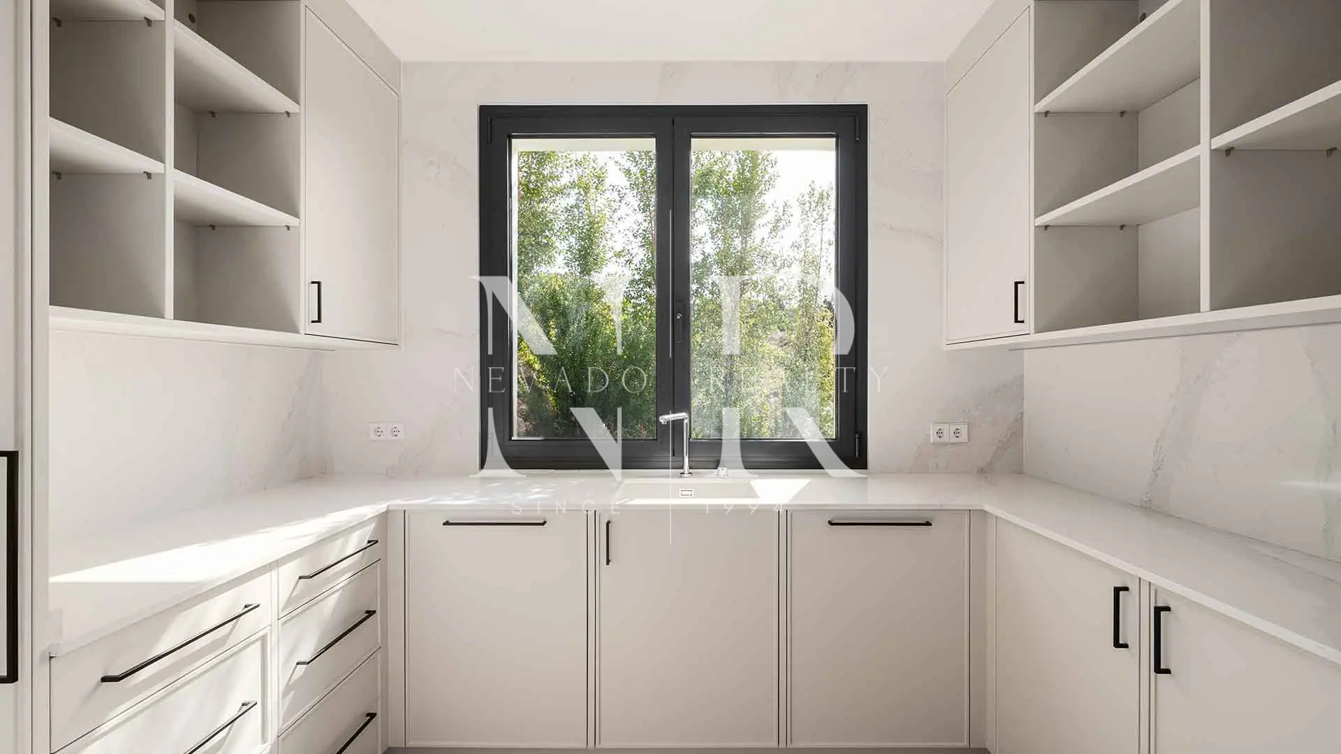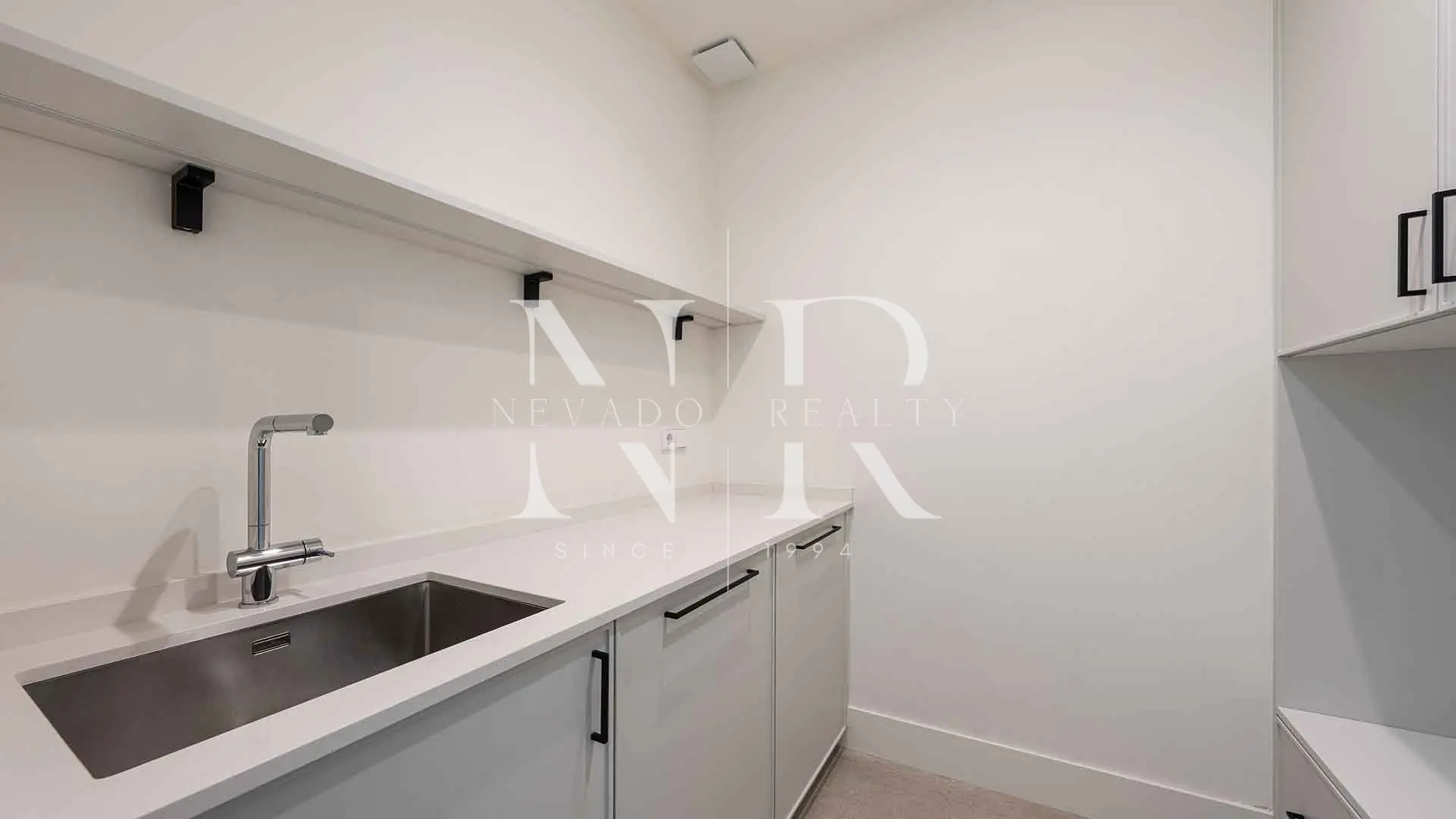 Au rez-de-chaussée, nous trouvons une distribution ouverte qui intègre le salon, la salle à manger et une élégante cuisine avec un îlot central en pierre naturelle. Une deuxième cuisine d’appoint offre une plus grande fonctionnalité au quotidien ou lors de réceptions.