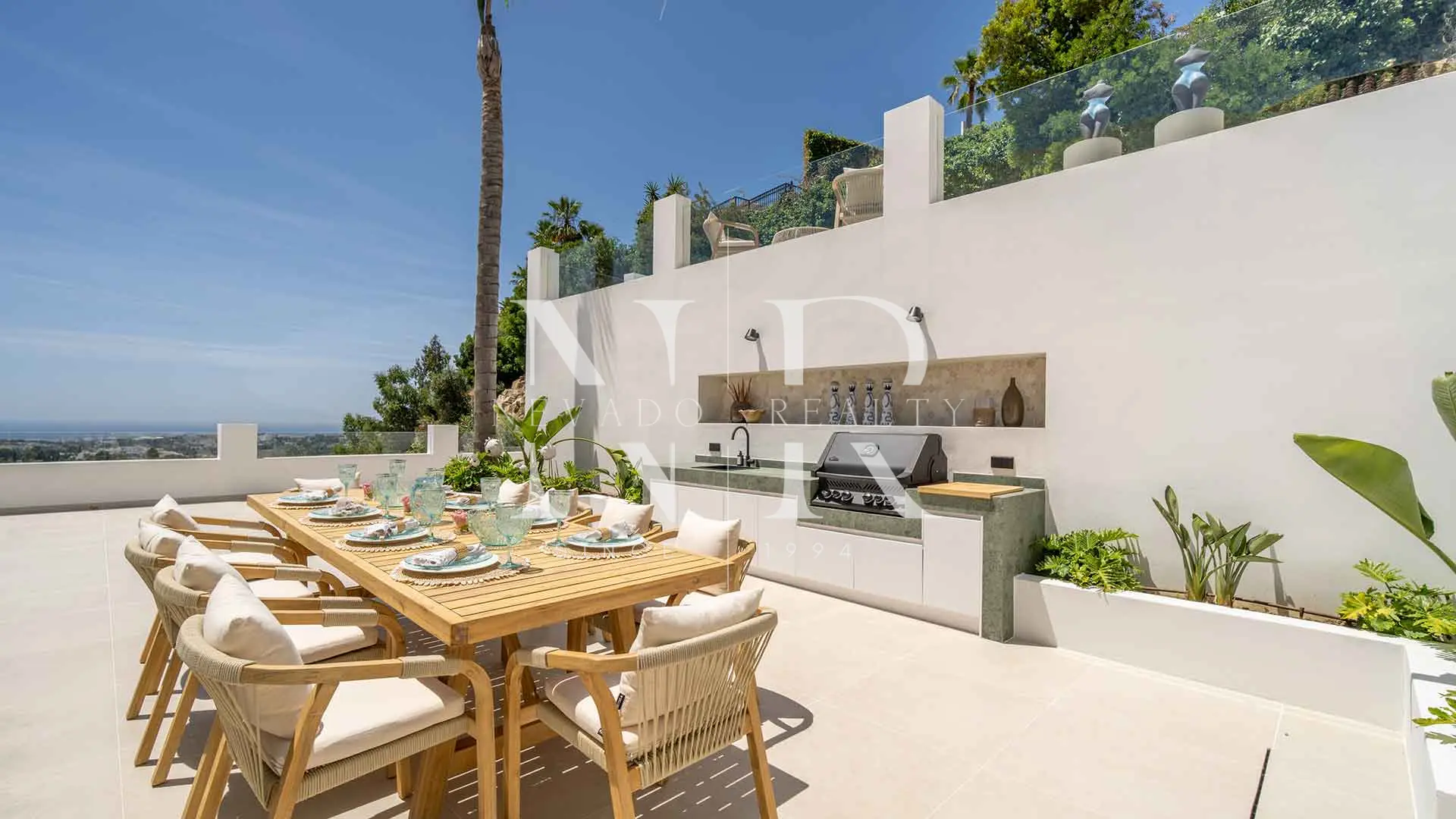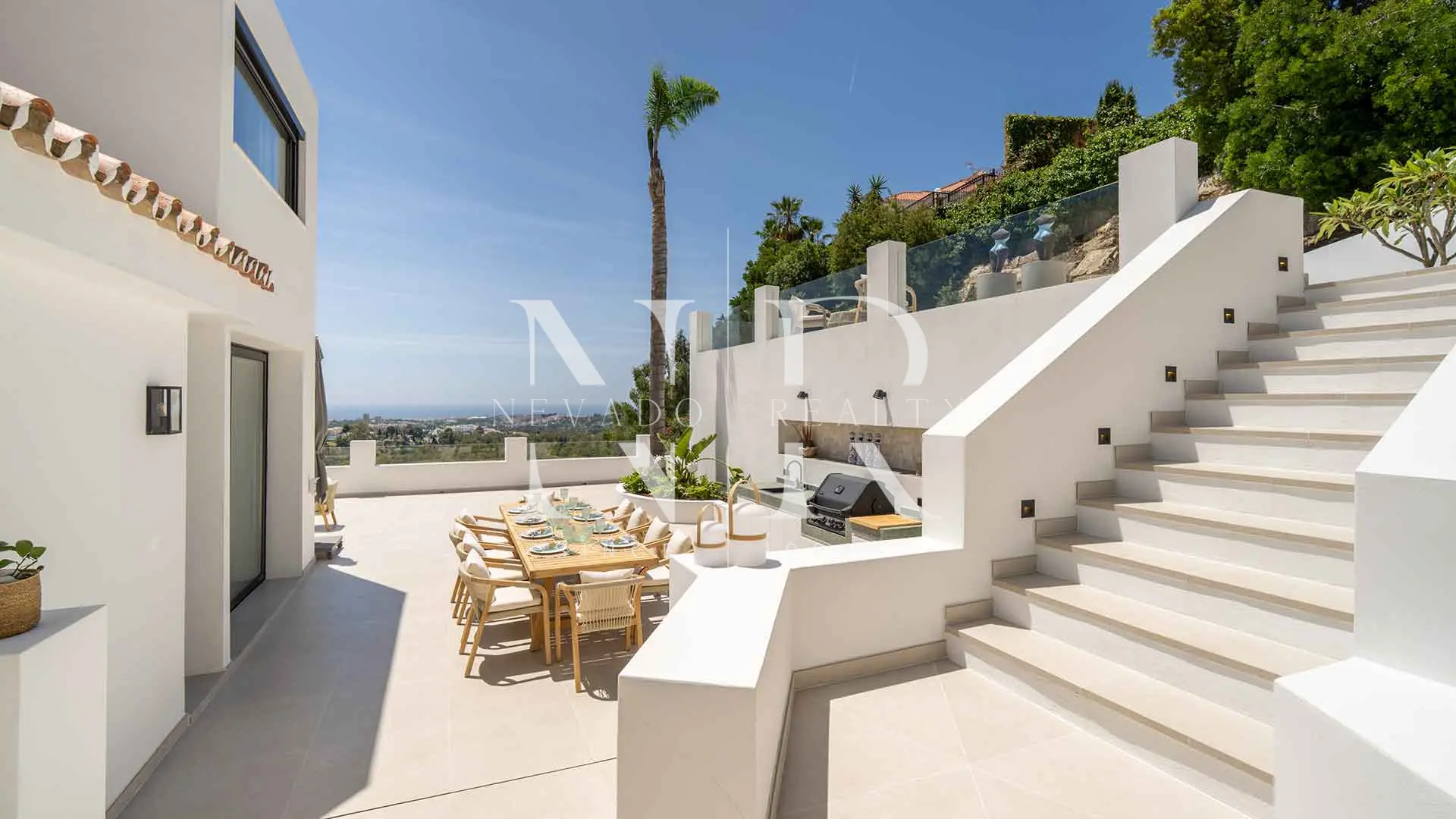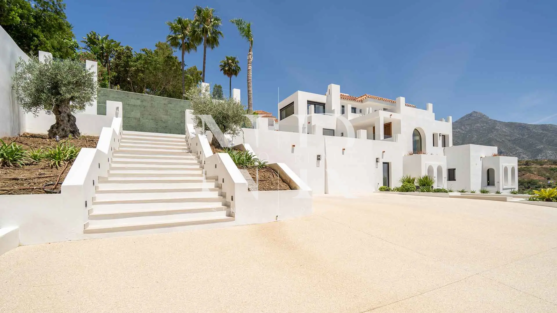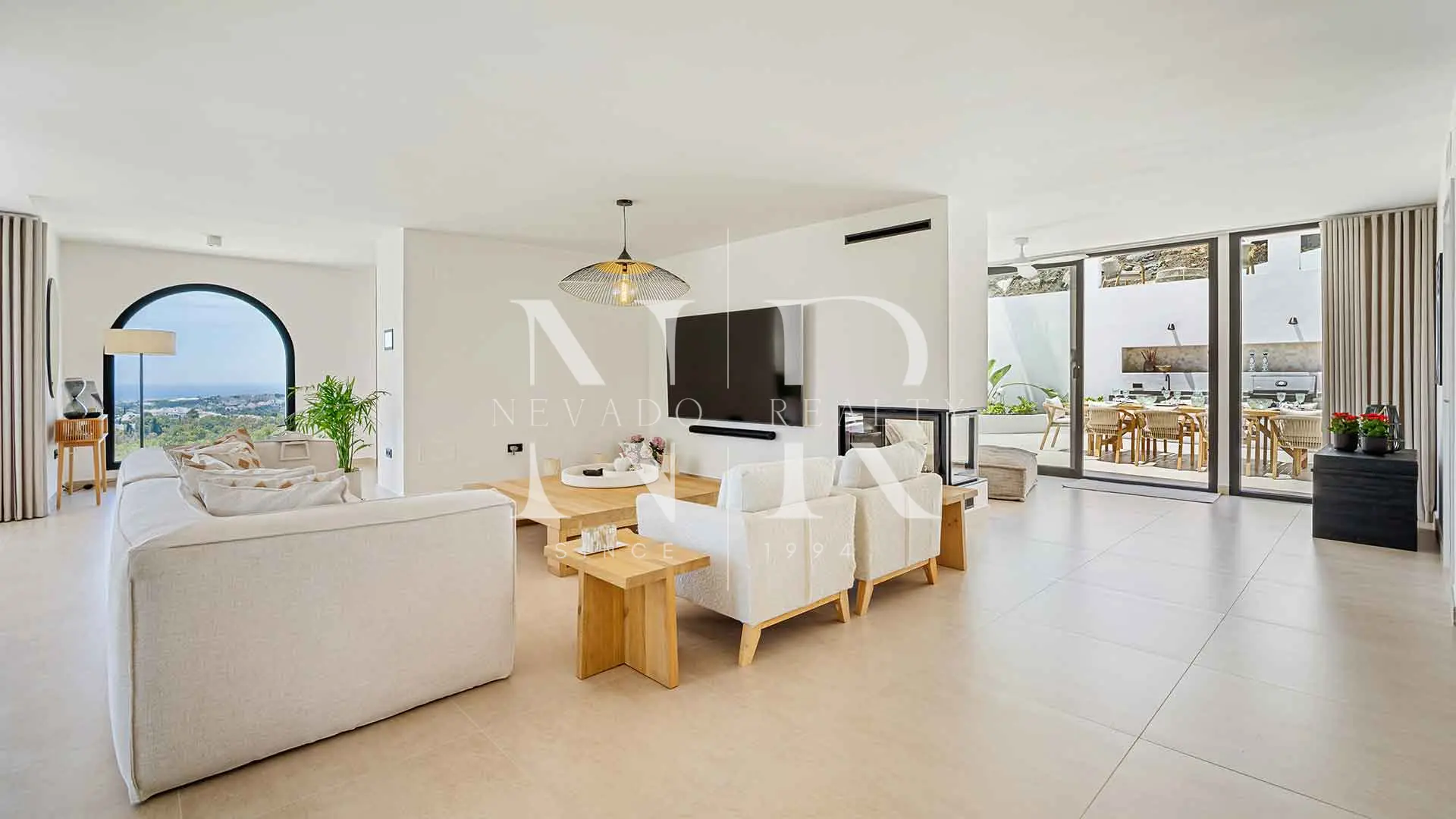 Villa à vendre à Las Lomas de Nueva Andalucía avec vue panoramique sur la mer. Nichée dans l’un des quartiers les plus privilégiés de Nueva Andalucía, cette villa spectaculaire redéfinit le luxe méditerranéen en alliant design contemporain, confort et vues imprenables.