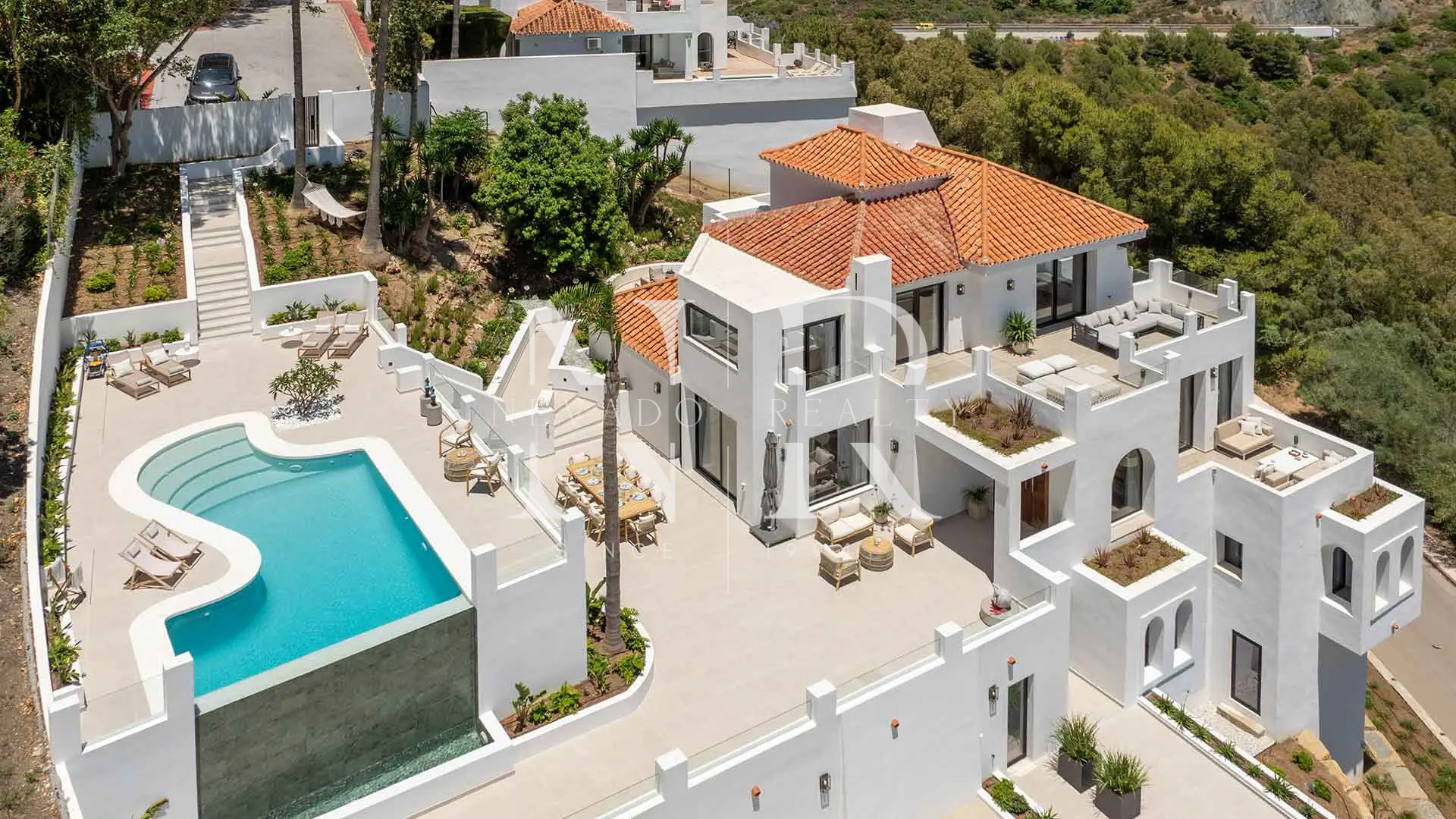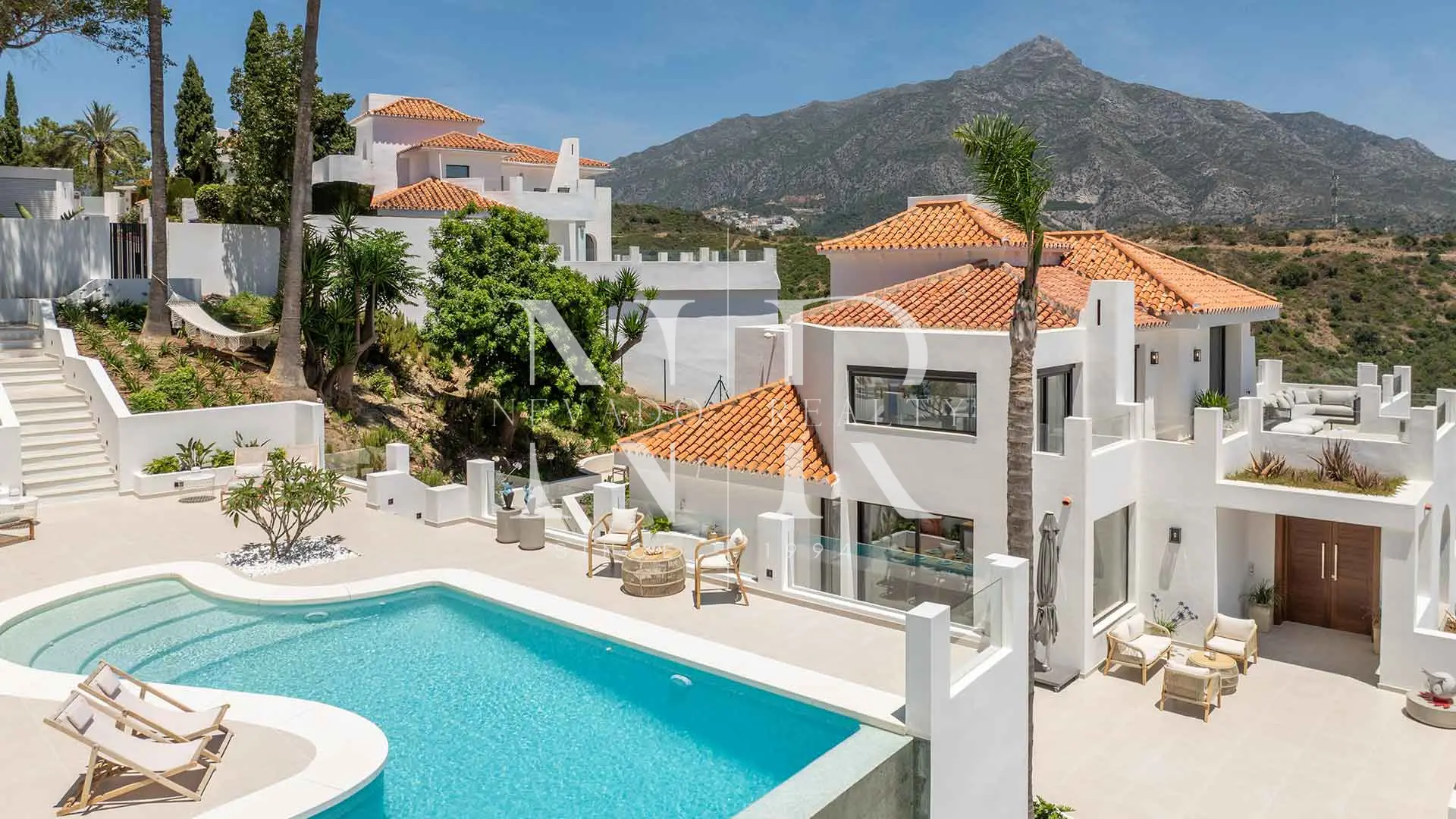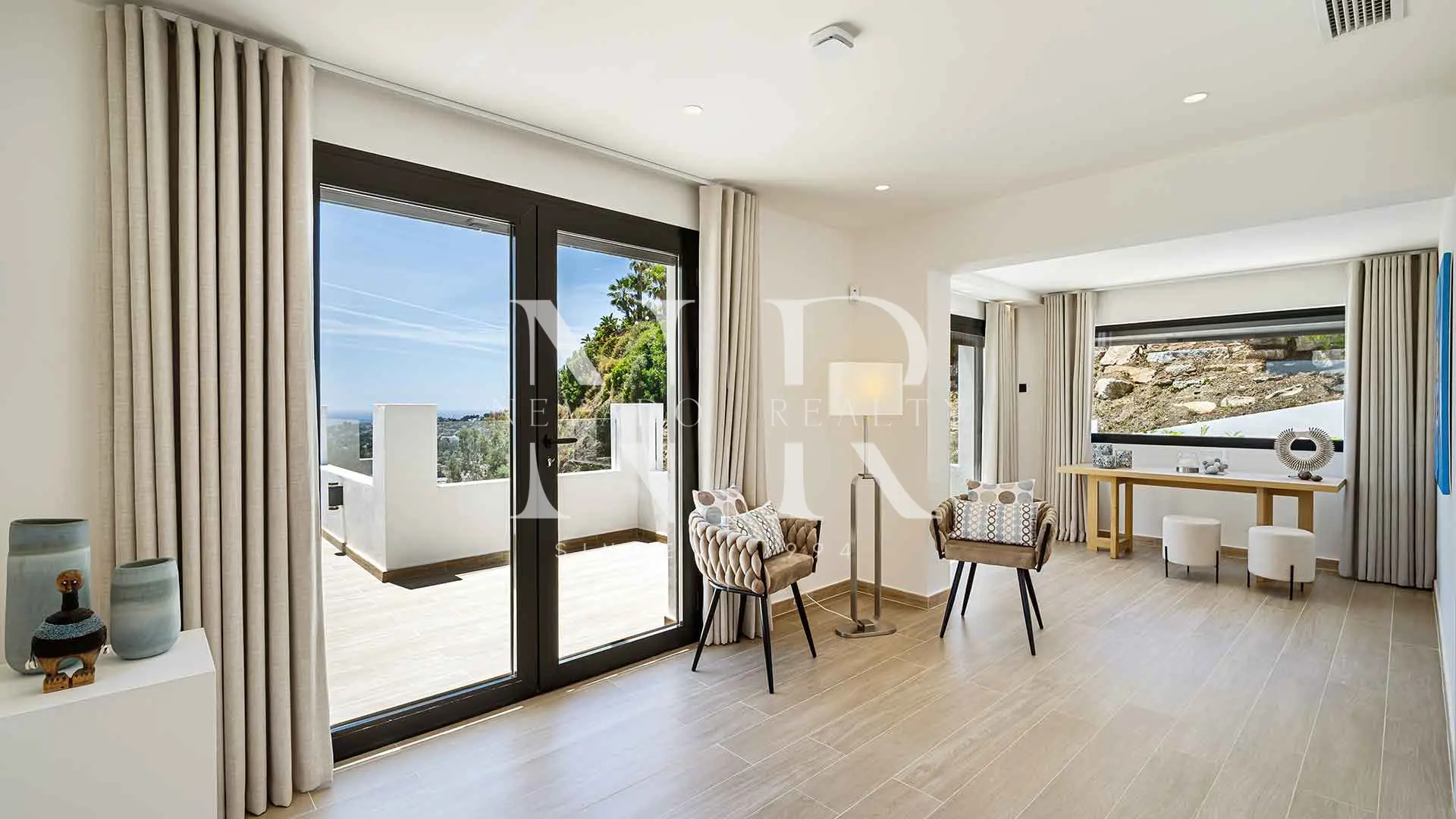 Villa à vendre à Las Lomas de Nueva Andalucía avec vue panoramique sur la mer. Nichée dans l’un des quartiers les plus privilégiés de Nueva Andalucía, cette villa spectaculaire redéfinit le luxe méditerranéen en alliant design contemporain, confort et vues imprenables.