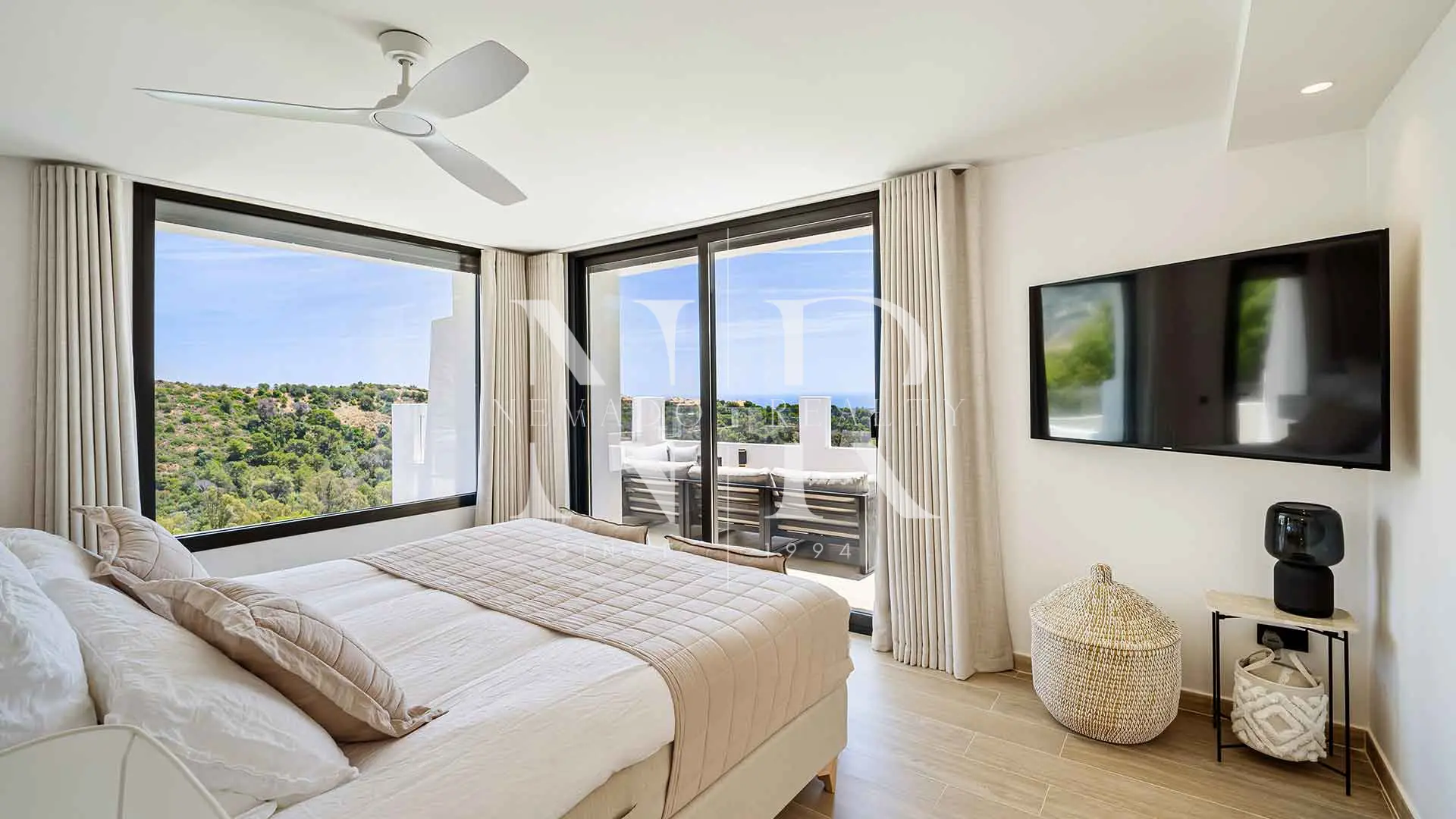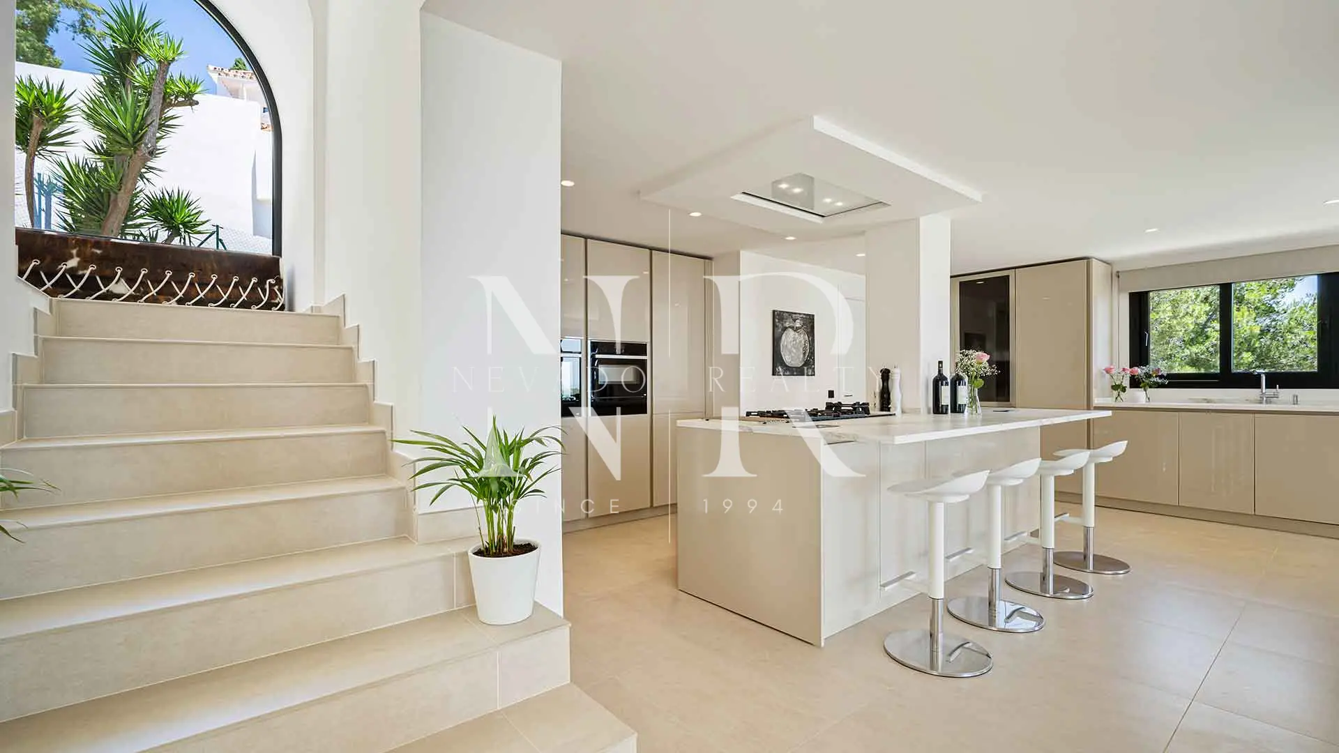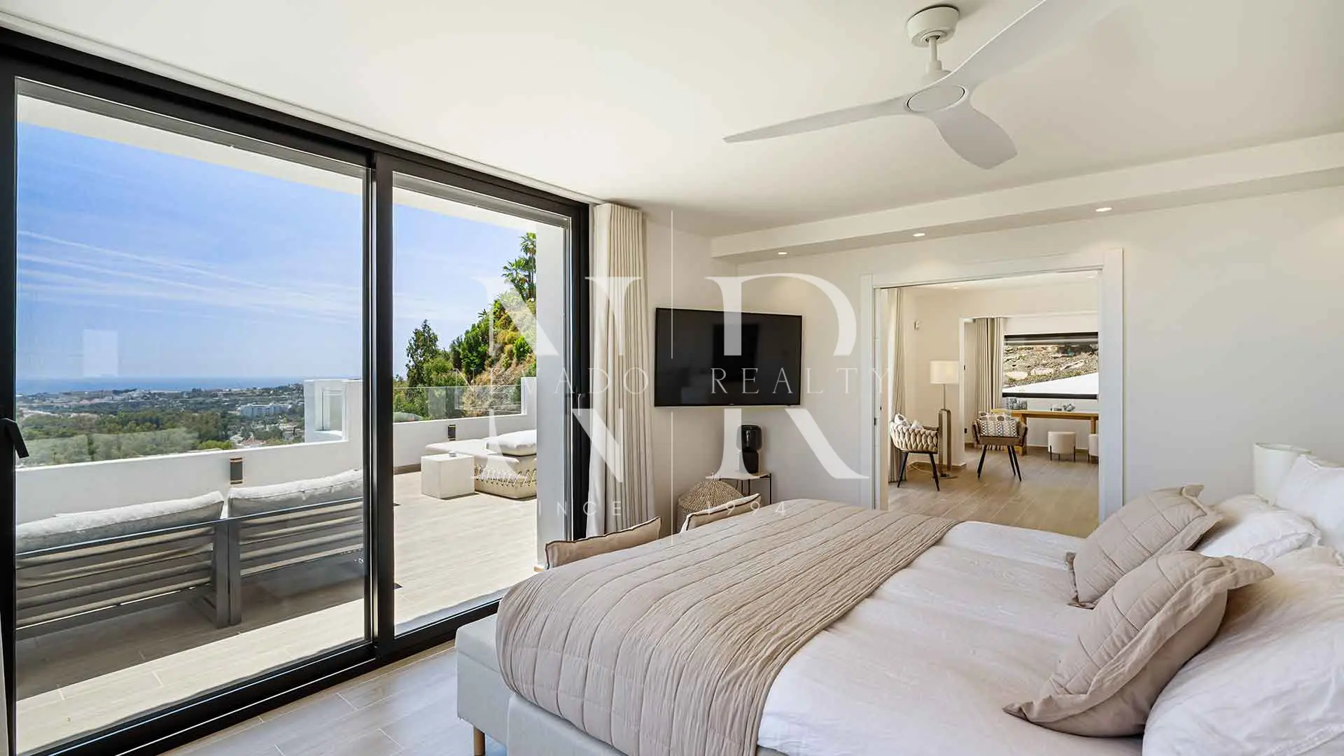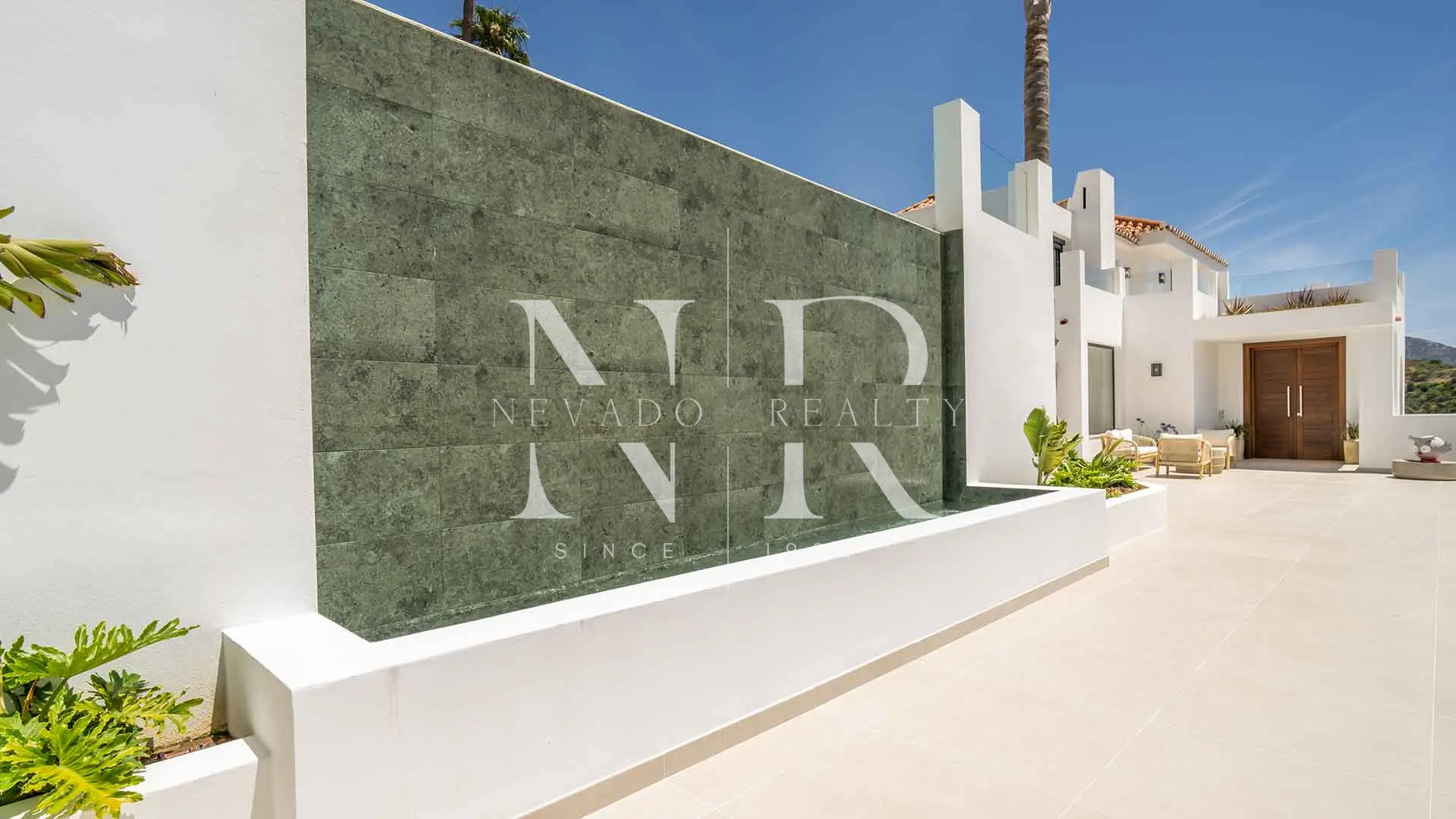 Villa à vendre à Las Lomas de Nueva Andalucía avec vue panoramique sur la mer. Nichée dans l’un des quartiers les plus privilégiés de Nueva Andalucía, cette villa spectaculaire redéfinit le luxe méditerranéen en alliant design contemporain, confort et vues imprenables.