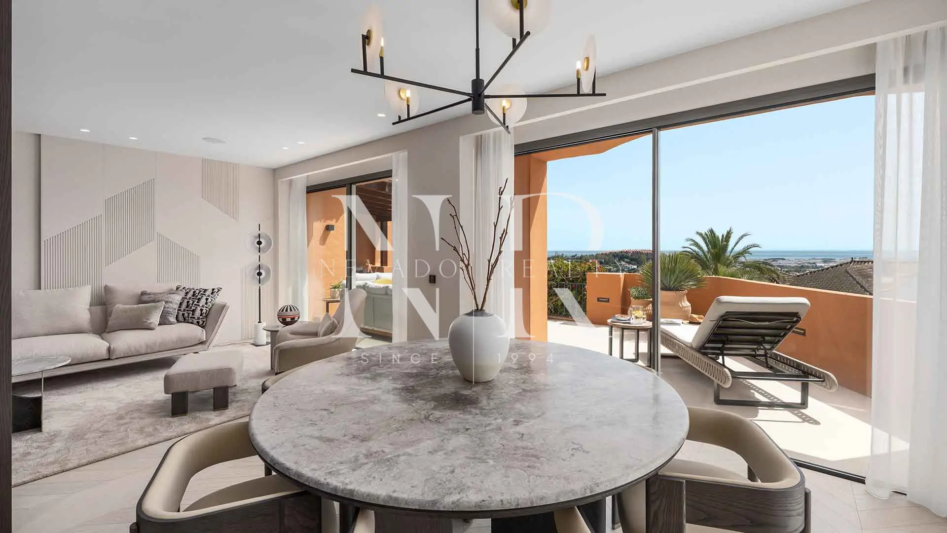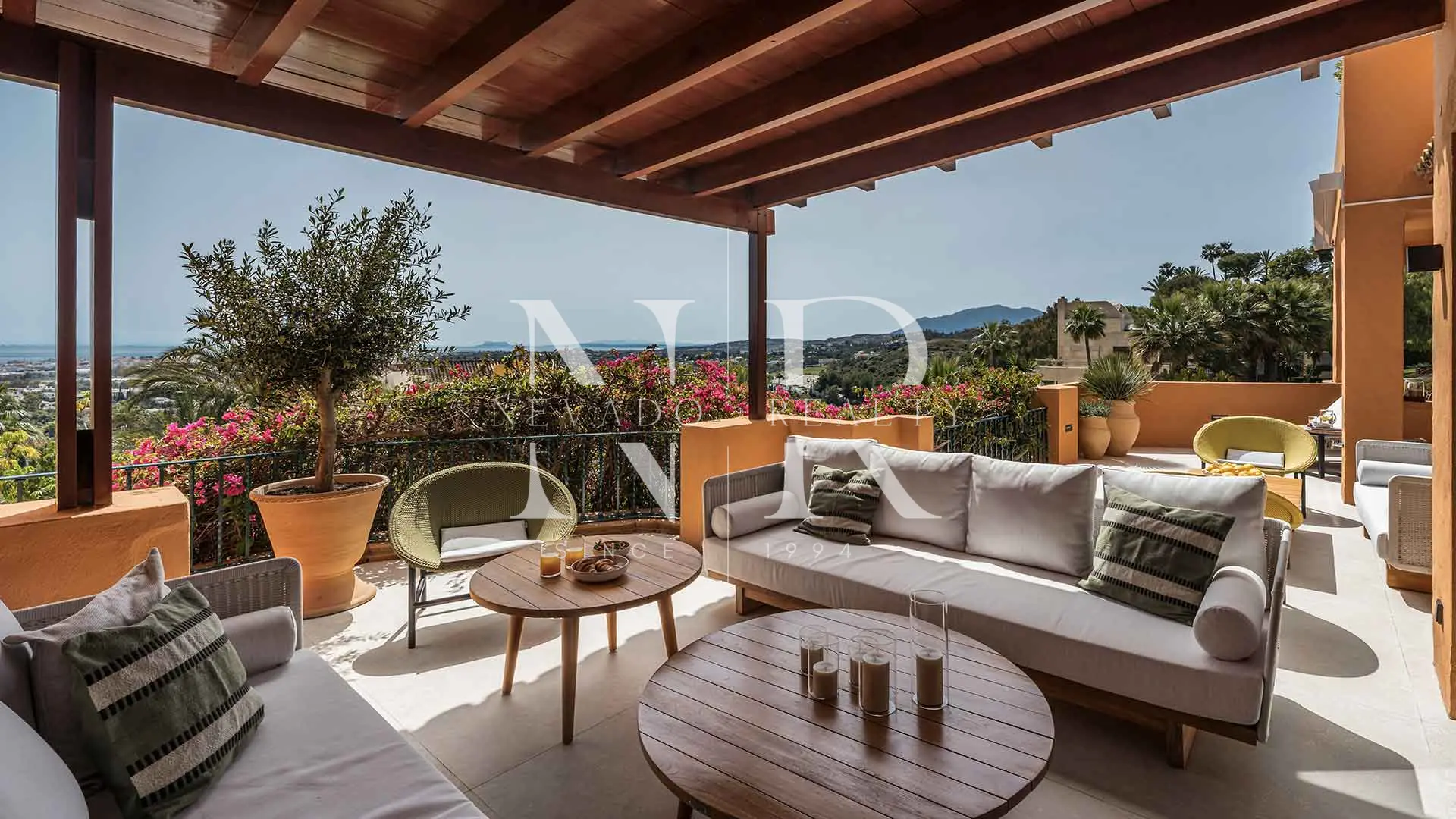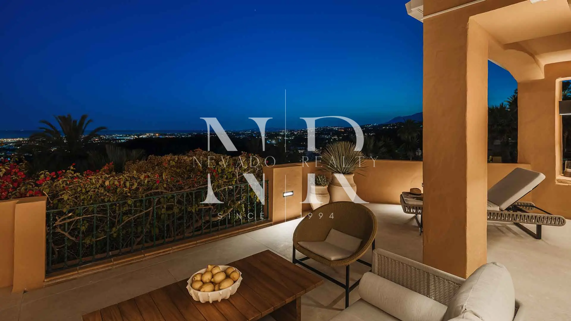 Appartement à vendre dans le lotissement Les Belvederes avec vue panoramique sur la mer. Niché à Nueva Andalucía, dans la communauté de Les Belvédères, cet appartement de quatre chambres a été entièrement rénové avec des finitions haut de gamme et un design contemporain conçu pour offrir un confort maximal. Situé en hauteur, il bénéficie d’une vue spectaculaire qui s’étend des terrains de golf à la mer Méditerranée, en passant par les majestueuses montagnes de la région.