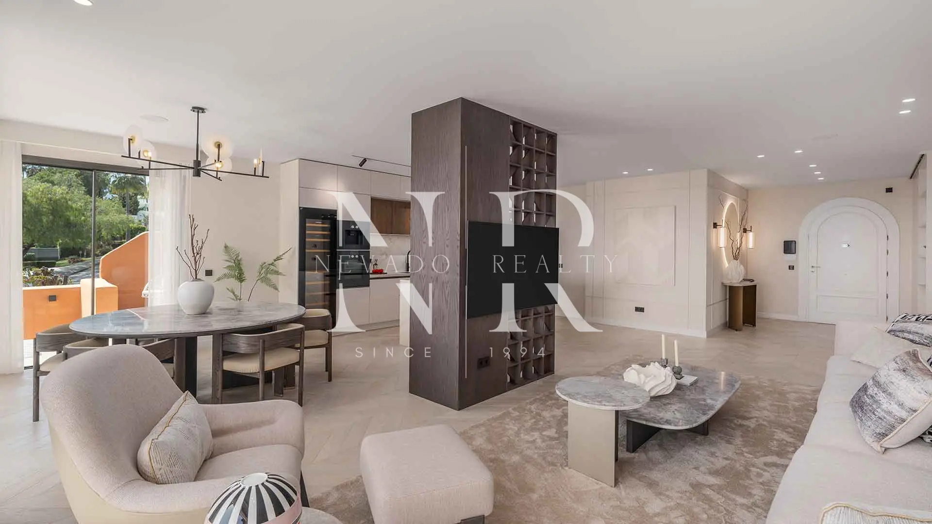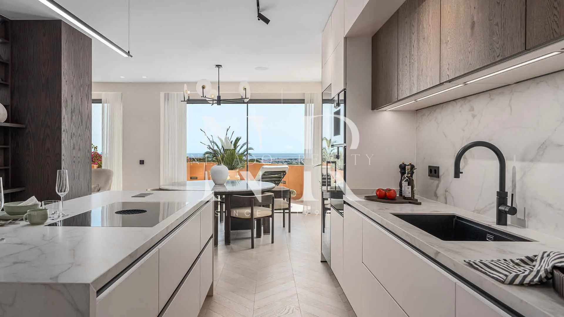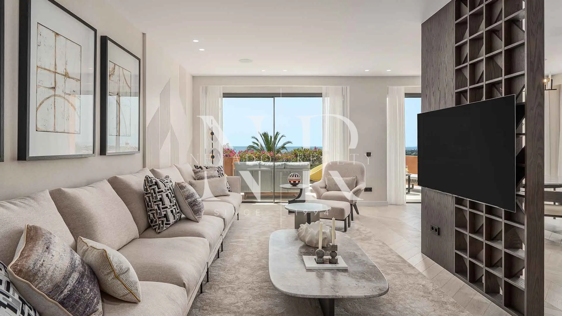 Appartement à vendre dans le lotissement Les Belvederes avec vue panoramique sur la mer. Niché à Nueva Andalucía, dans la communauté de Les Belvédères, cet appartement de quatre chambres a été entièrement rénové avec des finitions haut de gamme et un design contemporain conçu pour offrir un confort maximal. Situé en hauteur, il bénéficie d’une vue spectaculaire qui s’étend des terrains de golf à la mer Méditerranée, en passant par les majestueuses montagnes de la région.