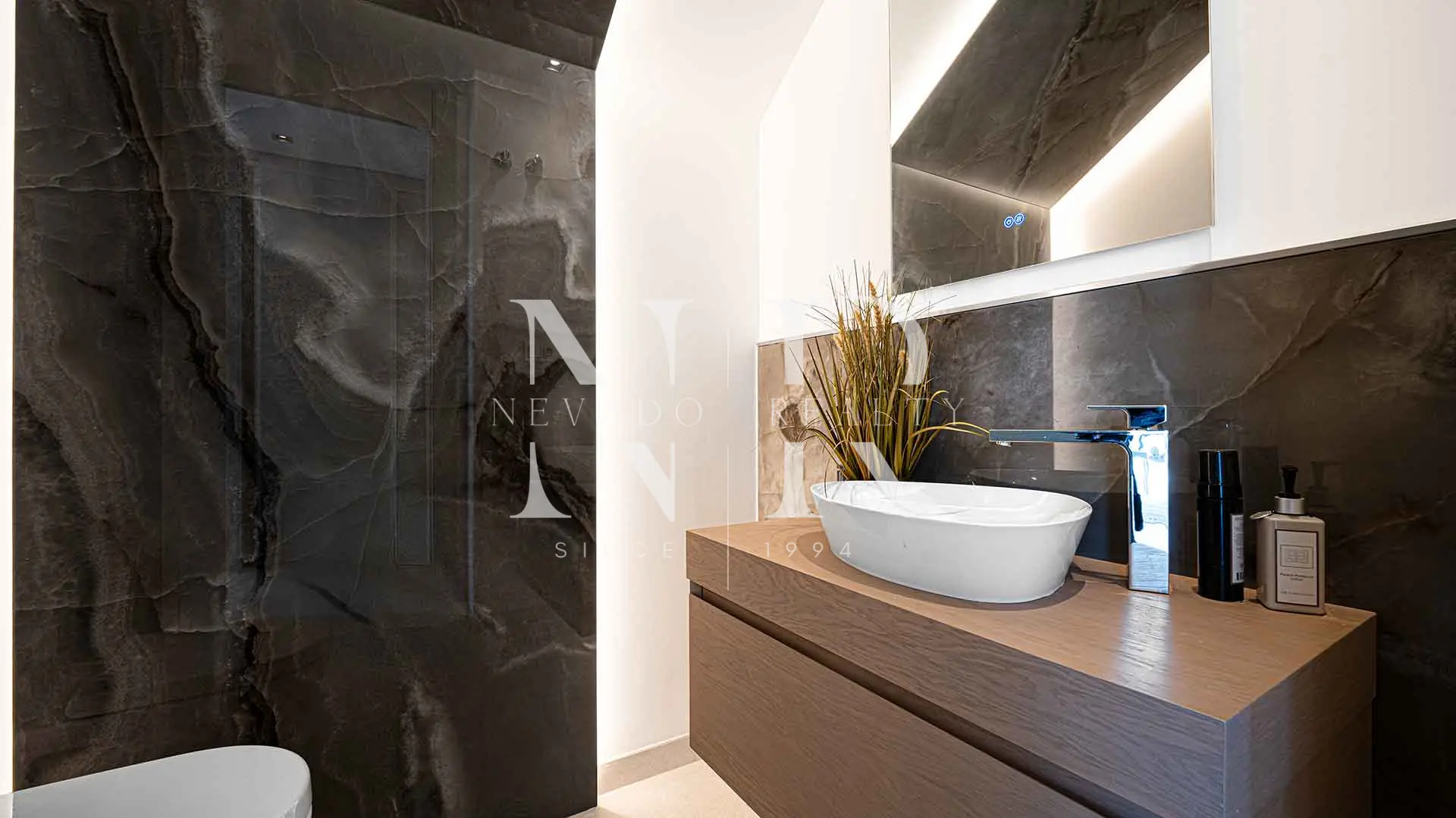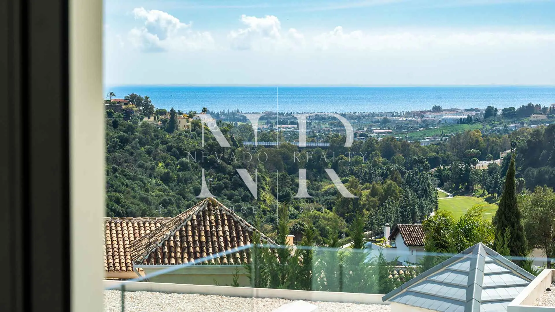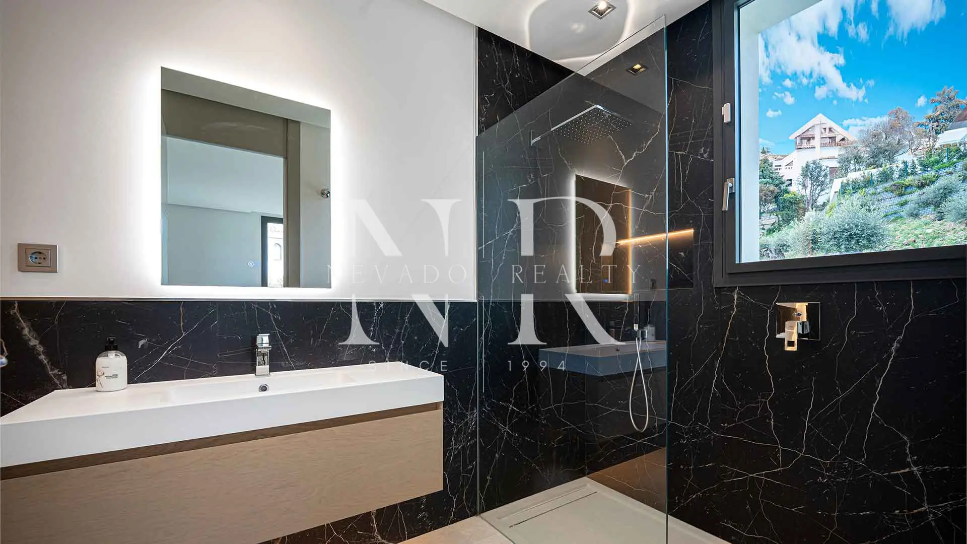 Le solarium offre une vue panoramique à 360° sur les montagnes, le golf et tout le littoral – un lieu idéal pour admirer les couchers de soleil ou organiser des réceptions en plein air. Au sous-sol, la villa dispose d’un espace pouvant accueillir une salle de sport, un cinéma, une cave à vin ou un bar, ainsi que d’une suite indépendante avec accès direct au jardin, idéale pour les invités ou le personnel.
