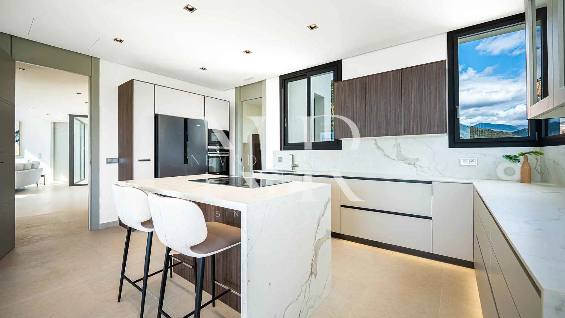 La cuisine minimaliste, entièrement équipée d’appareils haut de gamme, allie design et fonctionnalité. À l’étage, la suite parentale spectaculaire offre une terrasse privée, une baignoire îlot avec vue panoramique sur les montagnes et de spacieux dressings. Les autres chambres offrent le même niveau d’élégance, d’intimité et de confort.