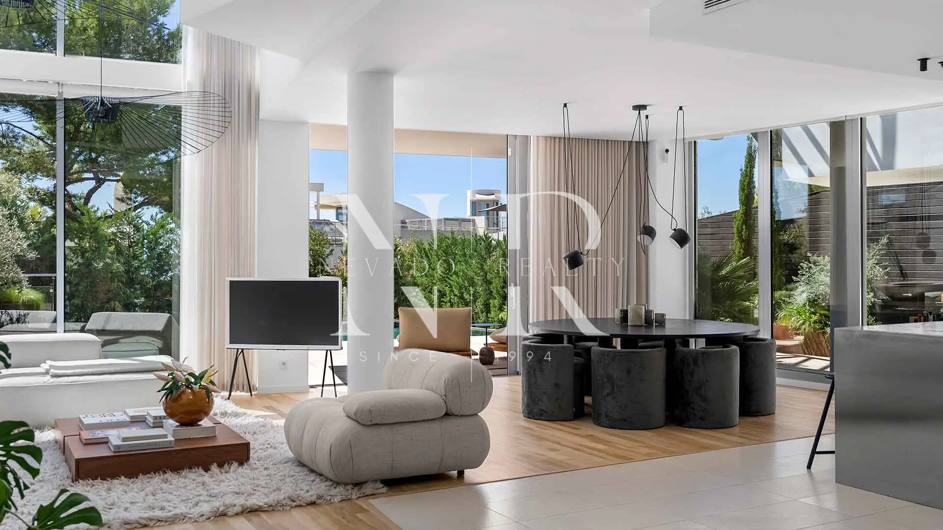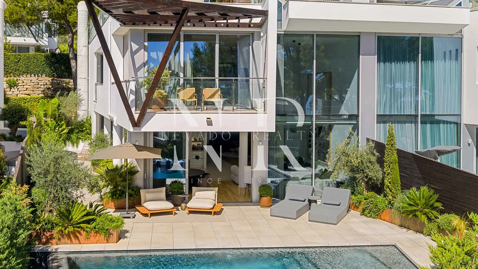 Les principaux espaces de vie sont répartis sur deux étages et sont conçus avec des espaces ouverts, idéaux pour les réceptions et le confort quotidien. Une grande terrasse orientée au sud avec piscine privée crée une transition parfaite entre l’intérieur et l’extérieur, tandis que les finitions sur mesure reflètent une esthétique raffinée et accueillante. À l’étage supérieur, la terrasse privée sur le toit offre une vue imprenable sur le coucher du soleil et dispose d’une cuisine extérieure sur mesure, d’une salle à manger et d’un jacuzzi, idéal pour se détendre ou recevoir des invités en toute intimité. La polyvalence de la villa est renforcée par le rez-de-chaussée, qui comprend un simulateur de golf professionnel pouvant facilement être transformé en salle de cinéma ou de jeux, ainsi qu’un garage sécurisé pouvant accueillir trois véhicules et un espace de rangement supplémentaire.