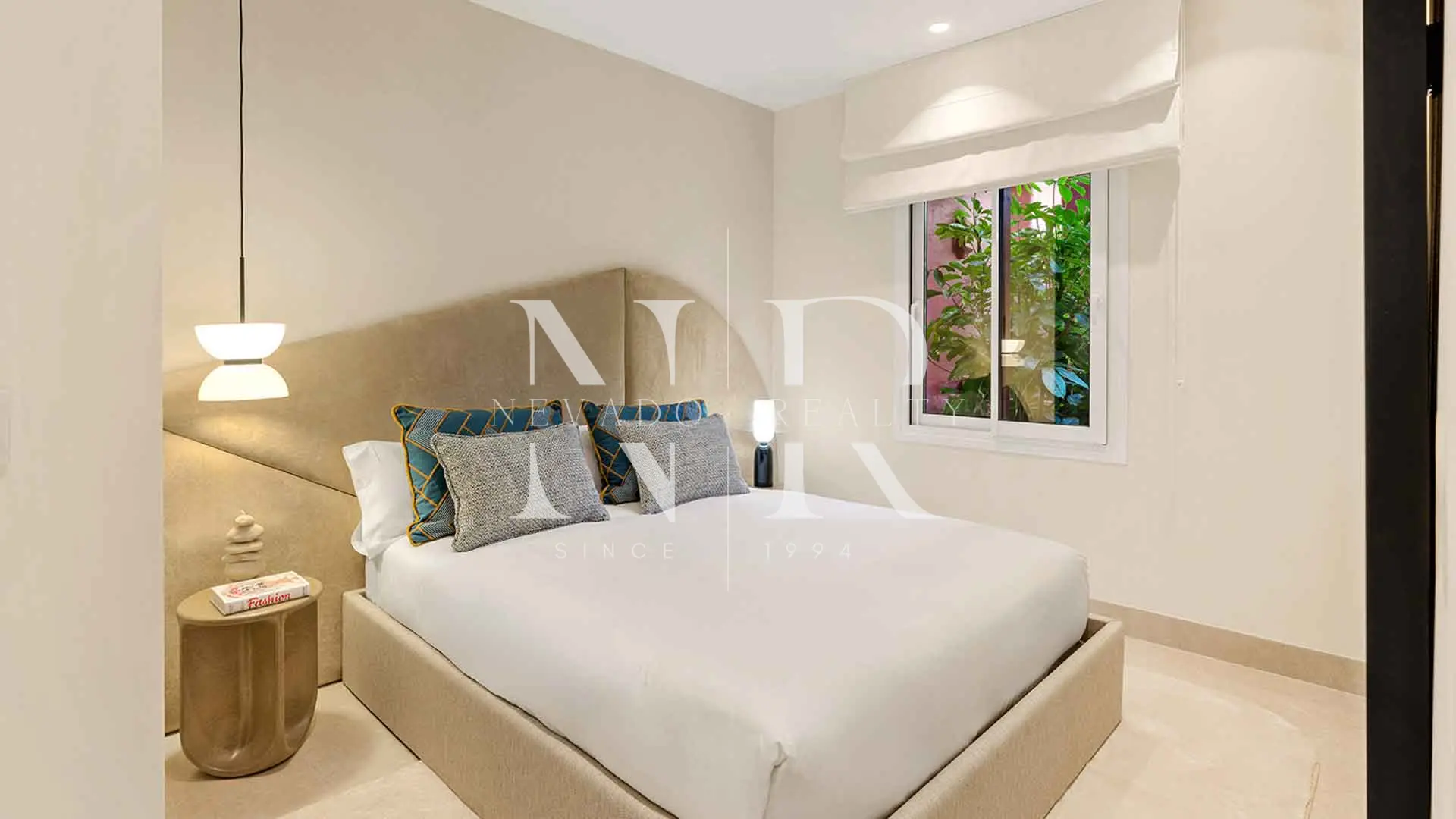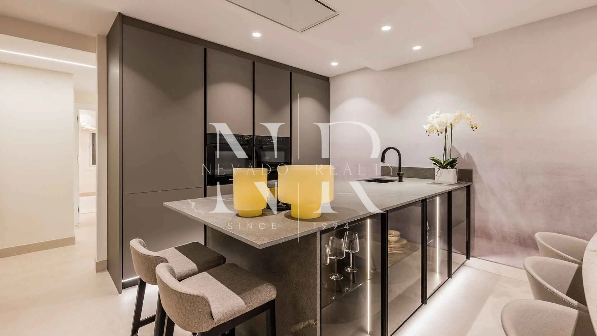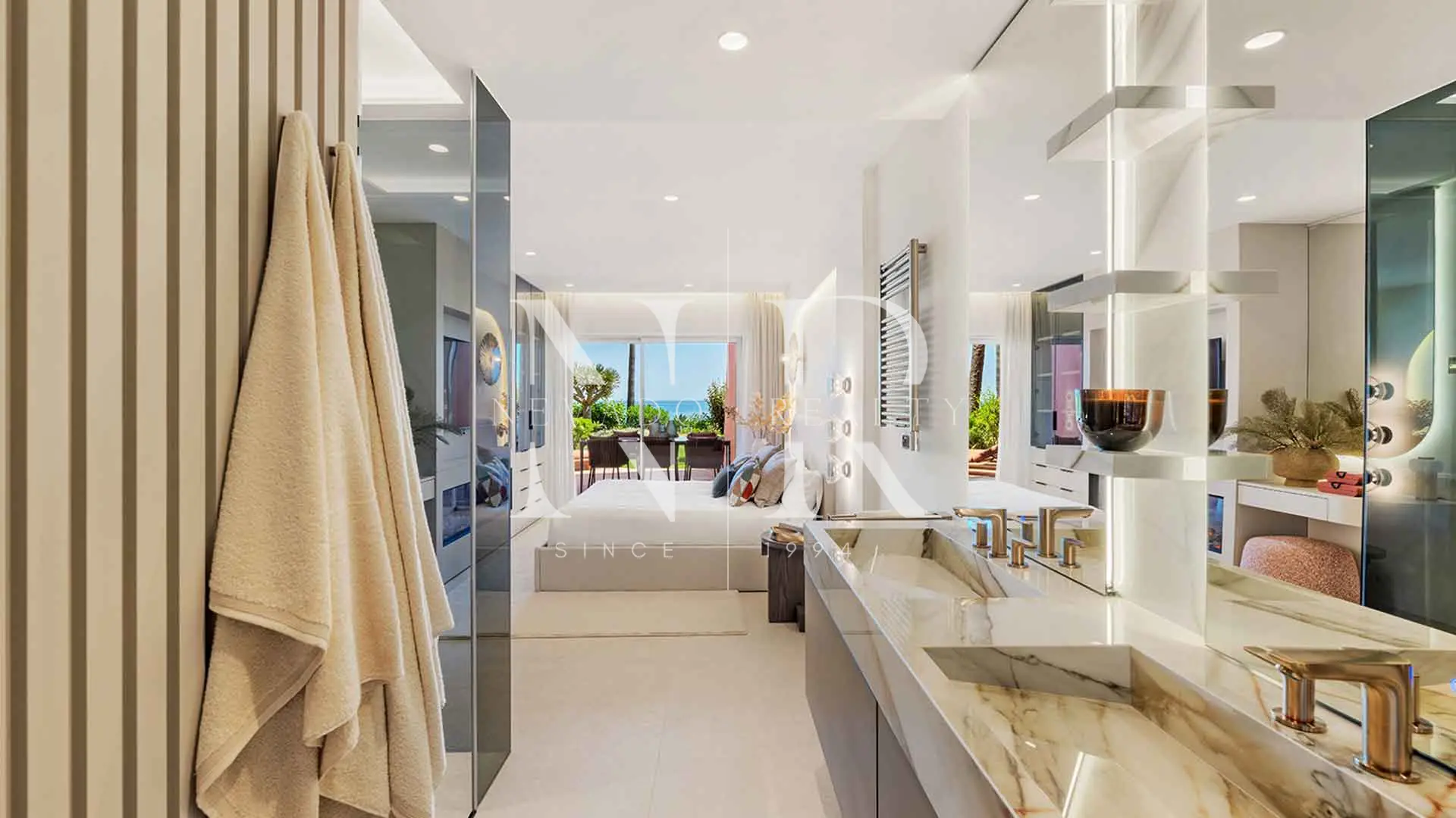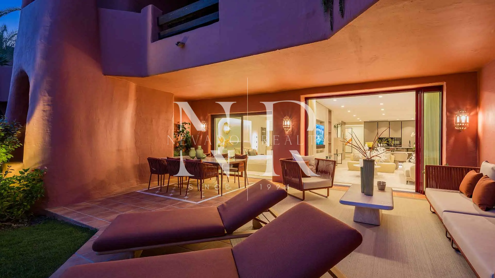 Appartement à vendre dans le complexe Menara Beach, en première ligne de plage. Découvrez le véritable style de vie en bord de mer dans cet appartement exclusif entièrement rénové, situé dans le prestigieux complexe Menara Beach, au cœur de la Nueva Milla de Oro, entre Marbella et Estepona. Conçue par le célèbre architecte Melvin Villaroel, Menara Beach est une communauté fermée qui offre une sécurité 24 heures sur 24, un accès direct à la plage et un environnement privilégié avec des jardins tropicaux soigneusement conçus.