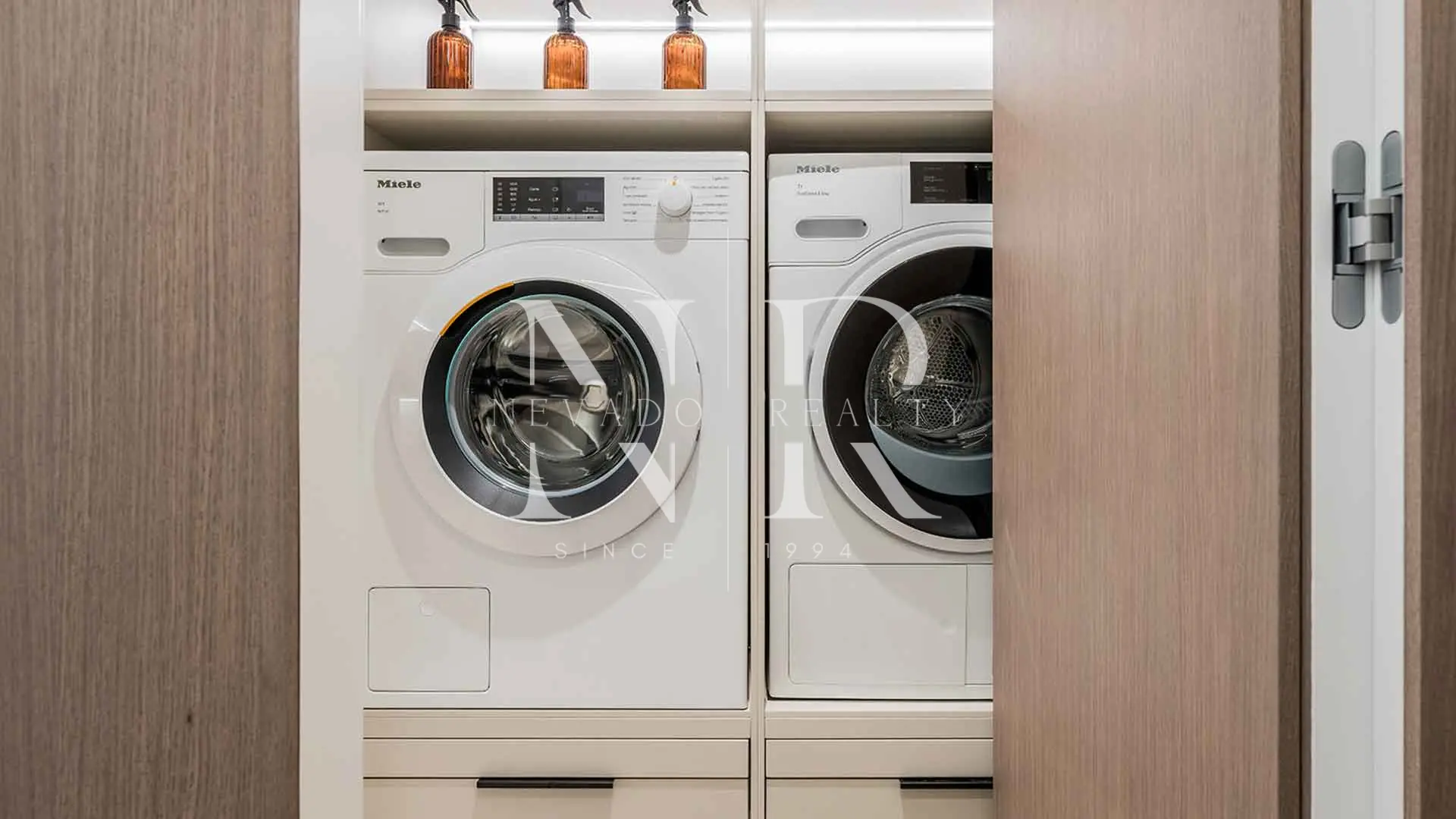 La cuisine ouverte a été équipée des dernières technologies, notamment d’une plaque à induction invisible, d’une cave à vin et d’un Thermomix, offrant ainsi un espace parfait pour ceux qui aiment cuisiner à la maison. Le salon comprend une cheminée électrique accueillante qui crée une atmosphère chaleureuse et confortable à tout moment de l’année, le tout complété par un système audio sophistiqué Bang & Olufsen.
