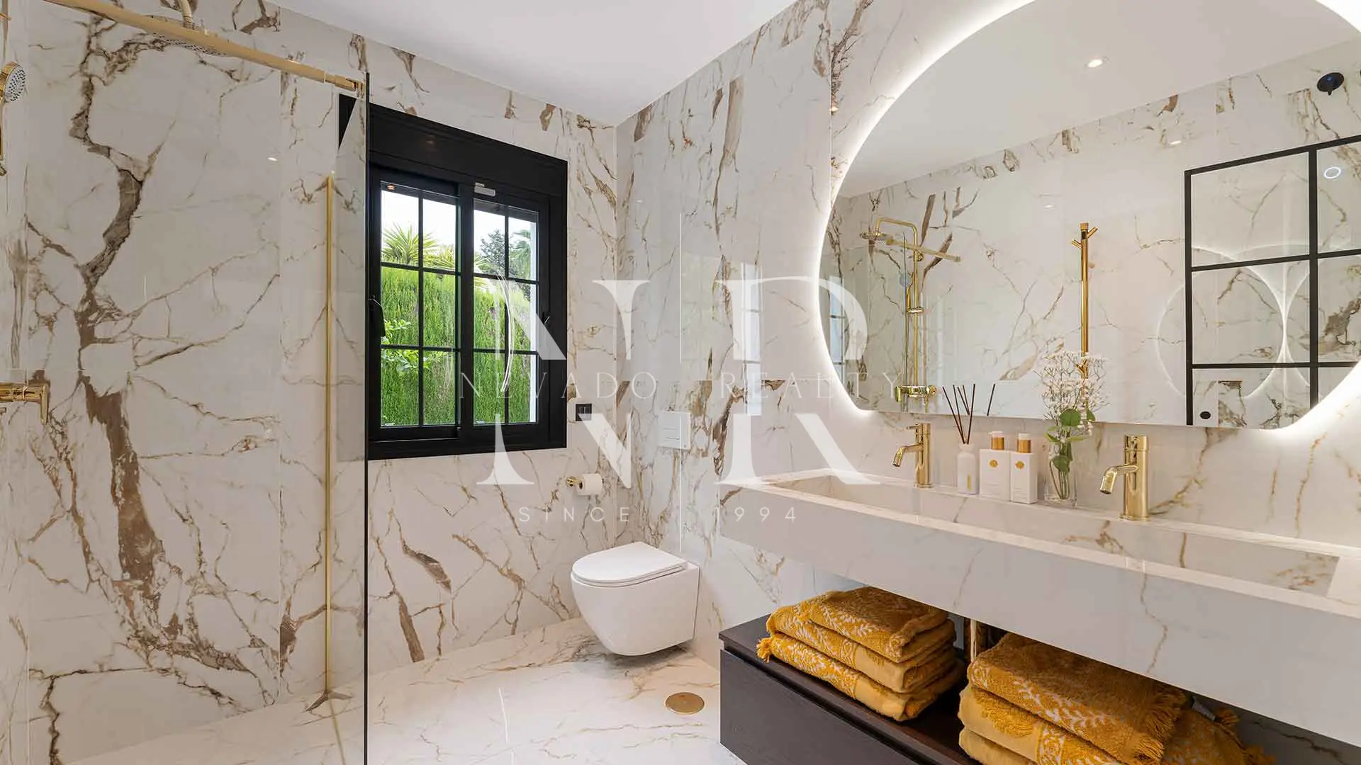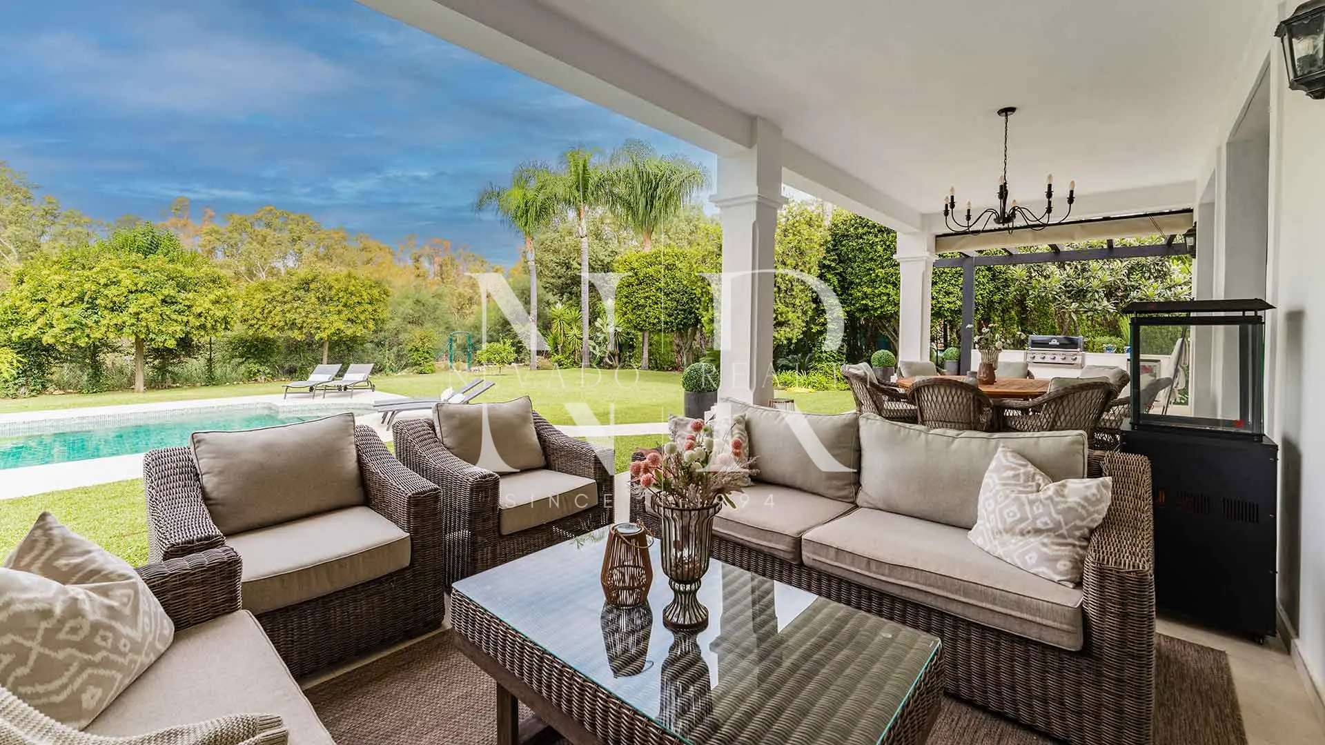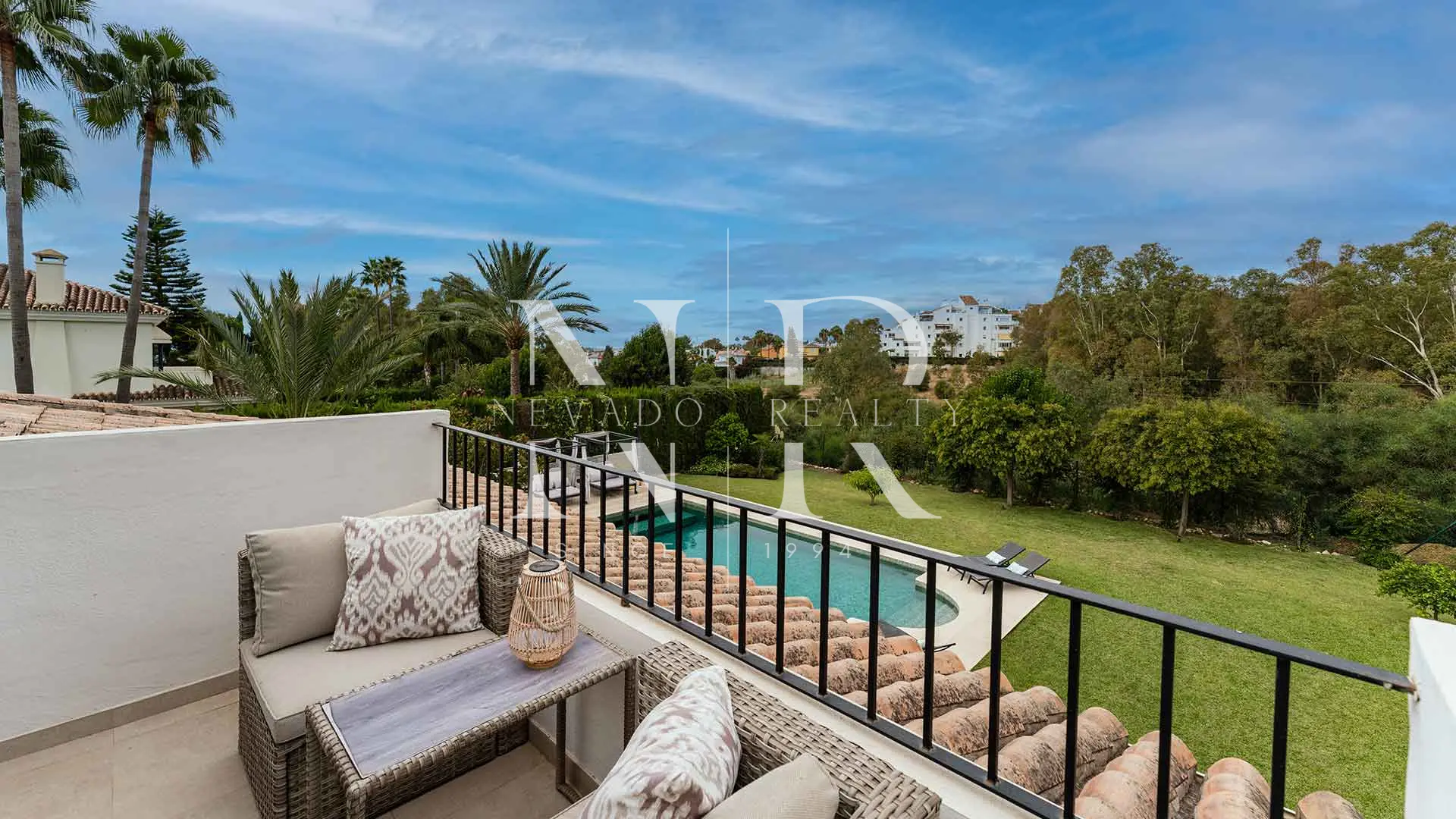 Le jardin, orienté sud-ouest, dispose d’espaces extérieurs conçus pour la vie en plein air, d’une cuisine extérieure avec barbecue, d’un espace détente avec télévision, d’un éclairage d’ambiance et d’arbres fruitiers. Le tout dans un quartier résidentiel bien établi, à proximité des terrains de golf, des écoles internationales et des services, et à quelques minutes de Puerto Banús.