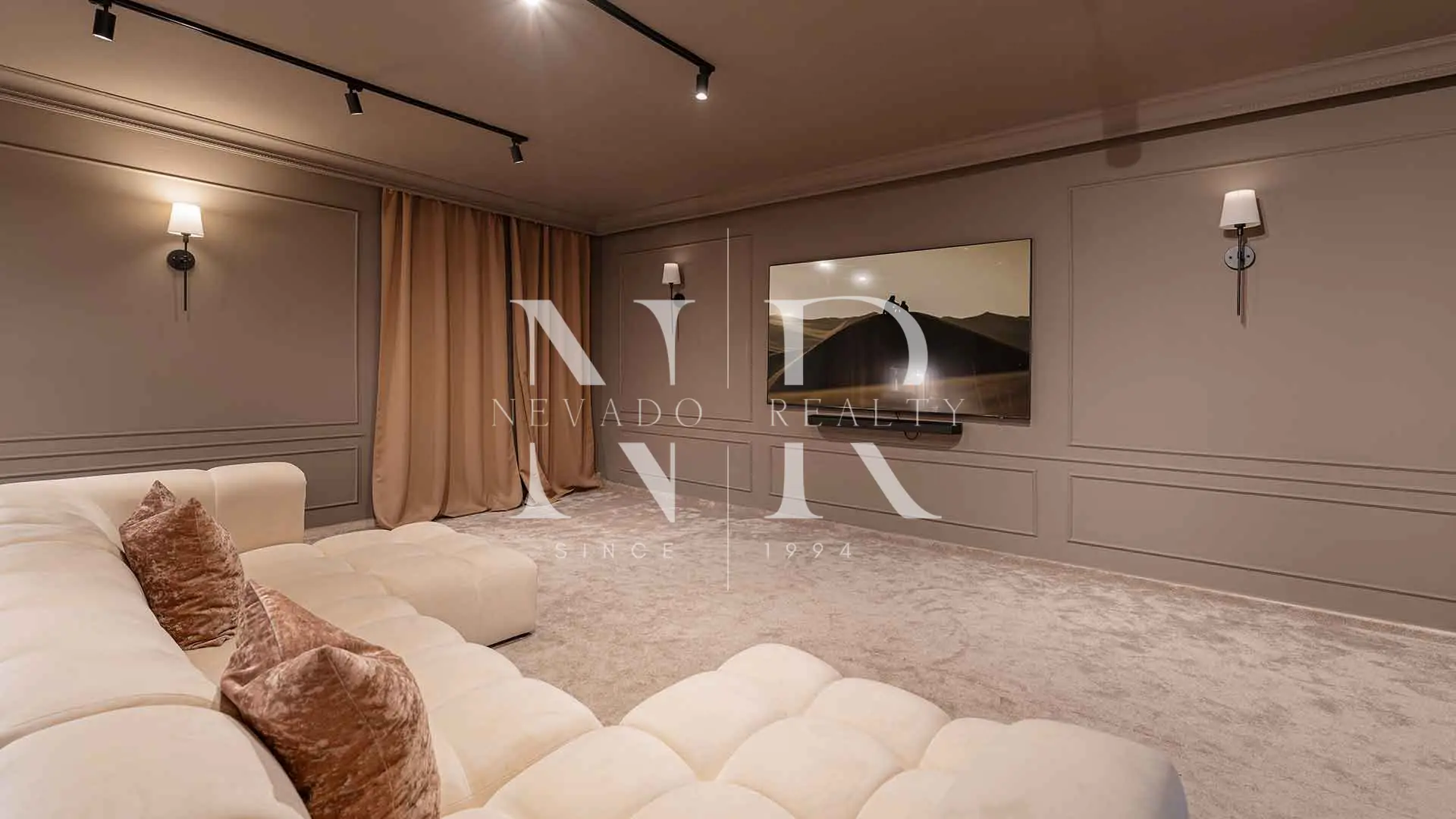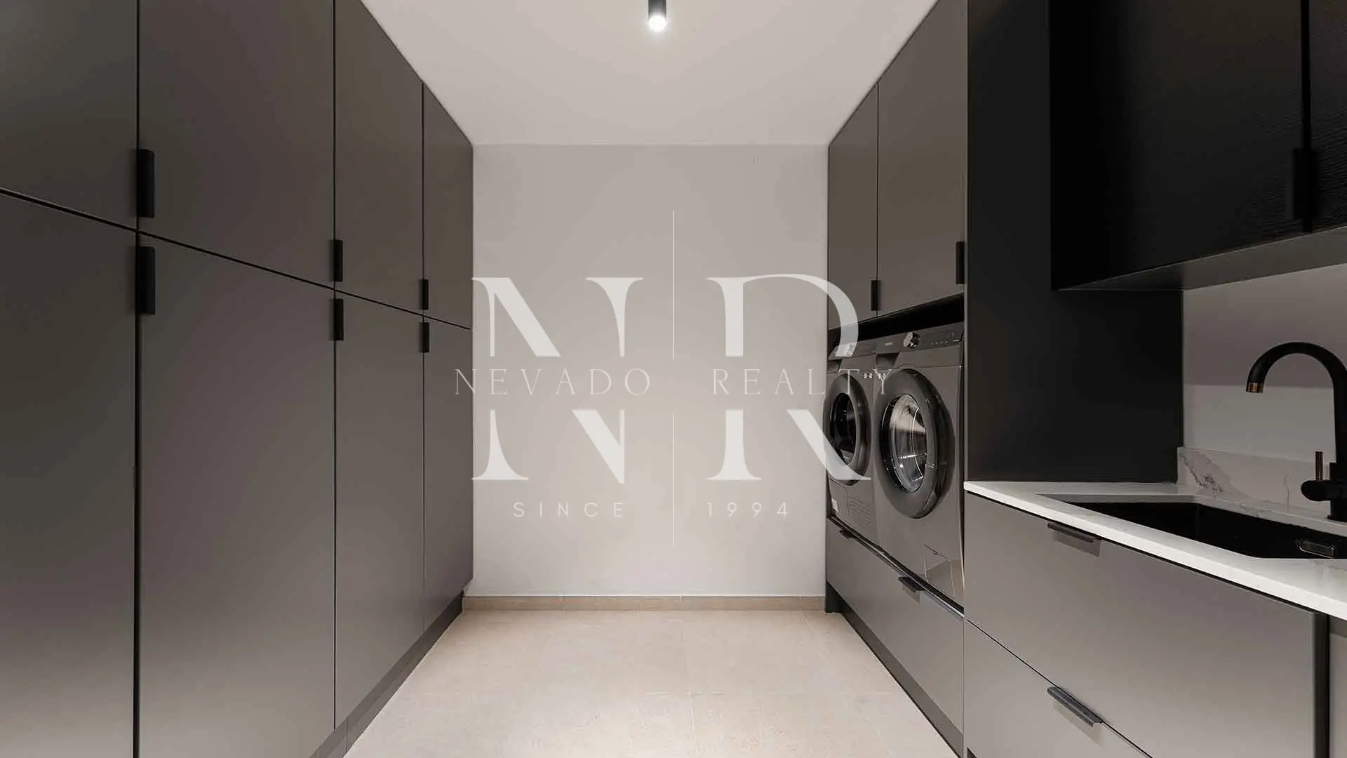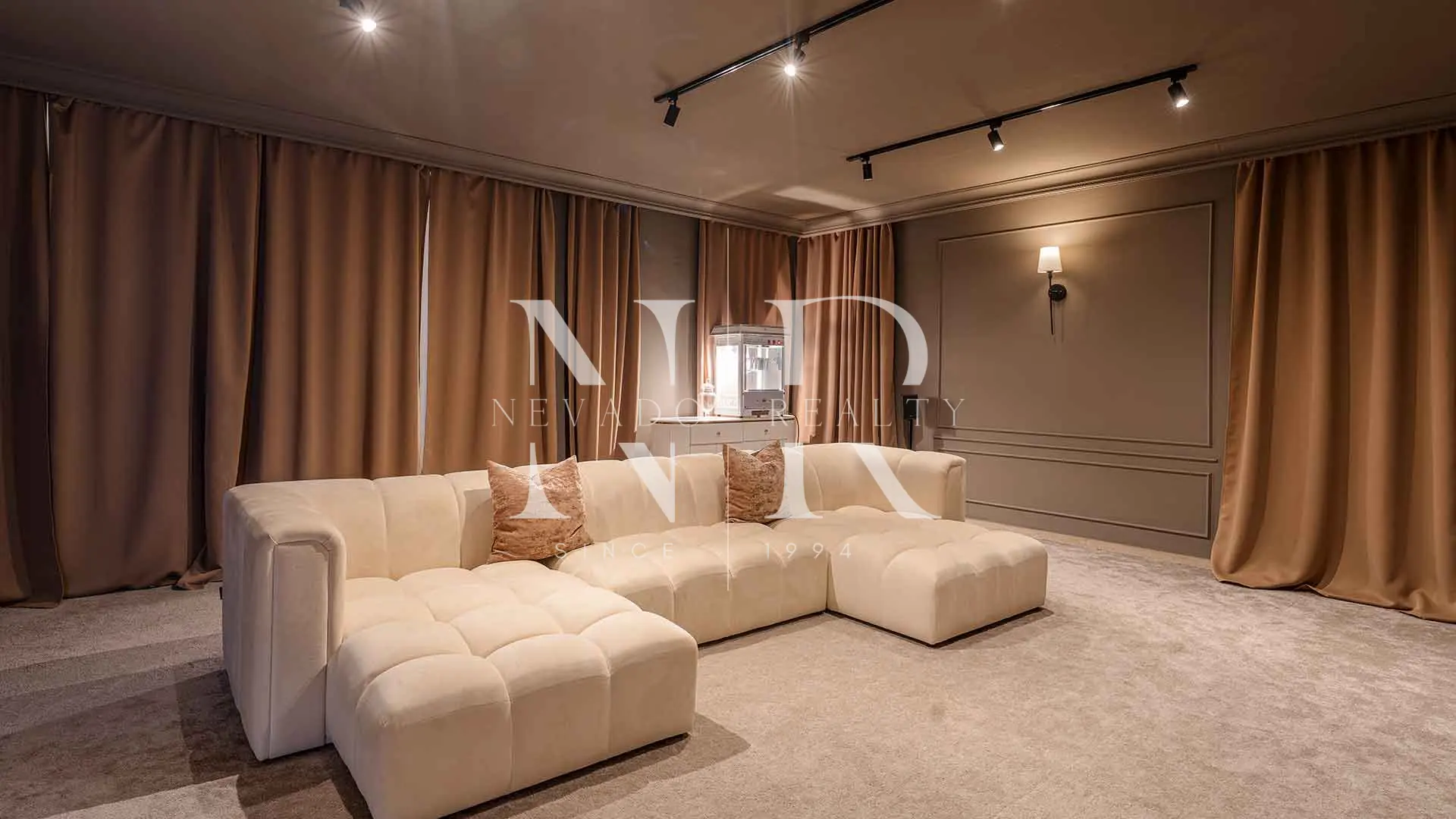 Le rez-de-chaussée se distingue par son concept ouvert, où la cuisine design avec des plans de travail en pierre naturelle, la salle à manger et le salon sont directement reliés à la terrasse et à la piscine, créant un espace idéal pour profiter en famille et entre amis. Cet étage comprend également une chambre d’amis et un bureau parfait pour le télétravail. À l’étage supérieur se trouvent la suite parentale et deux chambres supplémentaires, toutes très lumineuses et offrant une vue agréable sur le jardin. Le demi sous-sol surprend par son cinéma confortable et une autre chambre avec salle de bains, idéale pour les visiteurs ou les loisirs.