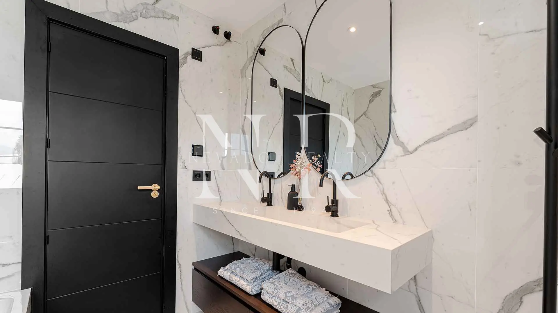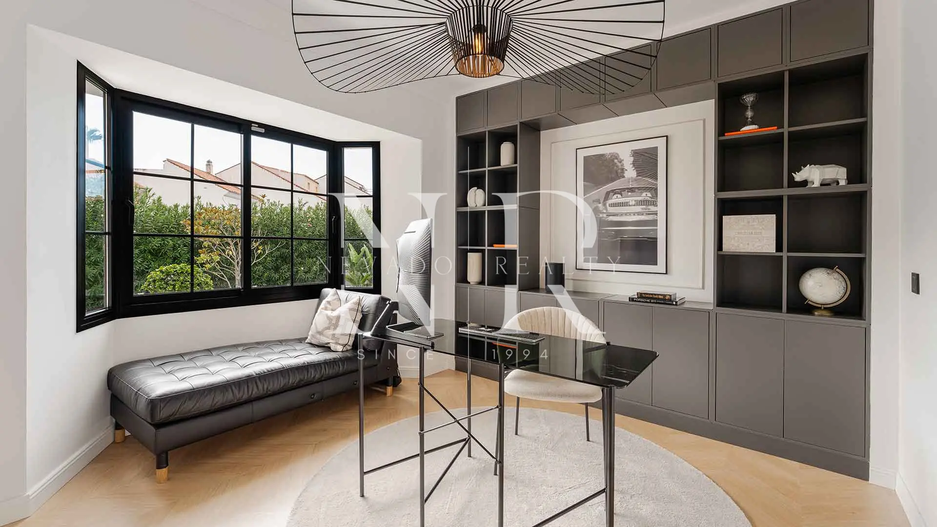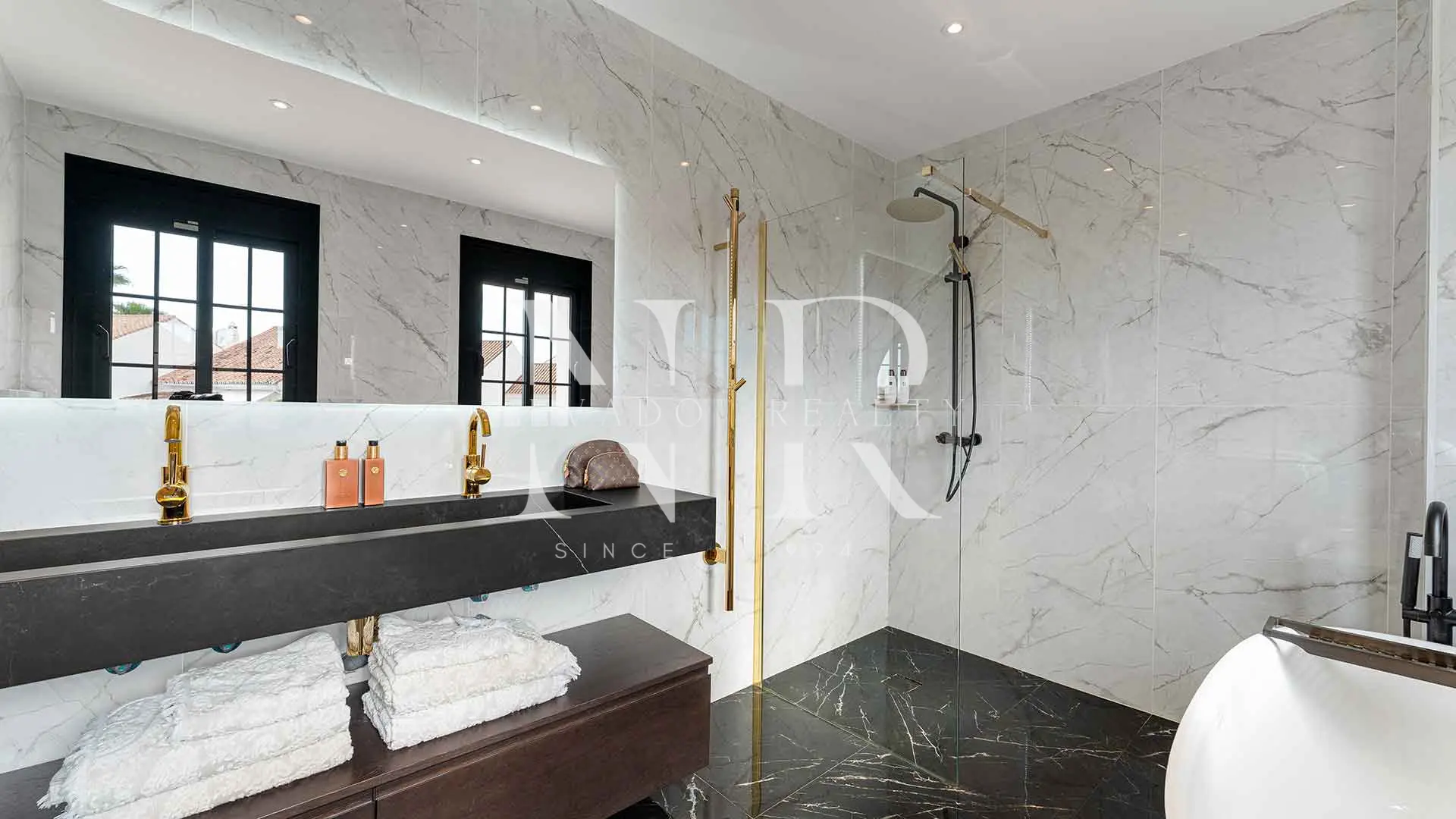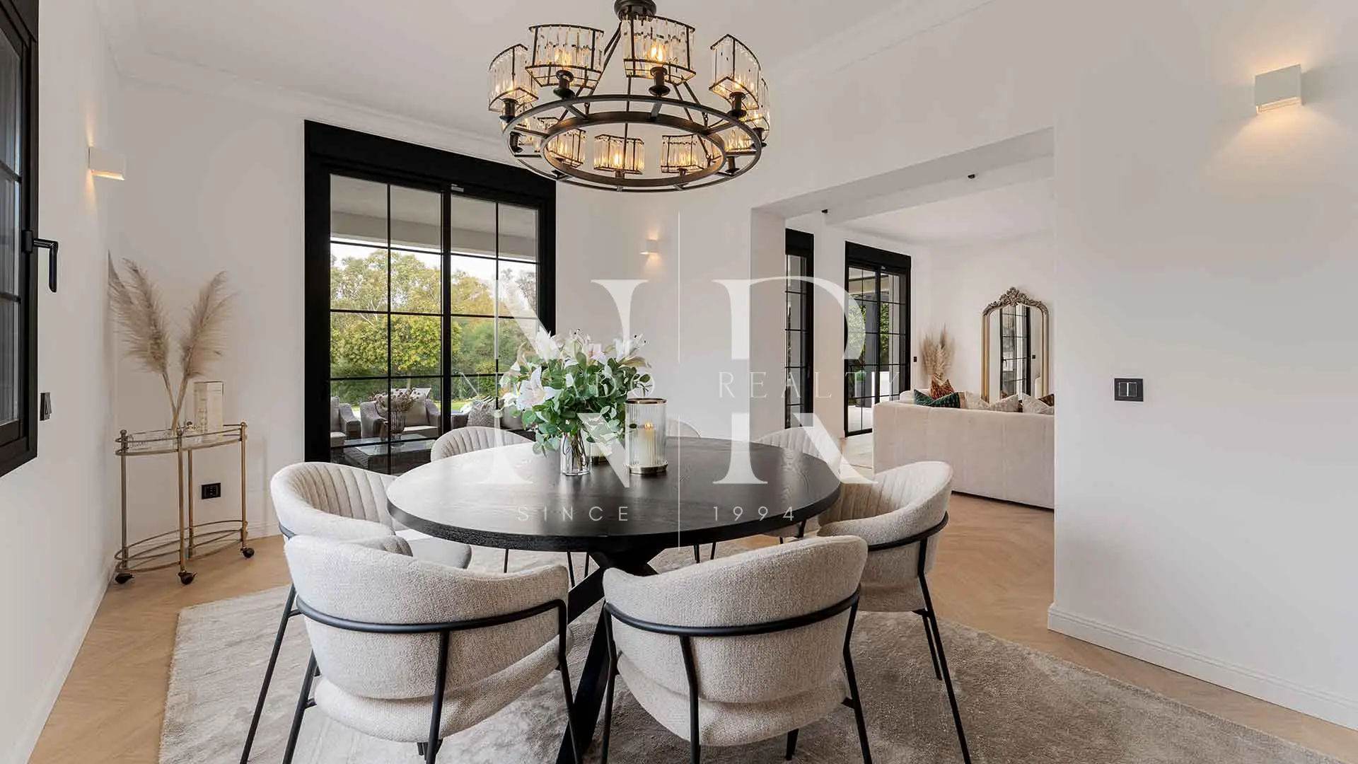 Villa entièrement rénovée à vendre dans le lotissement Monte Biarritz. Rénovée en 2024, située dans un quartier résidentiel calme à seulement cinq minutes en voiture de la plage, cette villa allie un design scandinave sophistiqué à une technologie intelligente et un style de vie méditerranéen, offrant une maison moderne et économe en énergie avec 6 chambres et 4 salles de bains réparties sur 448 m².
