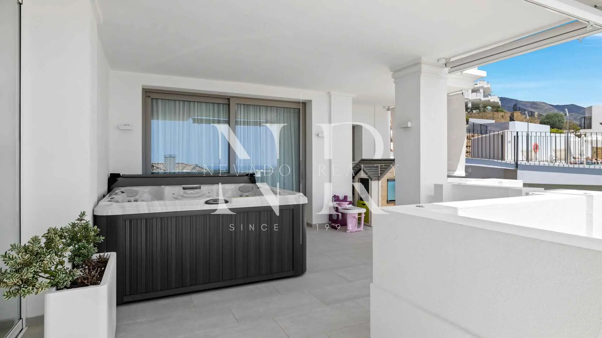 La propriété comprend trois places de parking et un local de rangement, ainsi que l’accès aux espaces communs de l’ensemble : des jardins impeccables, trois piscines chauffées (dont une couverte), un gymnase complet, un sauna et un clubhouse exclusif.