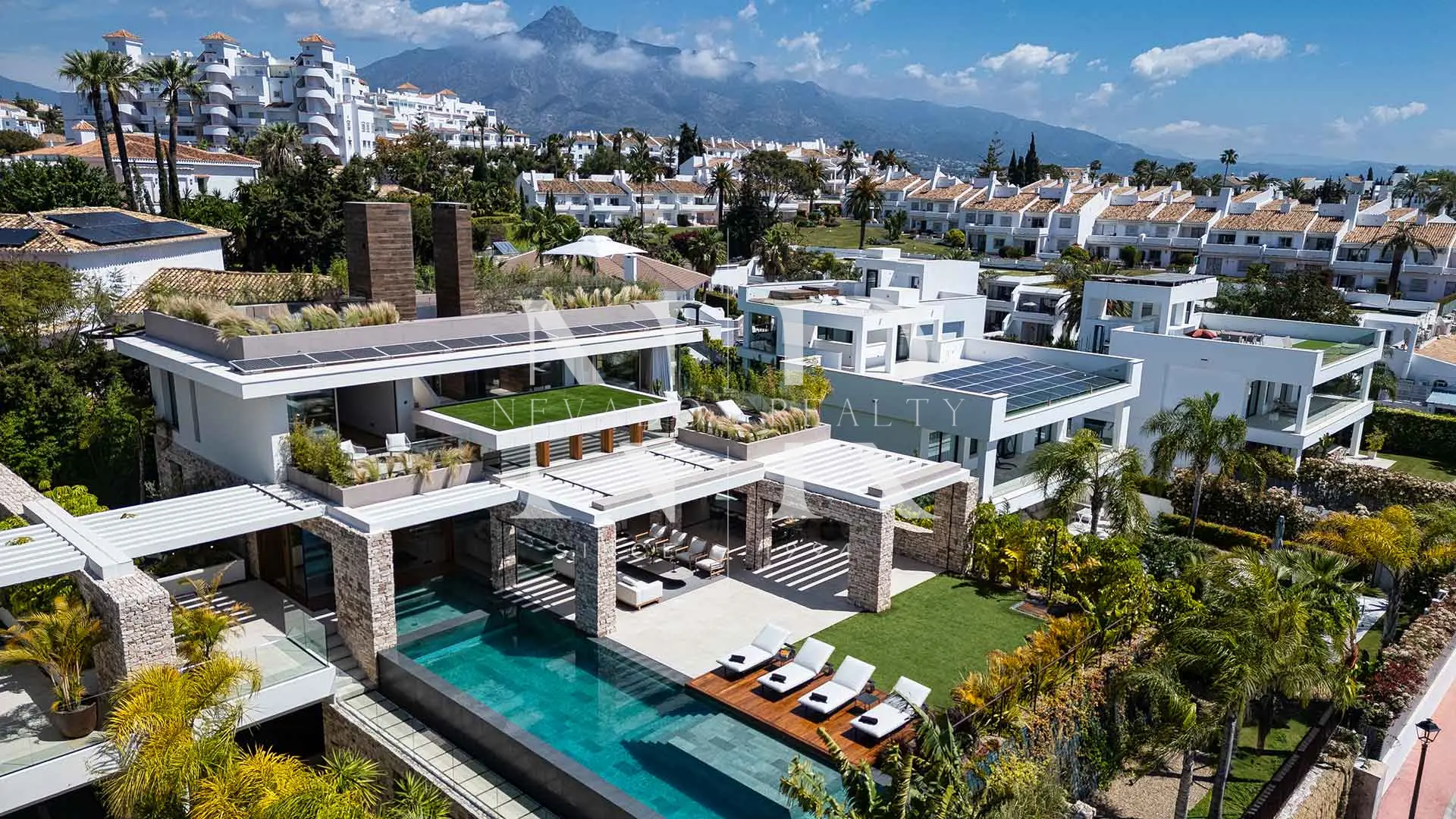 Villa au design unique à Nueva Andalucia à vendre. Découvrez cette superbe villa au style unique à Nueva Andalucía, située à proximité de Puerto Banús et à quelques minutes de marche d’un grand nombre de commodités. Cette propriété se distingue par son design élégant et moderne, sur un terrain de près de mille mètres carrés.