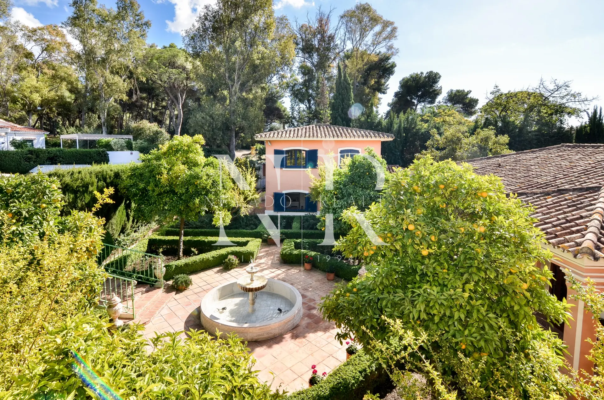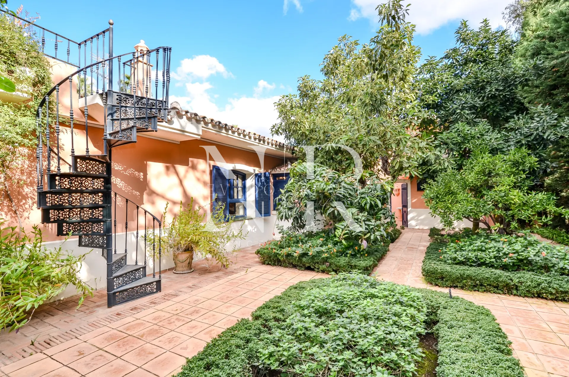 La propriété se compose d’une maison principale et d’une maison d’amis au fond du jardin, toutes deux construites sur un étage et de deux maisons annexes à deux étages autour d’une belle cour andalouse avec des arbres fruitiers, une fontaine d’eau et un labyrinthe de plantes qui accueillent tous ceux qui la visitent.
