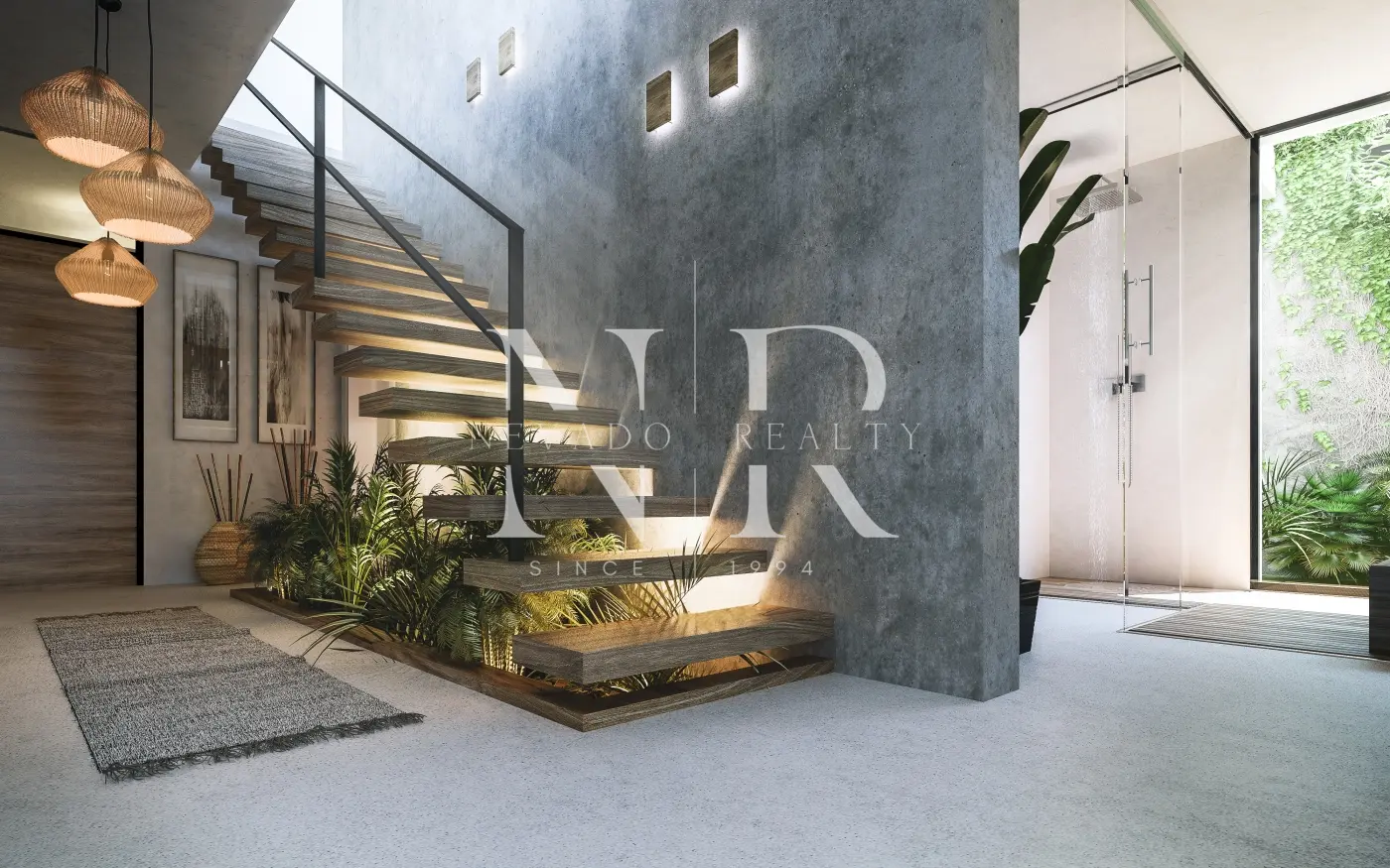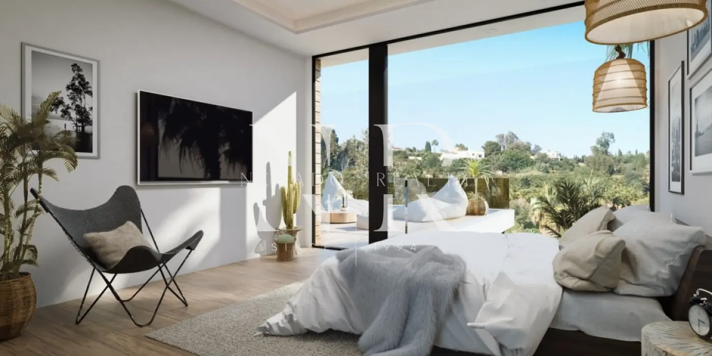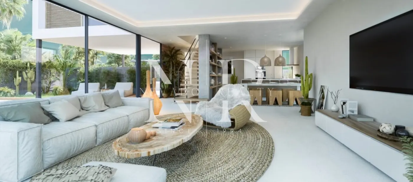 Development of 6 brand new modern frontline golf villas in Estepona, an exclusive residential area within walking distance of Puerto Banús, Marbella, Benahavís and Estepona, within walking distance of the exclusive Social Club for residents that includes a wide range of activities as a tennis and paddle tennis court, Spa, restaurant and just one kilometer from the beaches, schools and beach clubs. Malaga airport is 30 minutes away.The houses with luxury qualities and exceptional finishes have 2 floors plus a habitable and bright basement with a gym, cinema room and private spa that includes a Turkish bath and sauna with access to a Japanese patio with a pool. with a waterfall to bathe and refresh. The villas have 4 bedrooms and 4 private bathrooms with diaphanous and open spaces with large floor-to-ceiling windows of minimalist design; in the living room, suspended bioethanol fireplace. Guest toilet on the main floor. Microcement in the basement and bathrooms, partial underfloor heating, solar panels, suspended wooden staircase, Japanese garden in the basement with plants and white stone, floor to ceiling cabinets, central island in kitchen , AEG appliances in kitchen, private infinity pool with wood decking and dark green pool deck, entertainment room