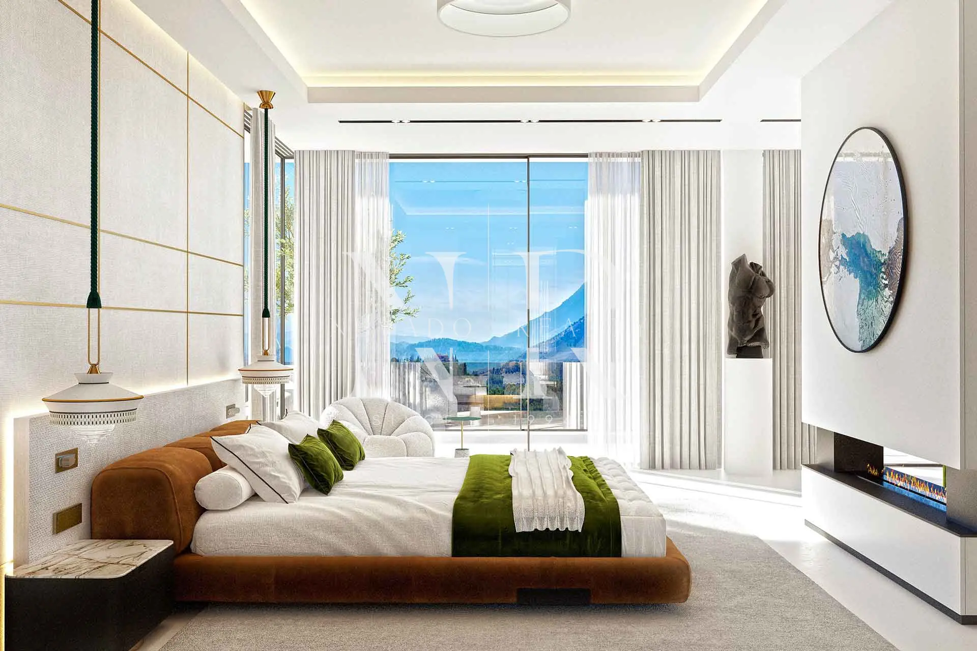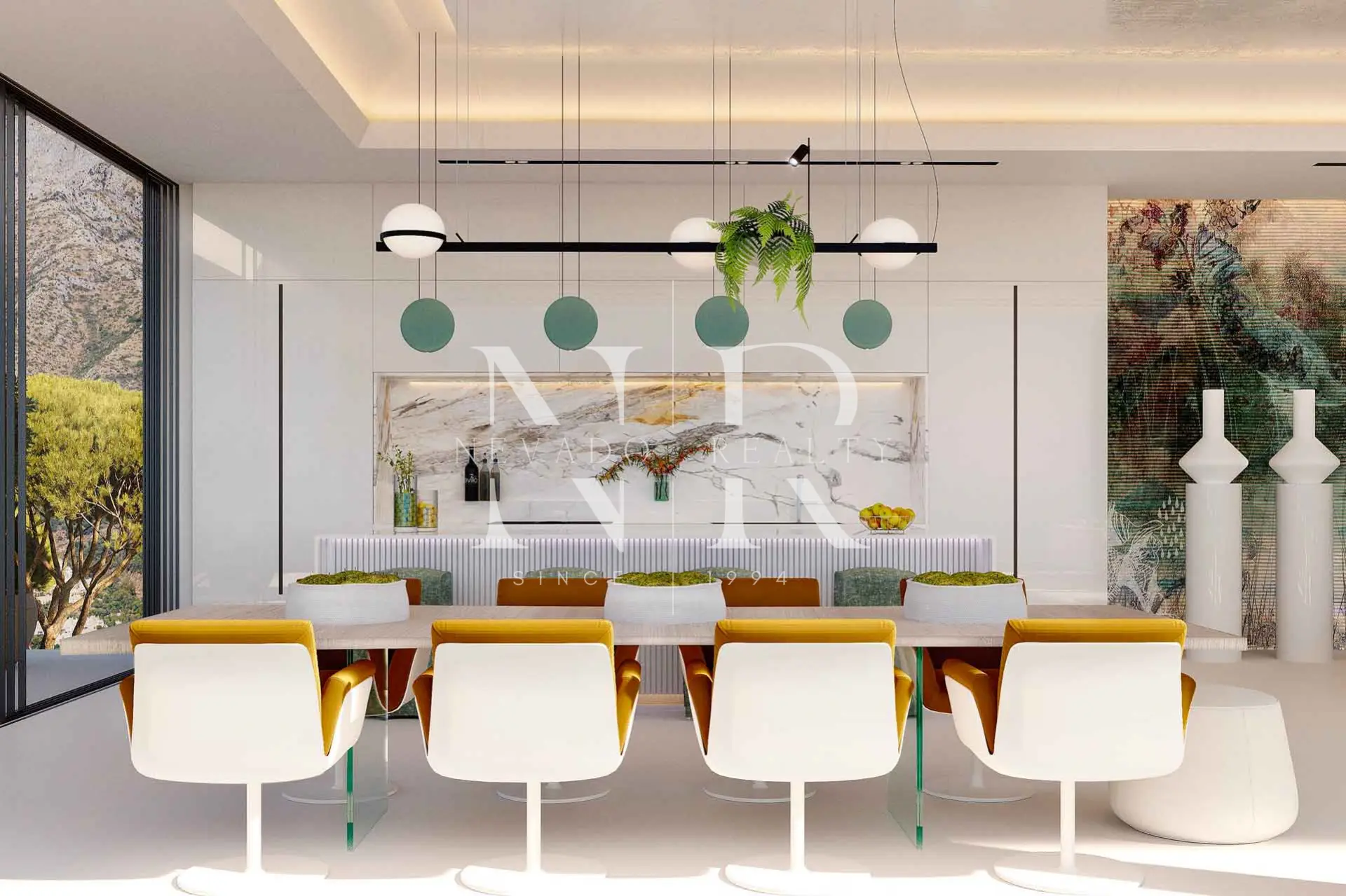 The villas are innovative and sustainable, being fully integrated into the terrain. Each villa has been individually designed with 3 or 4 bedrooms with integrated bathroom each, view to the lake, golf course and mountains, on the horizon the sea and the coast. It has multipurpose basement that can be customized. The plots are spacious and very private with sizes ranging from 1,107 m2 to 10000 m2. In the interior it is worth mentioning the large windows with hidden leaves that allow to enjoy panoramic views and the infinity pool with large size.