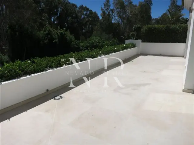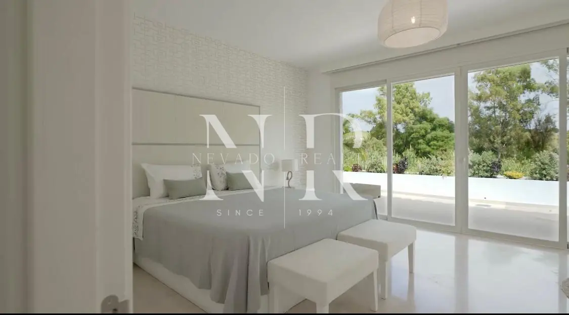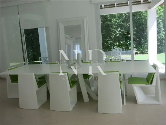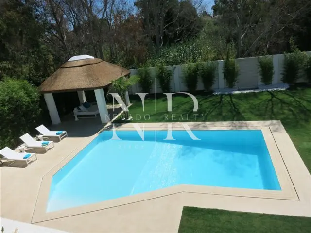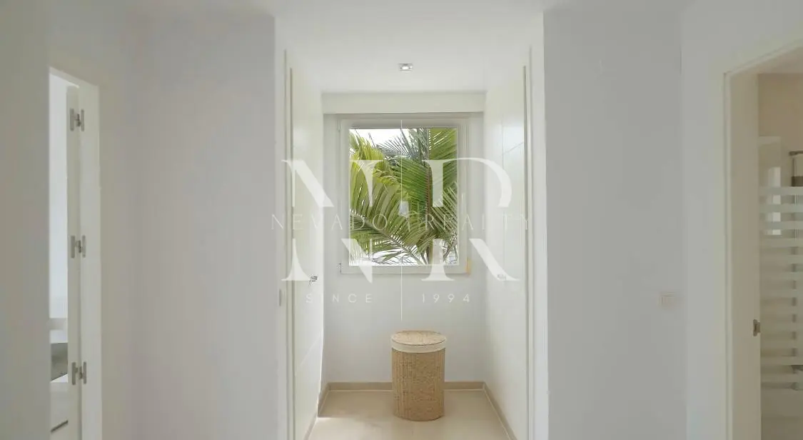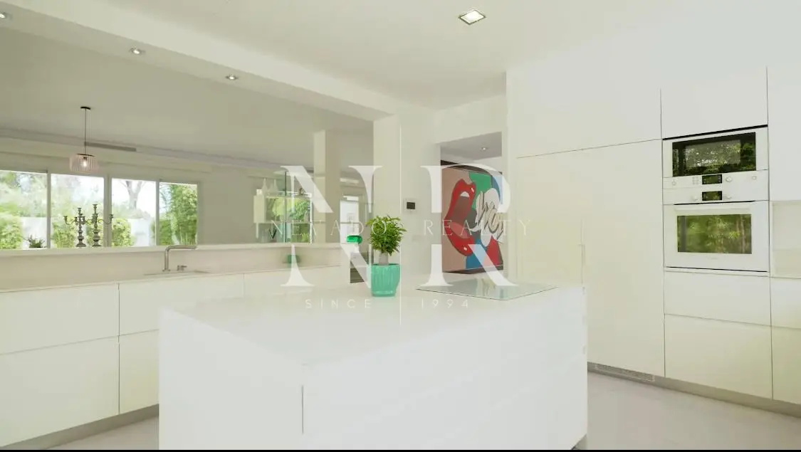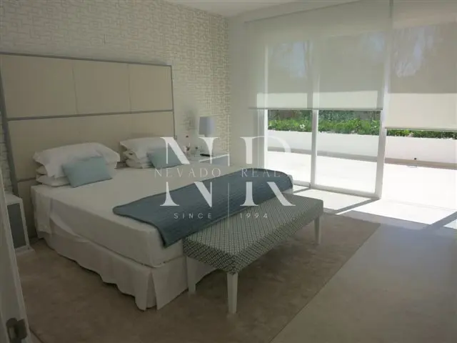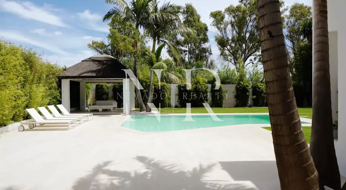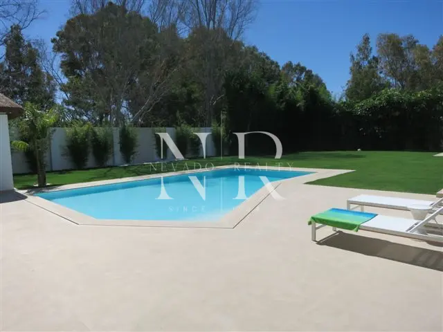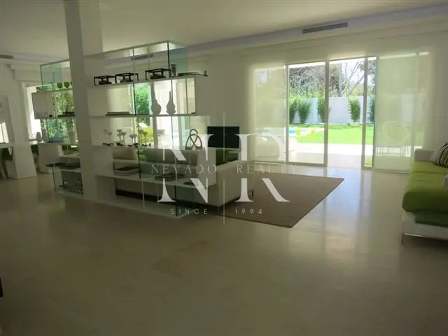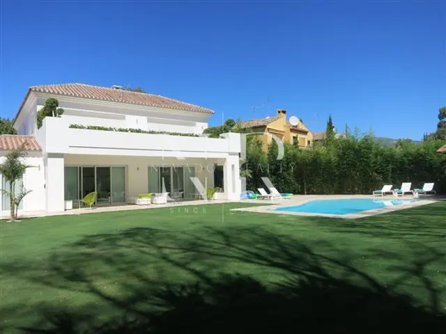Villa for sale in Marbella, this luxurious property of modern style and elegant design is located in Guadalmina Baja, San Pedro de Alcántara near the sea and the golf course. This modern villa for sale is east facing and consists of 2 floors, is all exterior and bright, in its plot we have more than 1300 square meters where you can enjoy the swimming pool and a beautiful garden. On the ground floor we have an hall and a spacious living room with direct exits to the outside, a spacious kitchen fully equipped with laundry. On this same floor there is also a bedroom with an en-suite bathroom. On the top floor all the rooms are exterior and enjoy plenty of light, but with the intimacy that the trees surrounding the plot give it. We have the master bedroom with a 55 meters terrace and an en-suite bathroom and 2 bedrooms sharing a bathroom. This fantastic property for sale in Marbella has also a separate little house with a bedroom and a bathroom, with access from the garden, and a garage and a storage room.