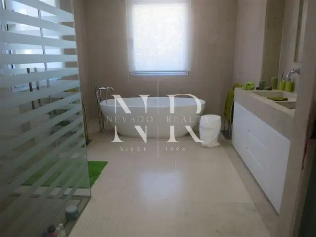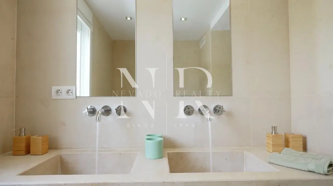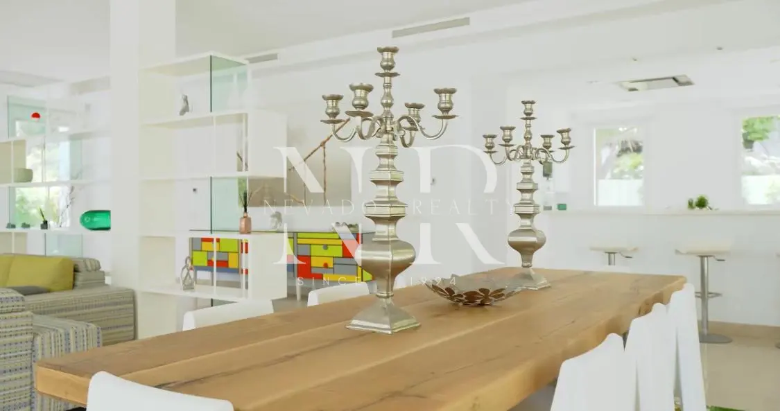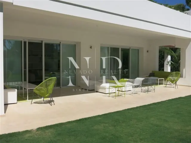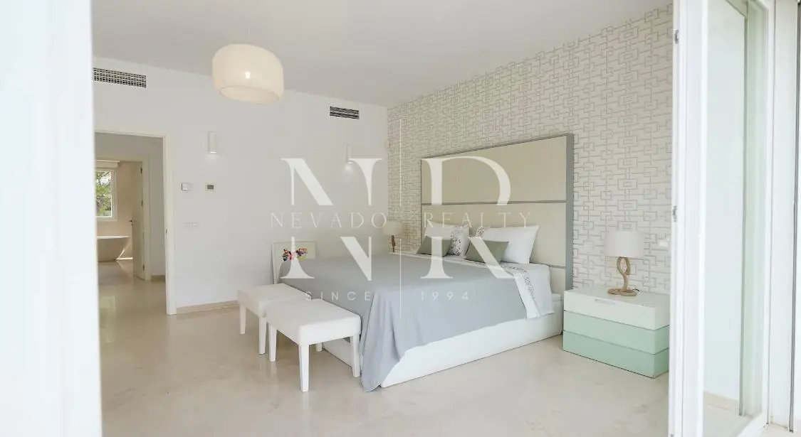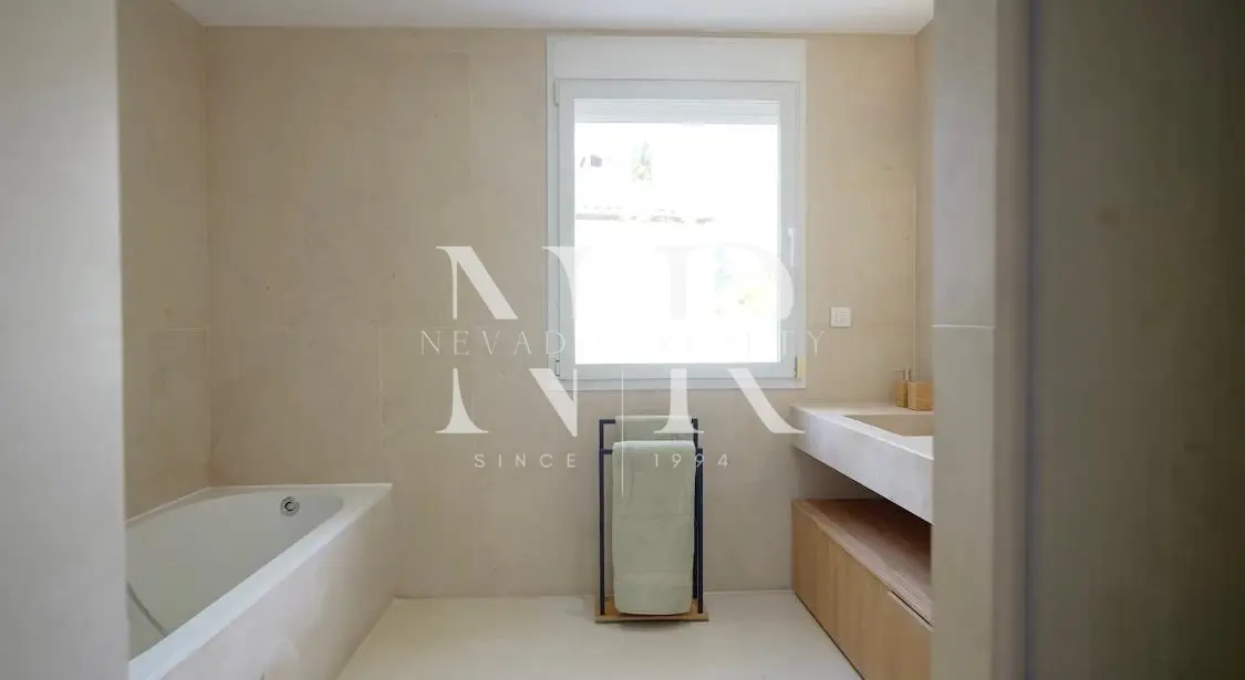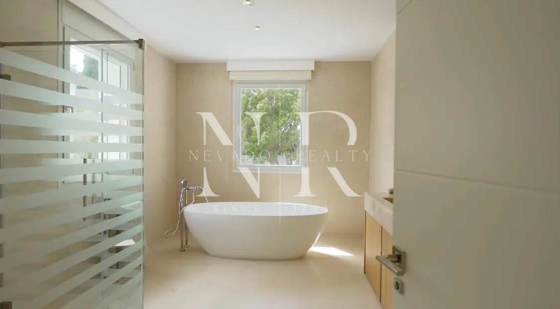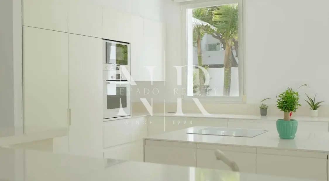 Villa for sale in Marbella, this luxurious property of modern style and elegant design is located in Guadalmina Baja, San Pedro de Alcántara near the sea and the golf course. This modern villa for sale is east facing and consists of 2 floors, is all exterior and bright, in its plot we have more than 1300 square meters where you can enjoy the swimming pool and a beautiful garden. On the ground floor we have an hall and a spacious living room with direct exits to the outside, a spacious kitchen fully equipped with laundry. On this same floor there is also a bedroom with an en-suite bathroom. On the top floor all the rooms are exterior and enjoy plenty of light, but with the intimacy that the trees surrounding the plot give it. We have the master bedroom with a 55 meters terrace and an en-suite bathroom and 2 bedrooms sharing a bathroom. This fantastic property for sale in Marbella has also a separate little house with a bedroom and a bathroom, with access from the garden, and a garage and a storage room.