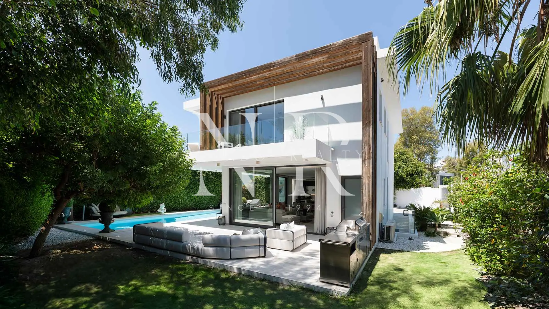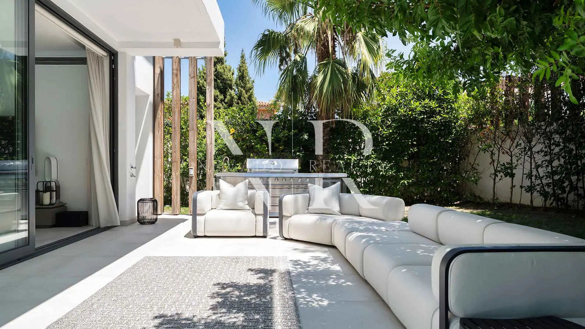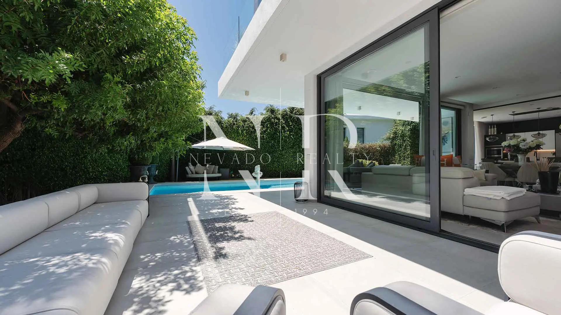 Villa in La Arboleda residential development in a gated community for sale. Located in the gated community of Estepona East, this villa combines contemporary architecture with functional spaces designed for family life. Designed by a renowned architect, this property represents a unique opportunity in one of the most sought-after areas of the Costa del Sol.