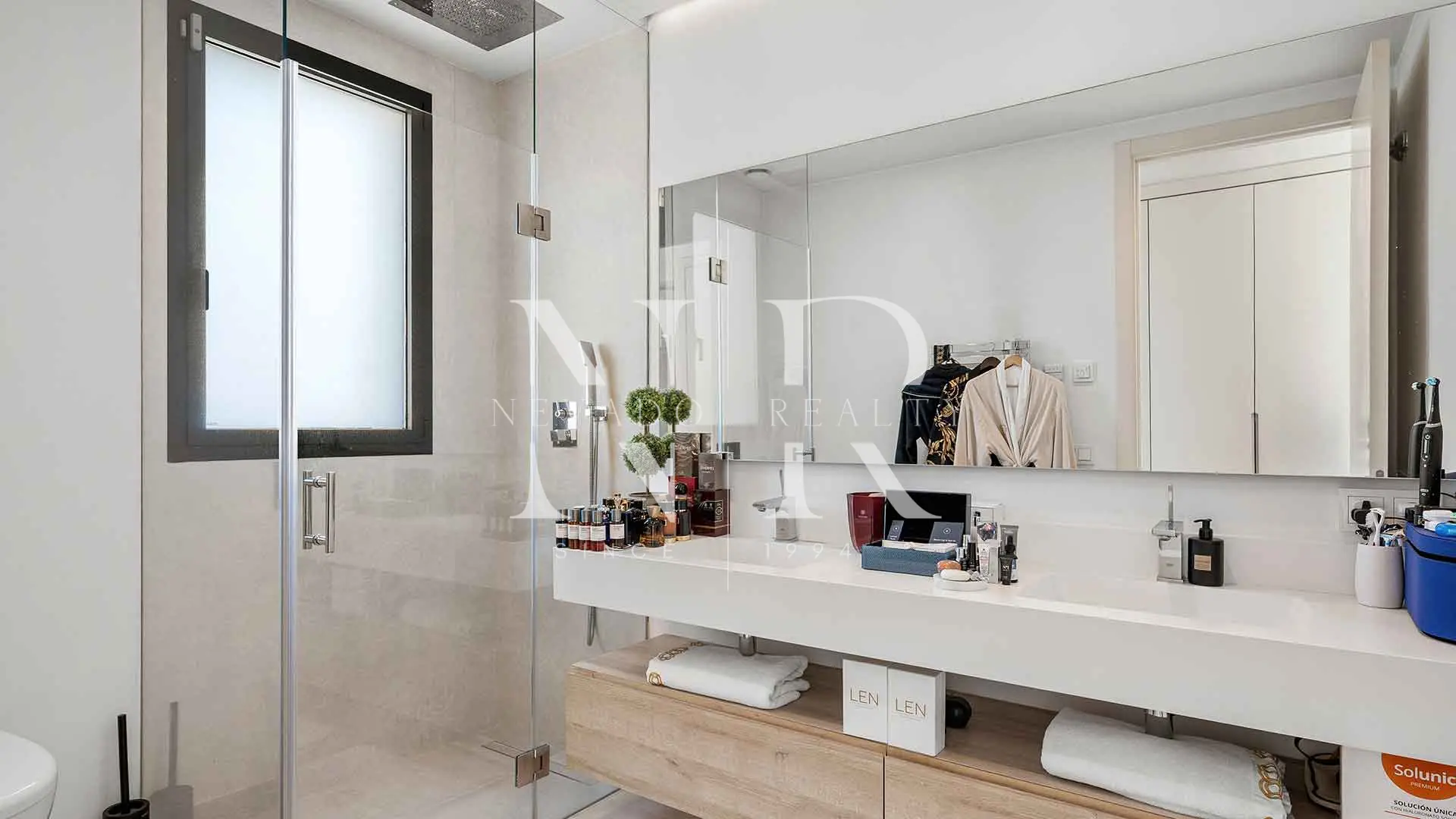 The upper floor houses the master suite with private bathroom and terrace, as well as two additional en-suite bedrooms that share another terrace with unobstructed views. The lower floor adds versatility with a fourth bedroom, full bathroom, laundry room and a multipurpose room ideal as a gym, cinema or leisure area.