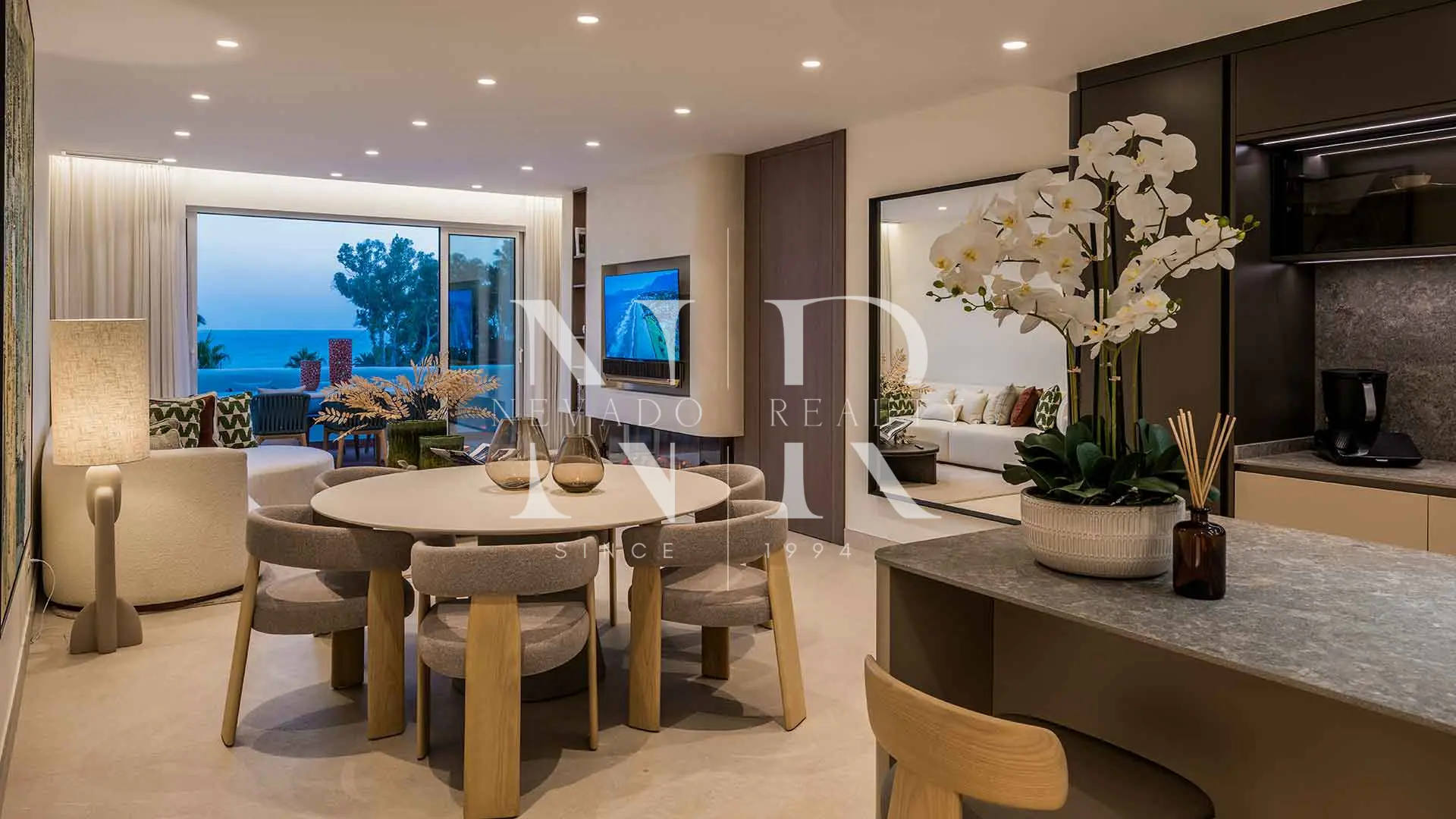 The Bahía del Velerín development completes the experience with its tropical gardens, a large communal pool by the sea, a seasonal snack bar, and 24/7 private security, guaranteeing tranquility and privacy. Its strategic location between Marbella and Estepona offers easy access to prestigious golf courses, fine dining, luxury boutiques, and, of course, the beach just steps away.