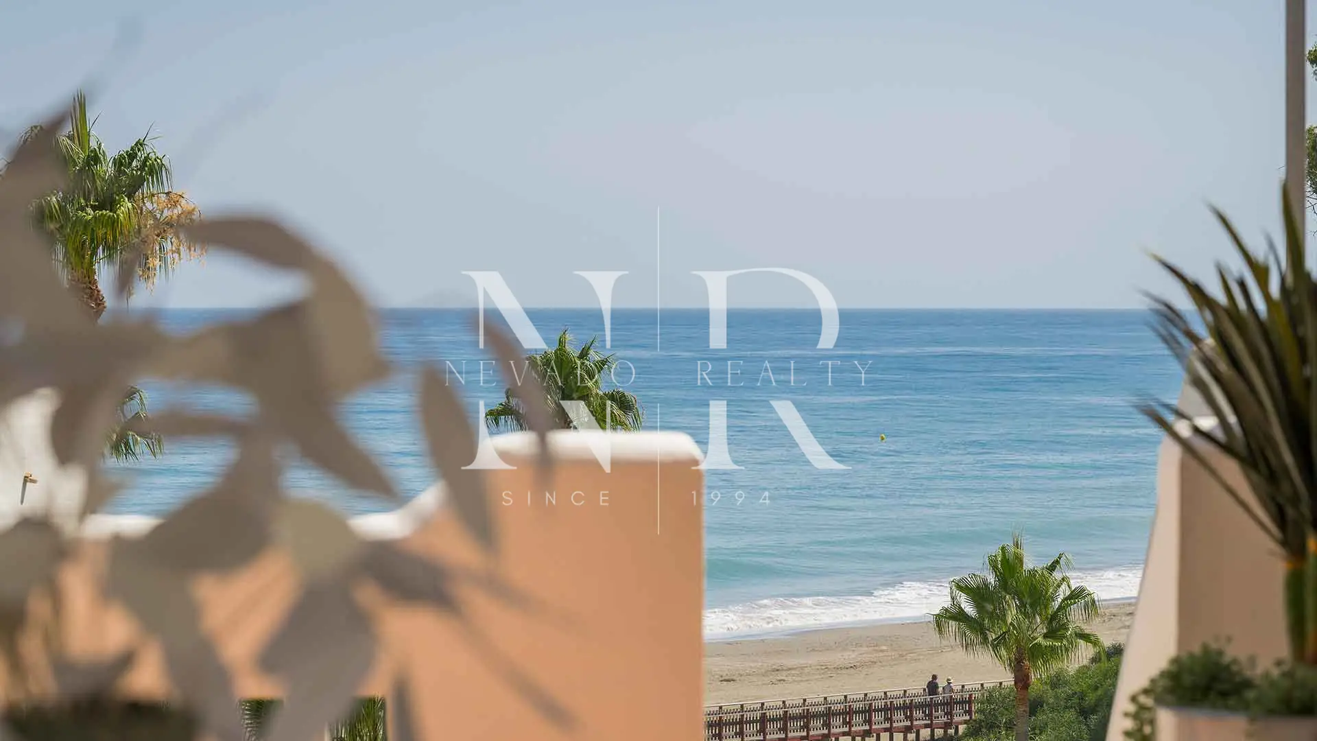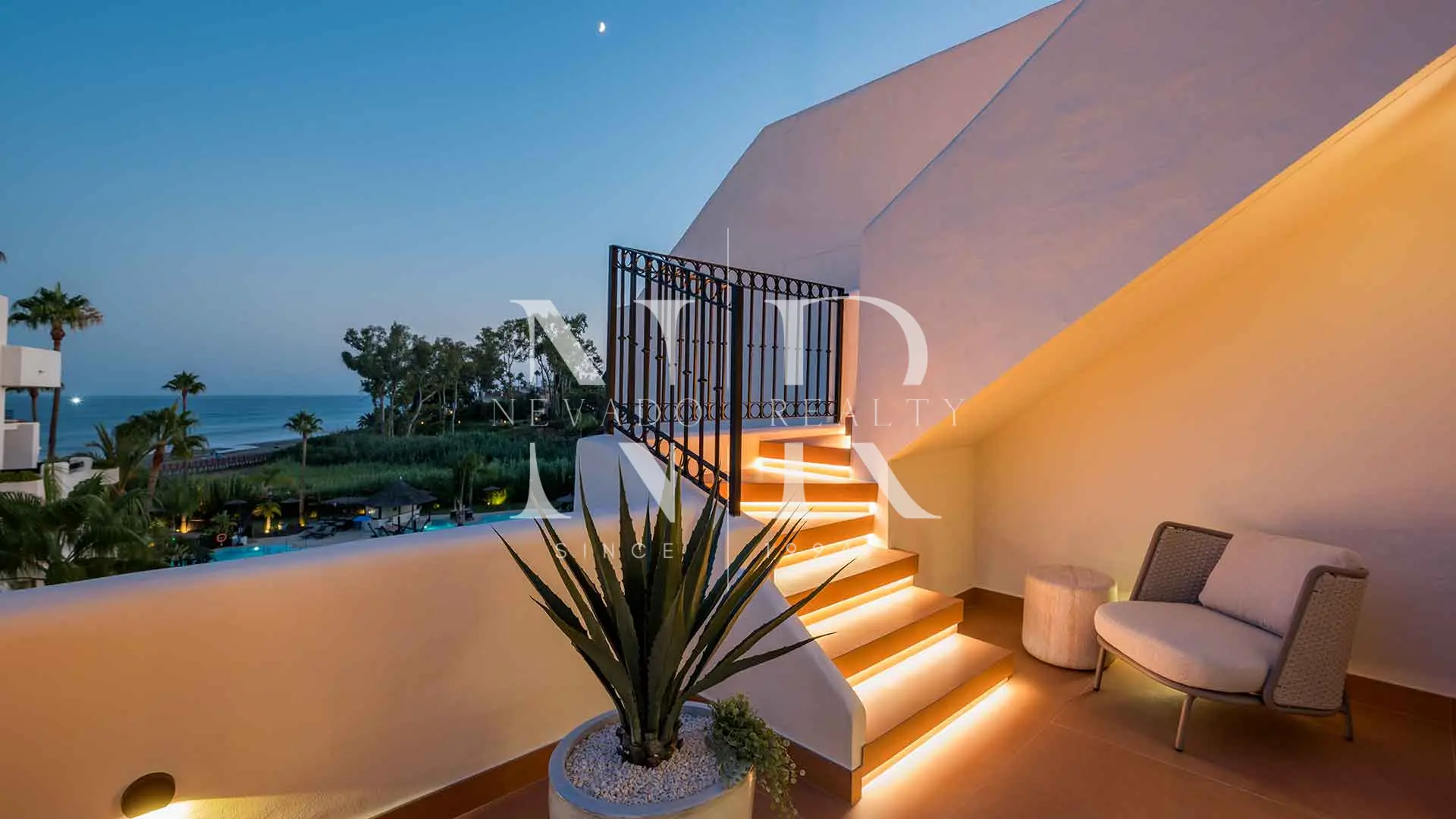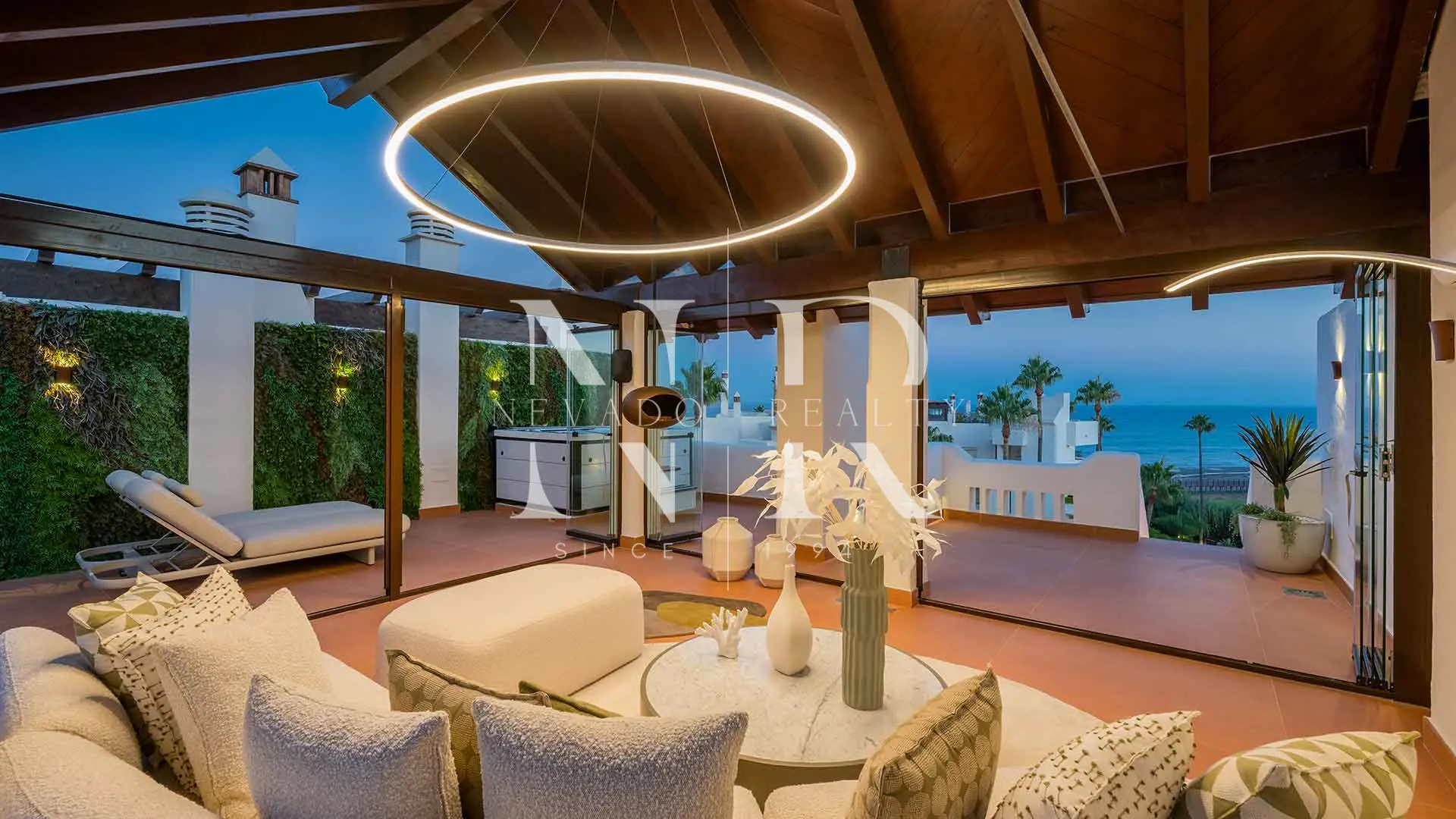 Beachfront penthouse for sale in Bahía del Velerín development. This extraordinary penthouse has been completely renovated to the highest German quality standards and boasts 134 m² of built area and an impressive 183 m² terrace, located in an exclusive gated community with 24-hour security.