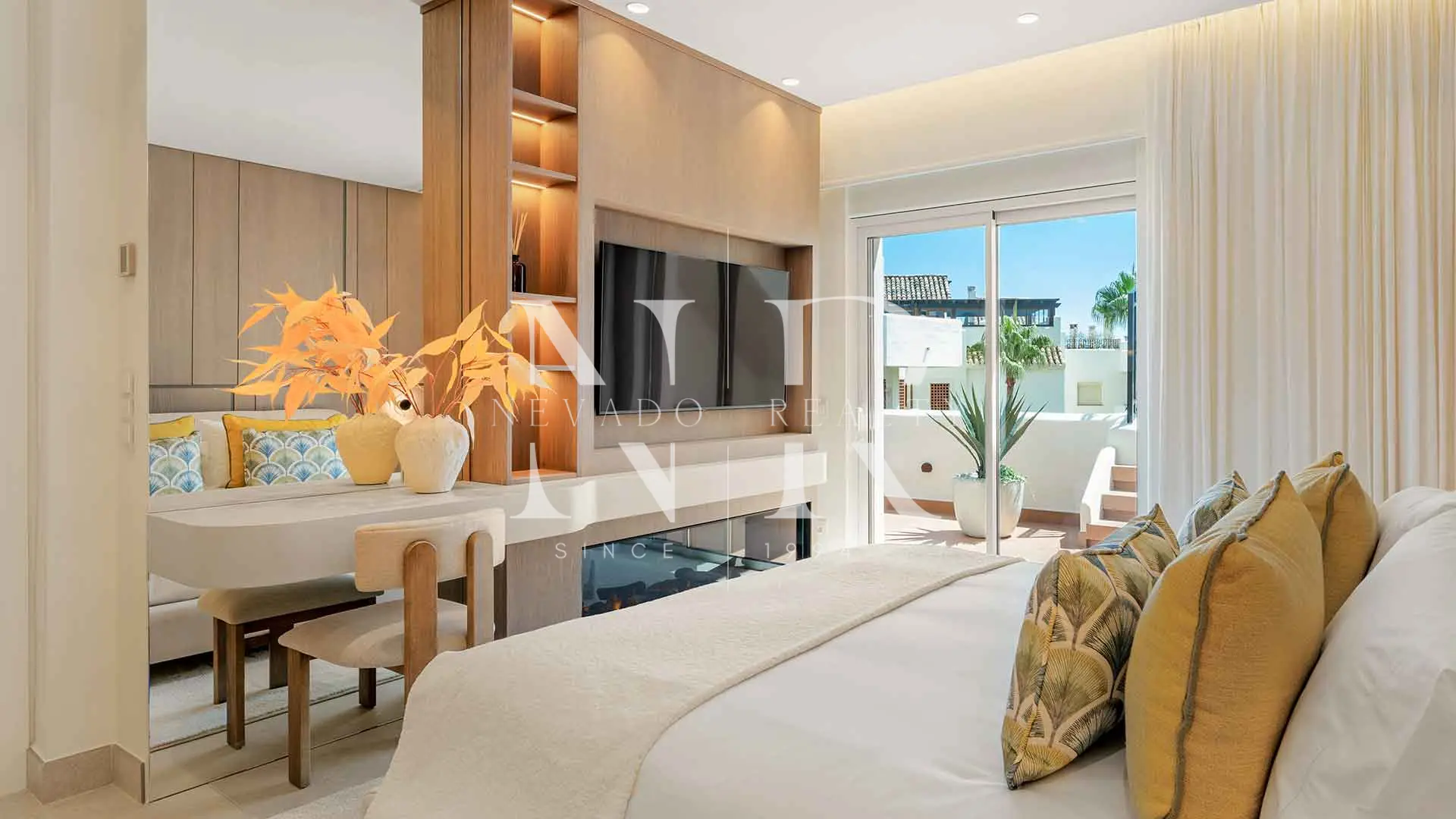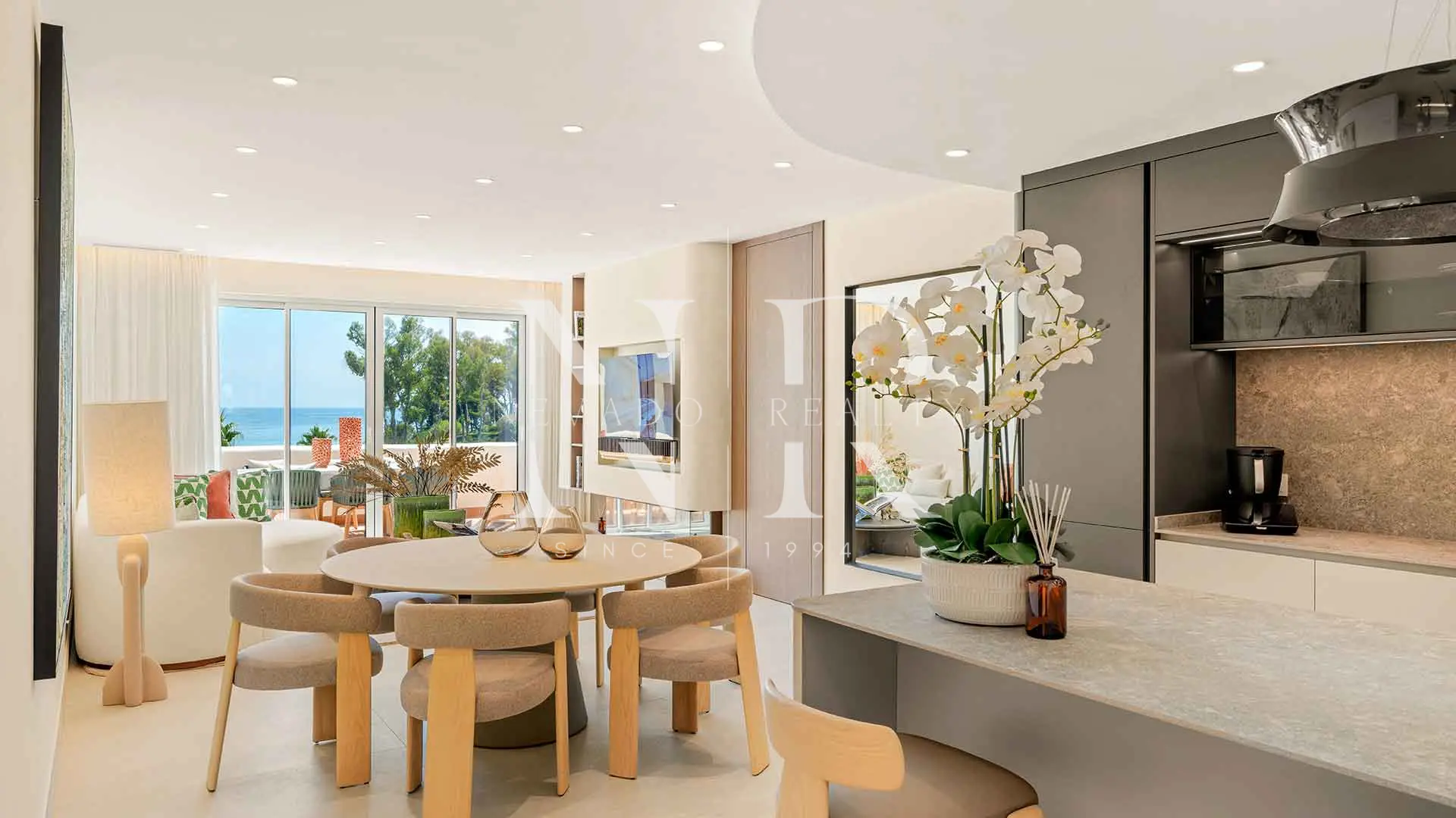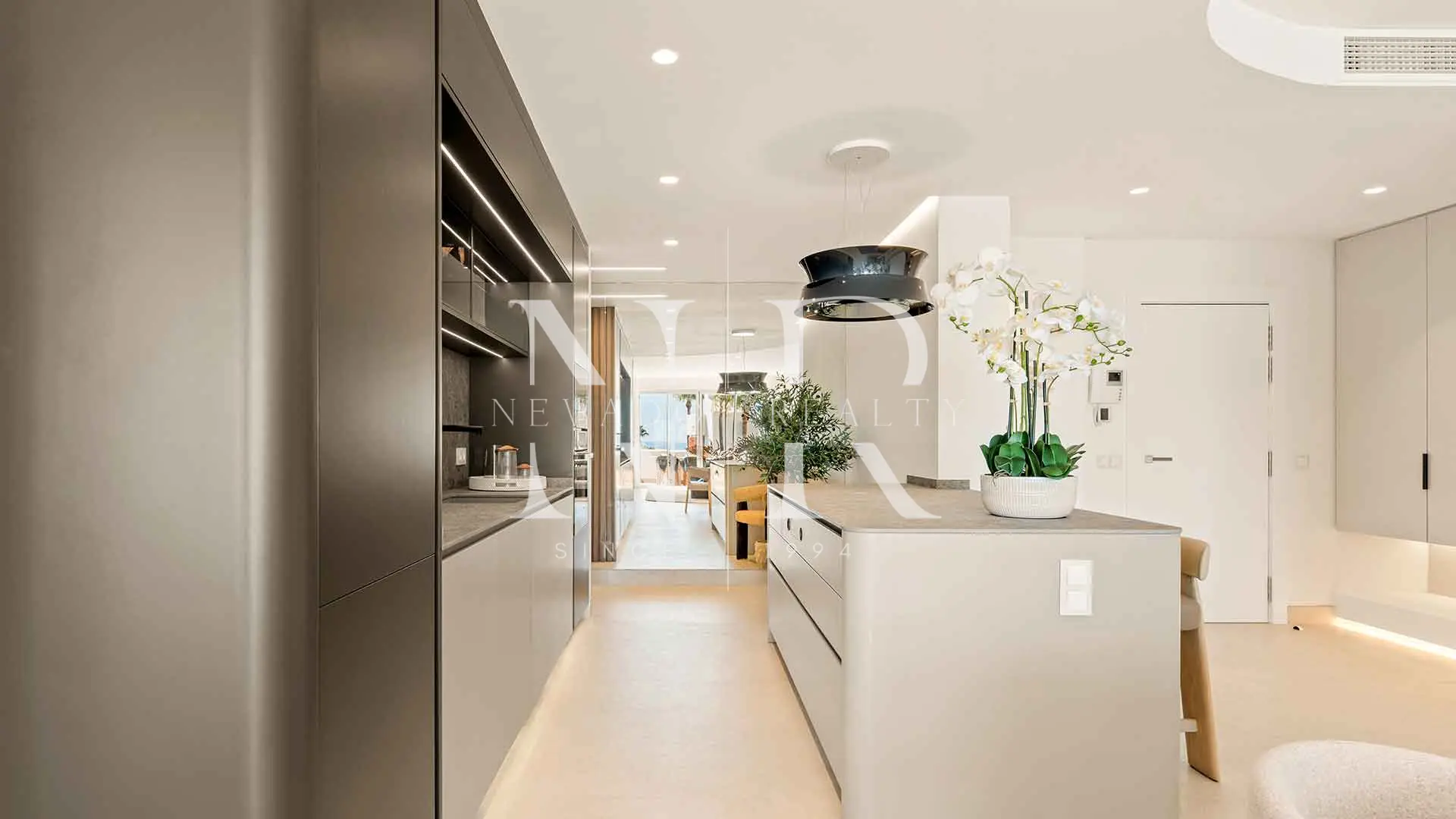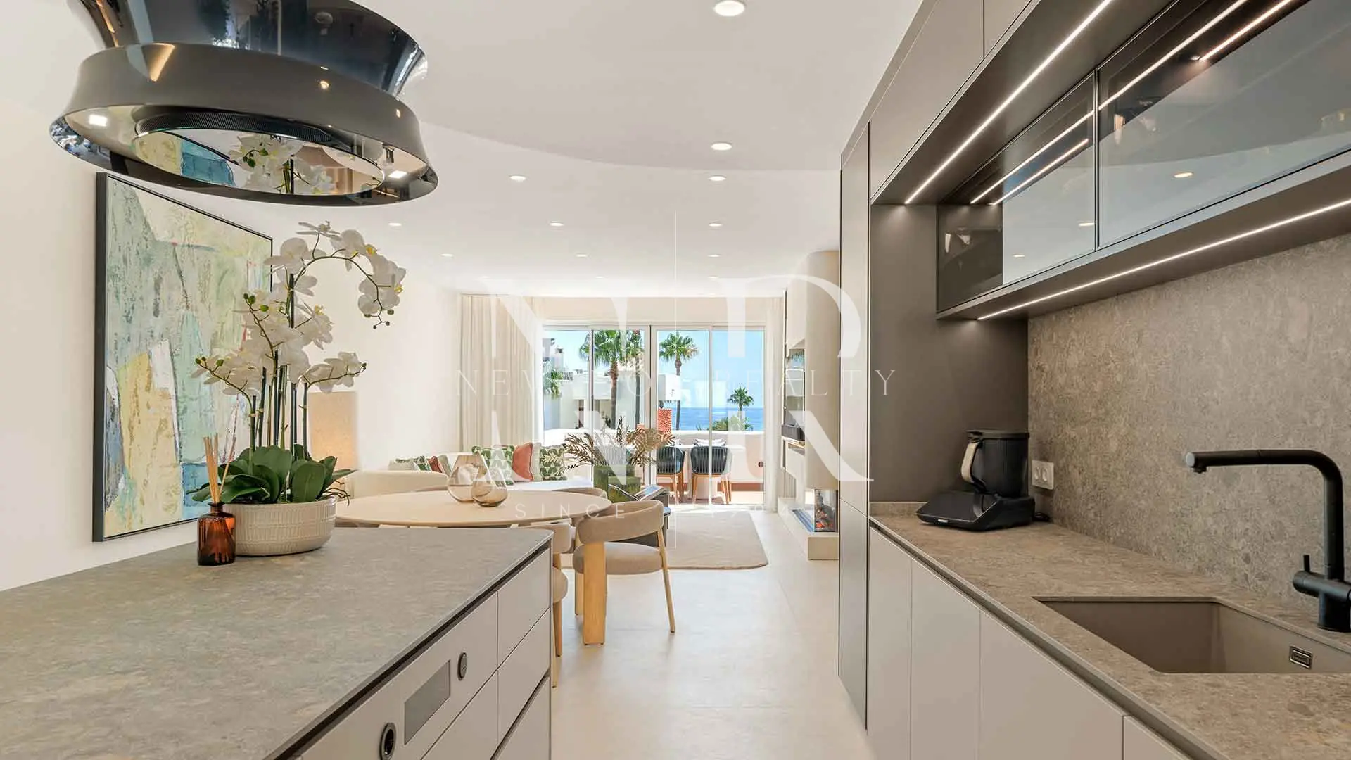 Beachfront penthouse for sale in Bahía del Velerín development. This extraordinary penthouse has been completely renovated to the highest German quality standards and boasts 134 m² of built area and an impressive 183 m² terrace, located in an exclusive gated community with 24-hour security.