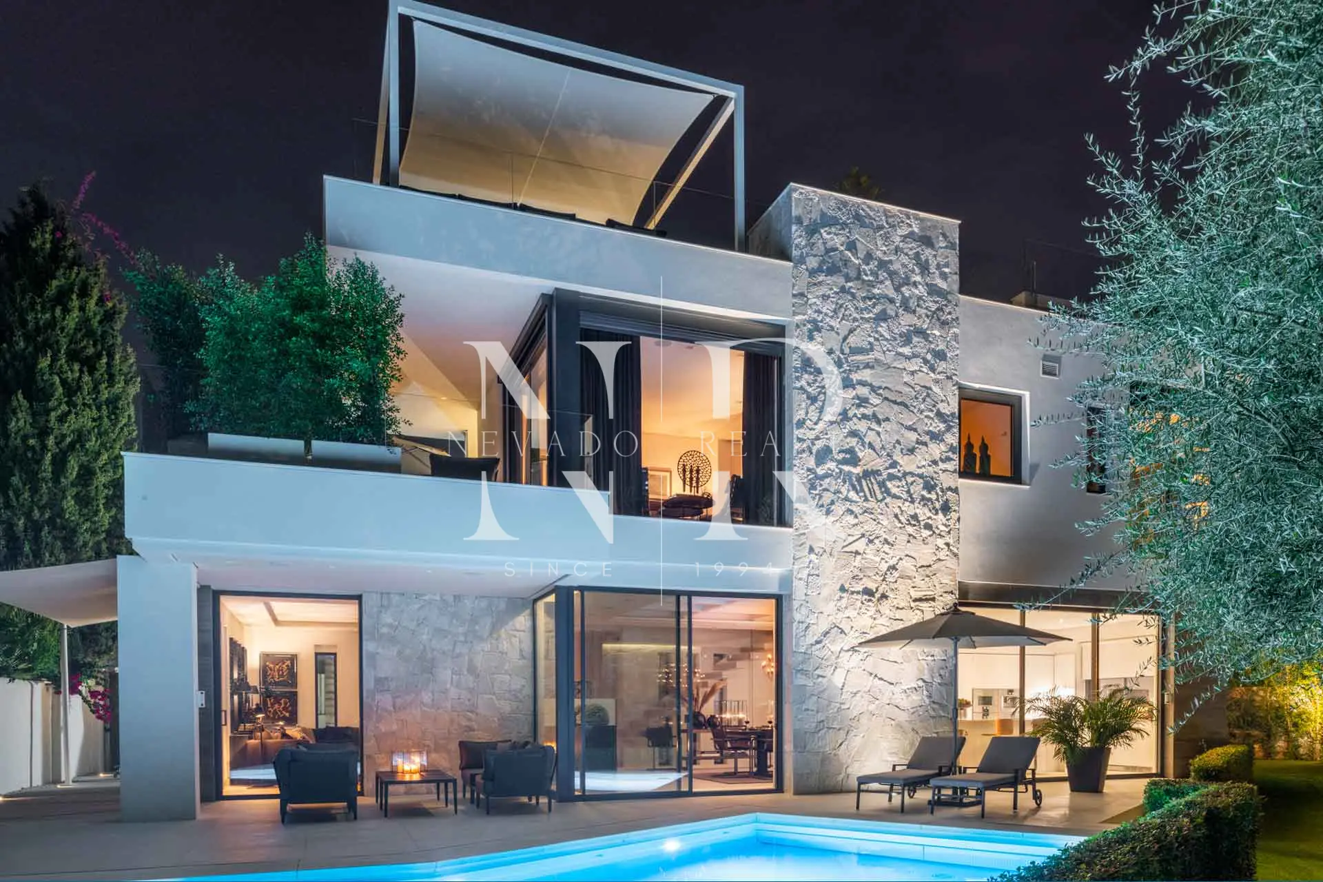 It is a villa ready to move into. Its refined and modern design presents us with a magazine house. At the same time, it is a property with all the comforts to enjoy your villa to the fullest. Underfloor heating, air conditioning, electric shutters, fireplace, barbecue, solarium, games room… The house is sold fully furnished and the kitchen is fully equipped.