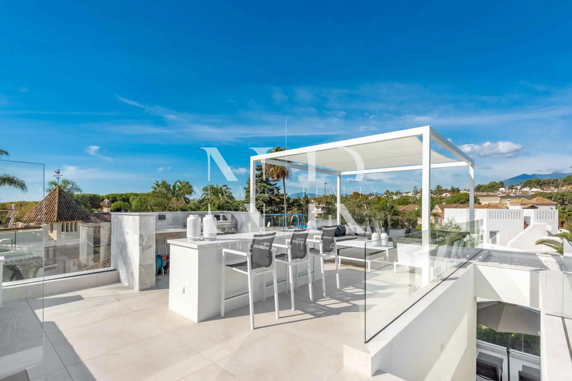 Villa in urbanization Casablanca, next to the beach for sale. Villa in urbanization Casablanca next to the beach with sea and mountain views. This villa is located in the heart of the Golden Mile, 250 meters from the beach. Perfect for those who want to enjoy the sun and Marbella’s social life.