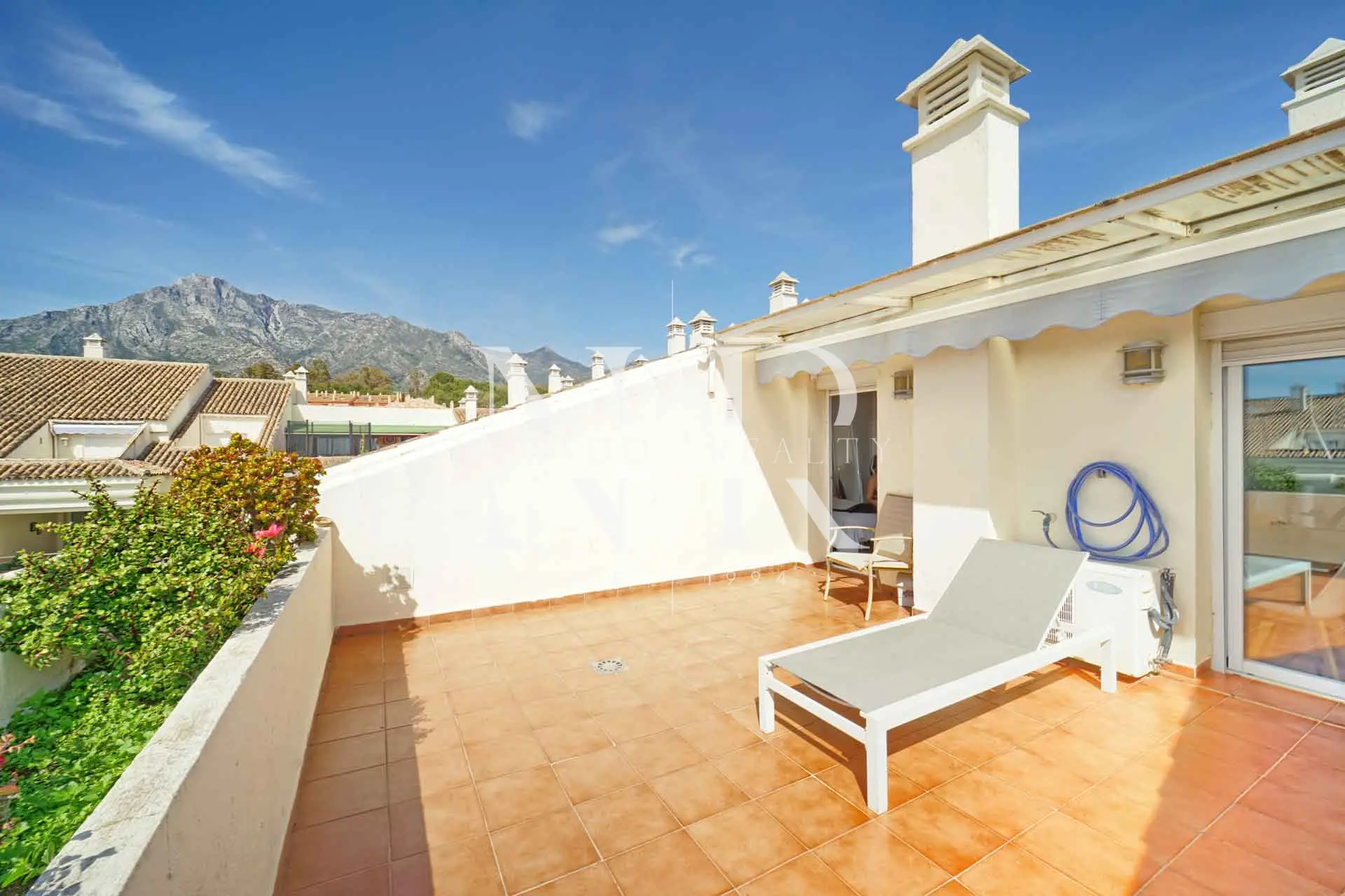 Penthouse in Costa Nagüeles for sale. Close to the beach and Marbella centre. It is located in beautiful urbanization located in the heart of Marbella’s Golden Mile, 5 minute’s walk from the beach, near the historic center in an area with pharmacies, supermarkets, shops, restaurants, and all facilities within walking distance. The international private school Swans, as well as the British College, is right next door as well as the Marbella Conference Center.