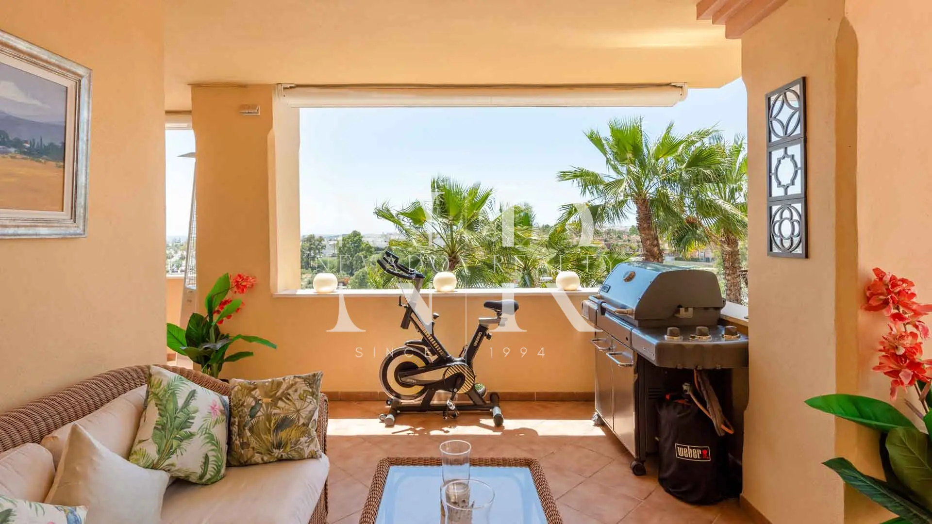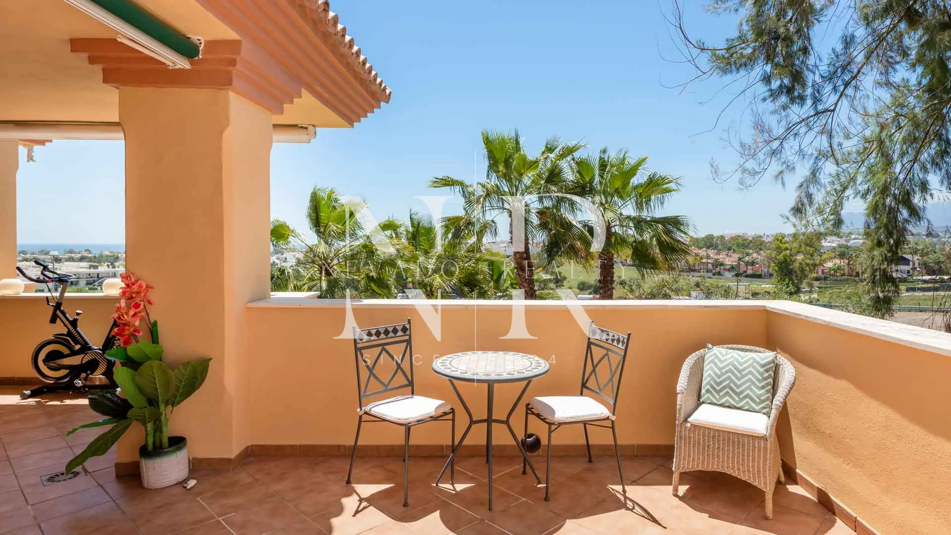 Flat in Urbanisation Cumbres del Rodeo with sea views for sale. This flat in the quiet green urbanisation of Cumbres del Rodeo offers a tranquil lifestyle in a gated community with sea and mountain views.