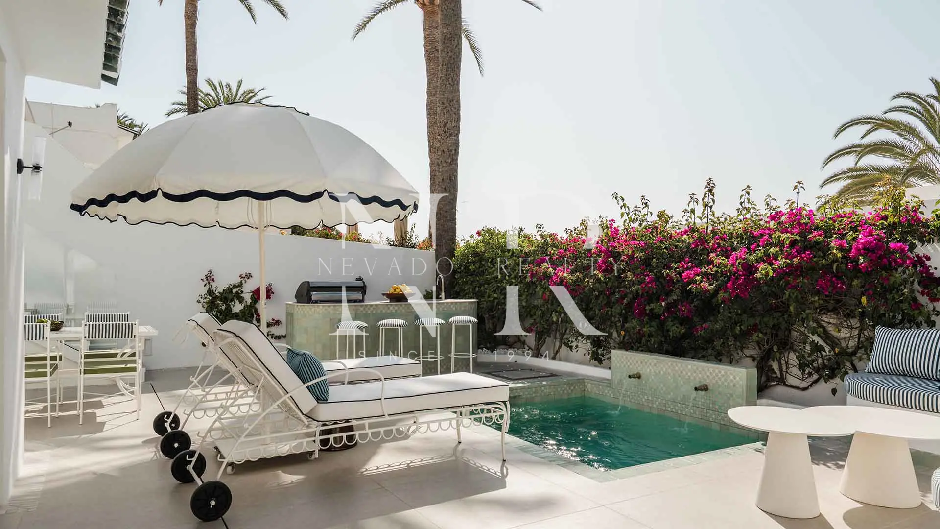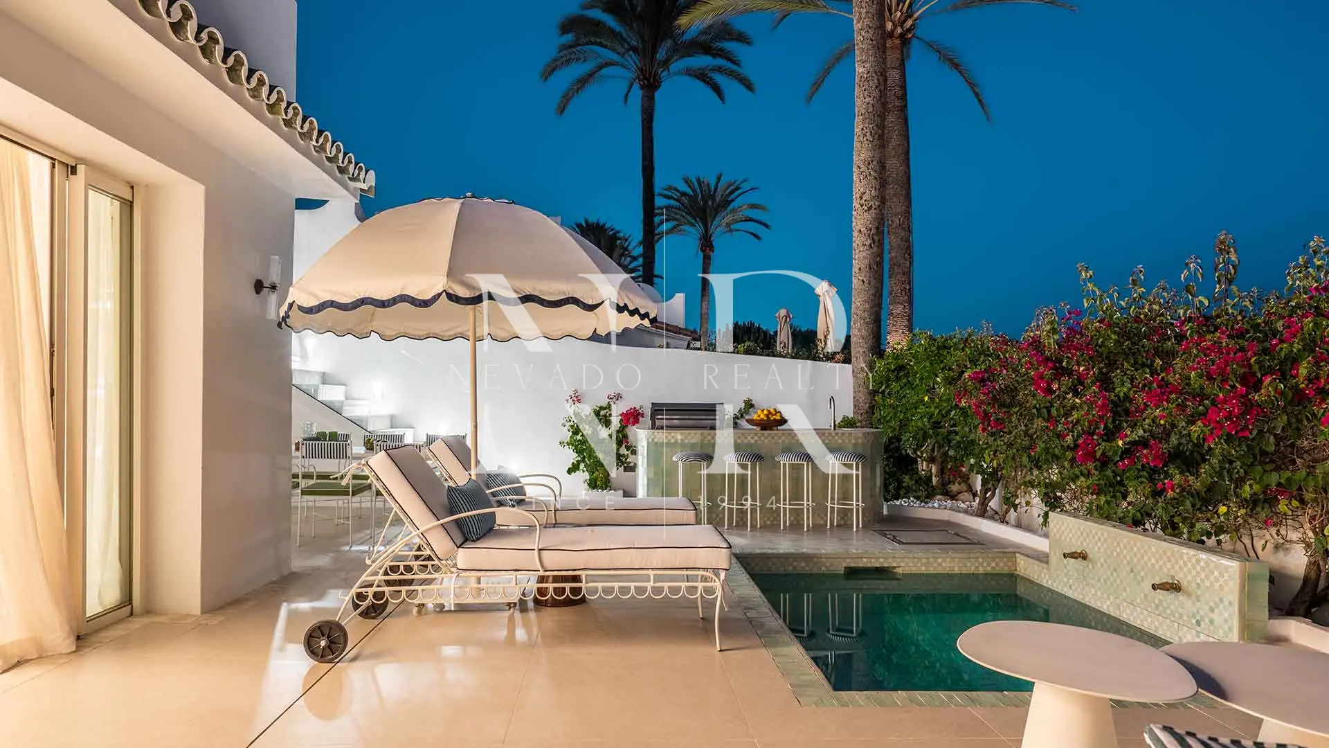 Semi-detached house for sale in the El Oasis Club development, on the beachfront. Elegance and sophistication on the first beach line in the Golden Mill of Marbella. This extraordinary house, located in the exclusive Oasis Club complex, is one of the most attractive properties in the market thanks to its privileged purchase and inspired renovation in the iconic style of the Marbella Club.