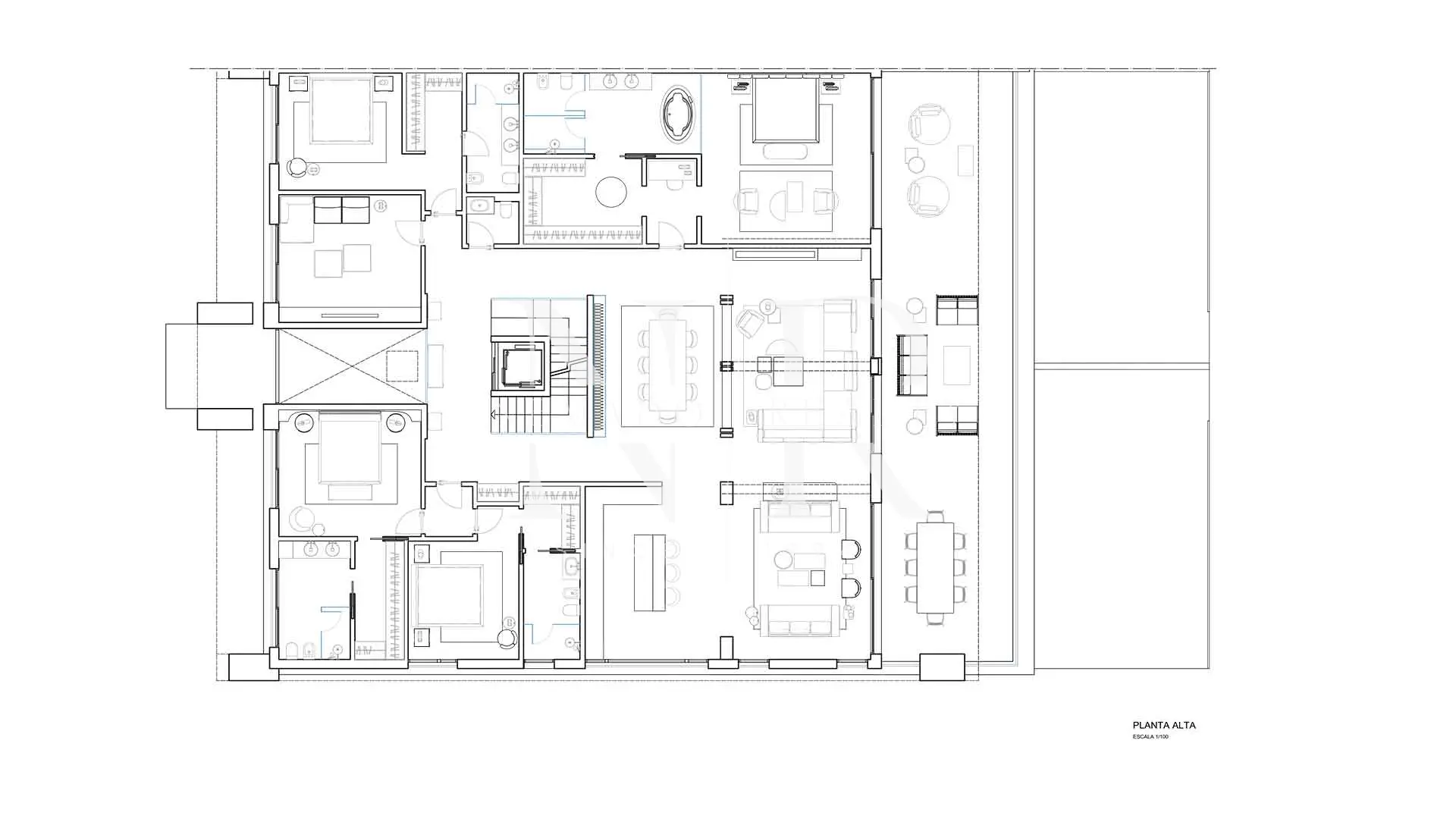 On the upper floor, the private solarium becomes the star feature of the property, equipped with a private swimming pool where you can relax in total privacy while enjoying views of the sea and the city. This outdoor space also offers the possibility of incorporating a bar or barbecue area, ideal for organising outdoor gatherings and celebrations.