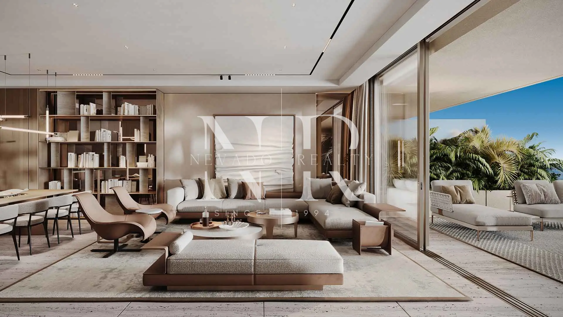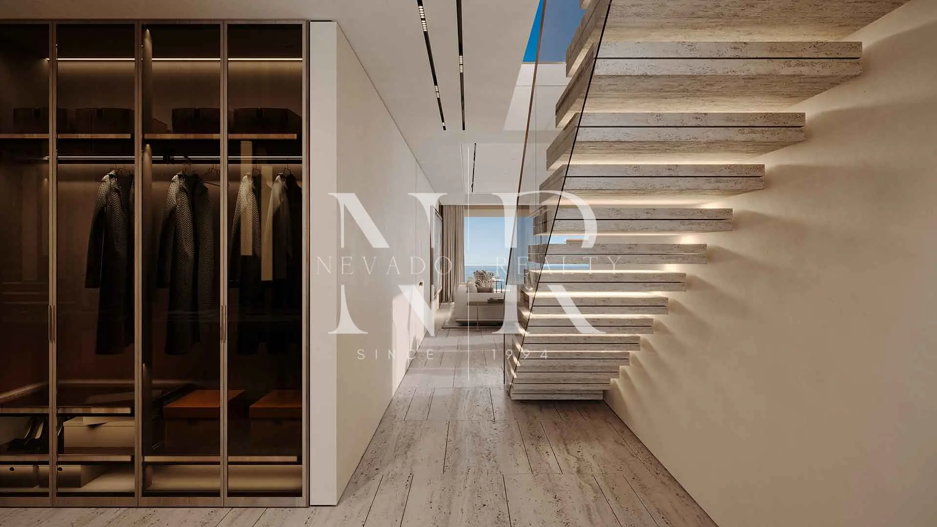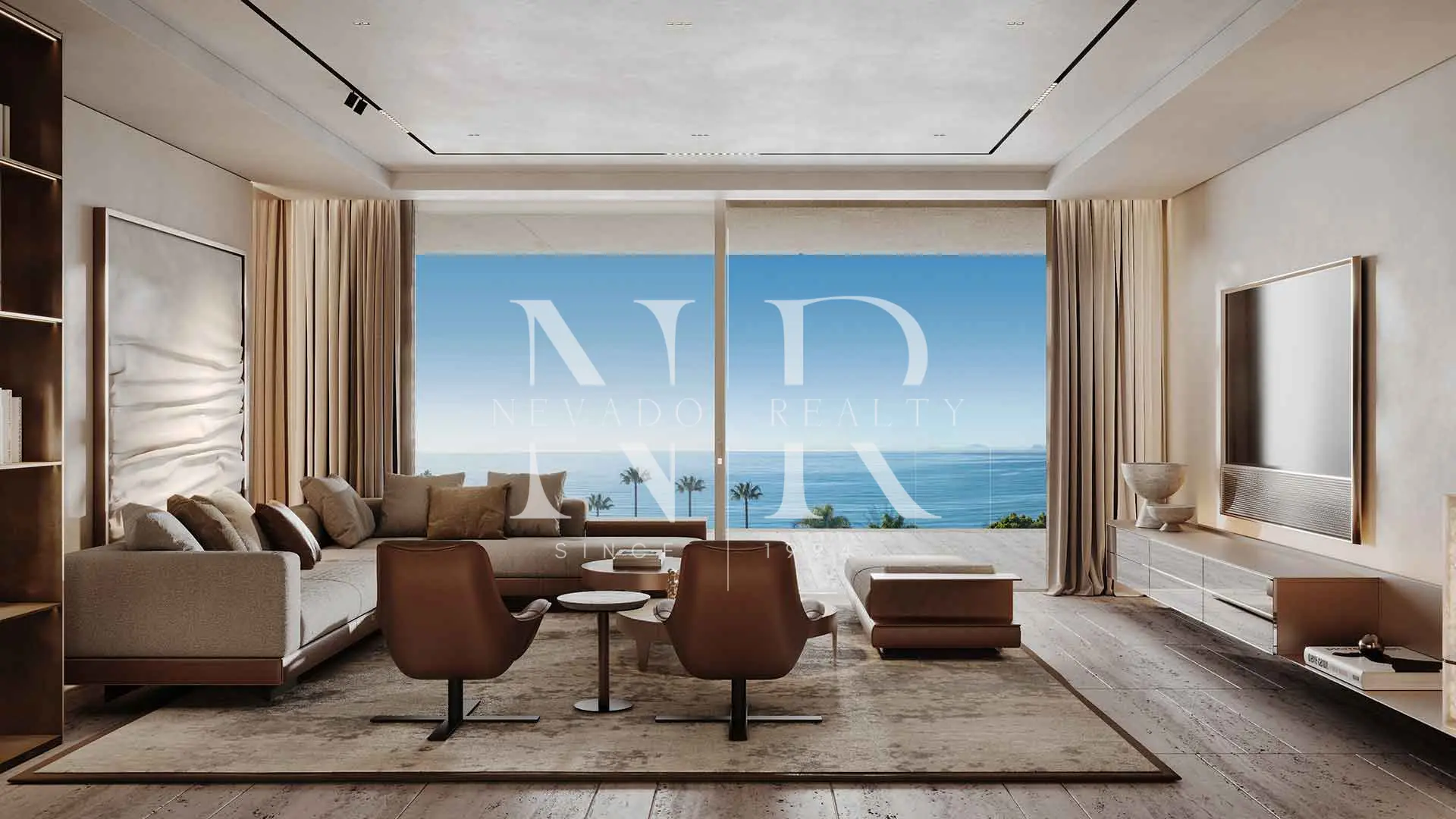 Sea-facing penthouse on the beachfront in Estepona for sale. This penthouse, complete with a private swimming pool, is one of the most iconic properties in the complex. Priced at €6,400,000, this residence offers 3 bedrooms and 3 bathrooms (plus a guest toilet). Its scale is unrivalled: 224 m² of interior space, a 288 m² terrace and access to a private super-garage with a lift leading directly to the property.