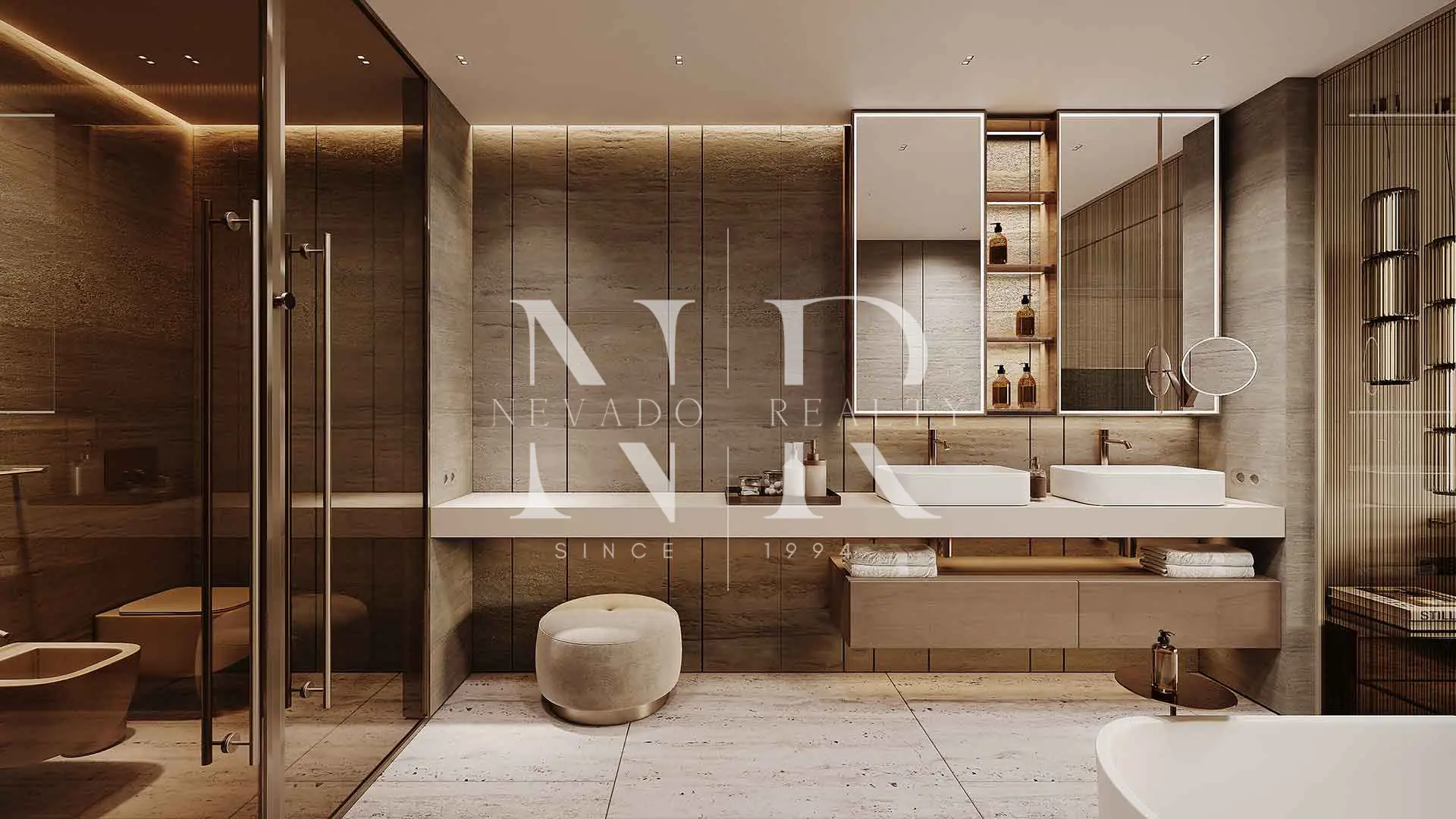 As a WELL-certified property, the penthouse is equipped with state-of-the-art health-focused technology: air purification with HEPA filters, reverse osmosis water treatment and a circadian lighting system that mimics natural sunlight. The finishes are magnificent: large-format travertine marble floors, a Poliform kitchen with a full Gaggenau suite (including a wine cooler and steam ovens) and Gessi technical taps. The entire system is managed via integrated KNX home automation.