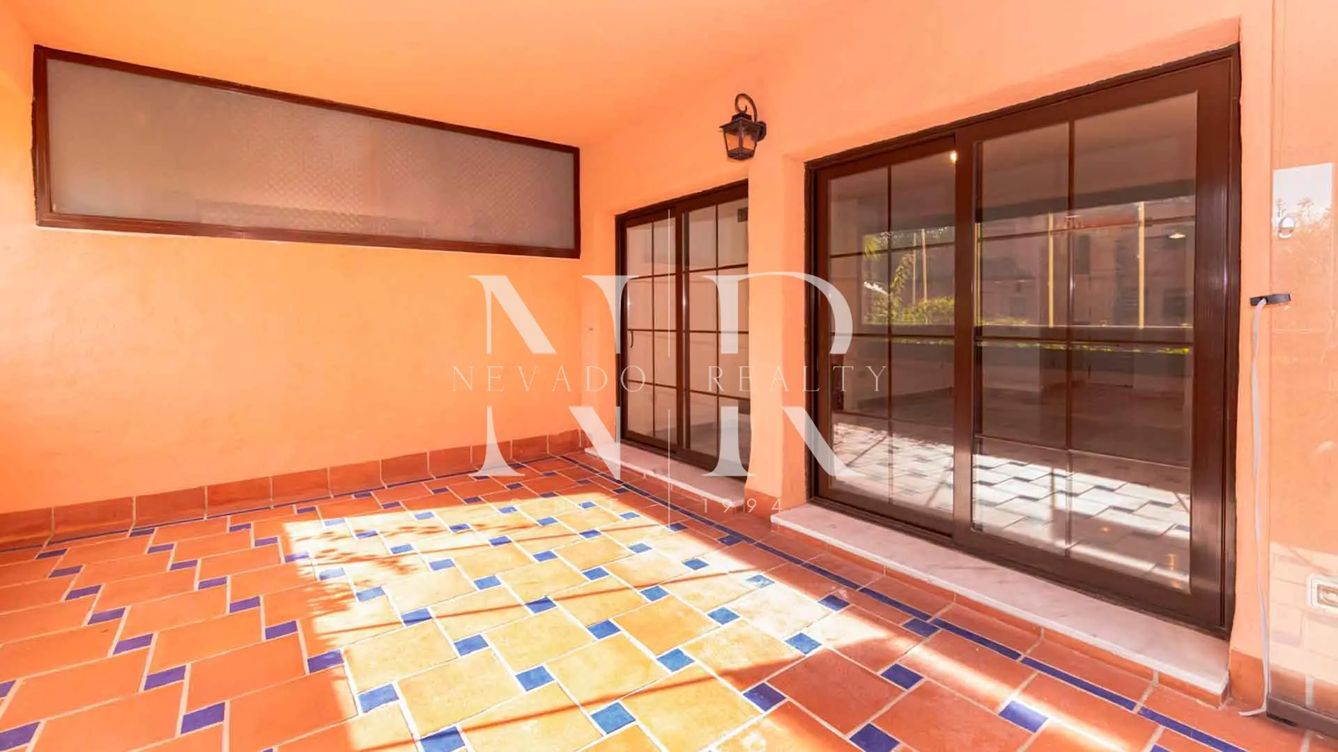 Beachfront apartment in Hacienda del Sol, Estepona, for sale. Imagine opening the curtains and letting the southern light flood into the living room. Feel the sea air, the tranquillity of an established community and the peace of mind that comes with knowing that the beach and promenade are just a short walk away. This 4-bedroom, 3-bathroom flat in Hacienda del Sol is designed for those who value space, light and quality of life all year round. 145 m² of well-proportioned interior space connects to a 30 m² terrace (enclosed with glass curtains) so that breakfasts, teleworking or dinners with friends can flow smoothly no matter the time of year.