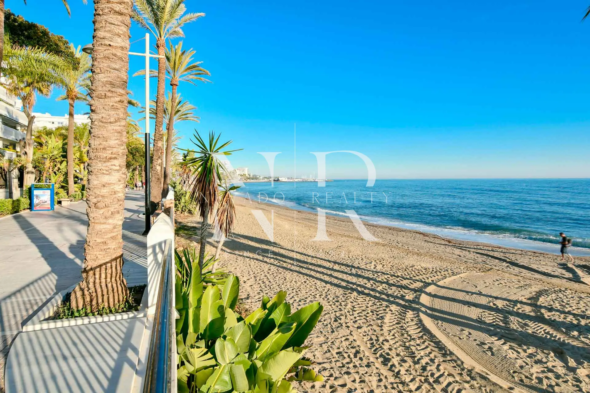 Apartment in Jardín del Mediterráneo on the beachfront for sale. Jardin del Mediterráneo is an ideal urbanization for those who want to live close to everything that the city center can offer, while being only a few steps from the promenade and beach. One of the most sought-after areas, where one can enjoy tranquility and privacy. A hidden reatreat of calmness in a bustling city centre.