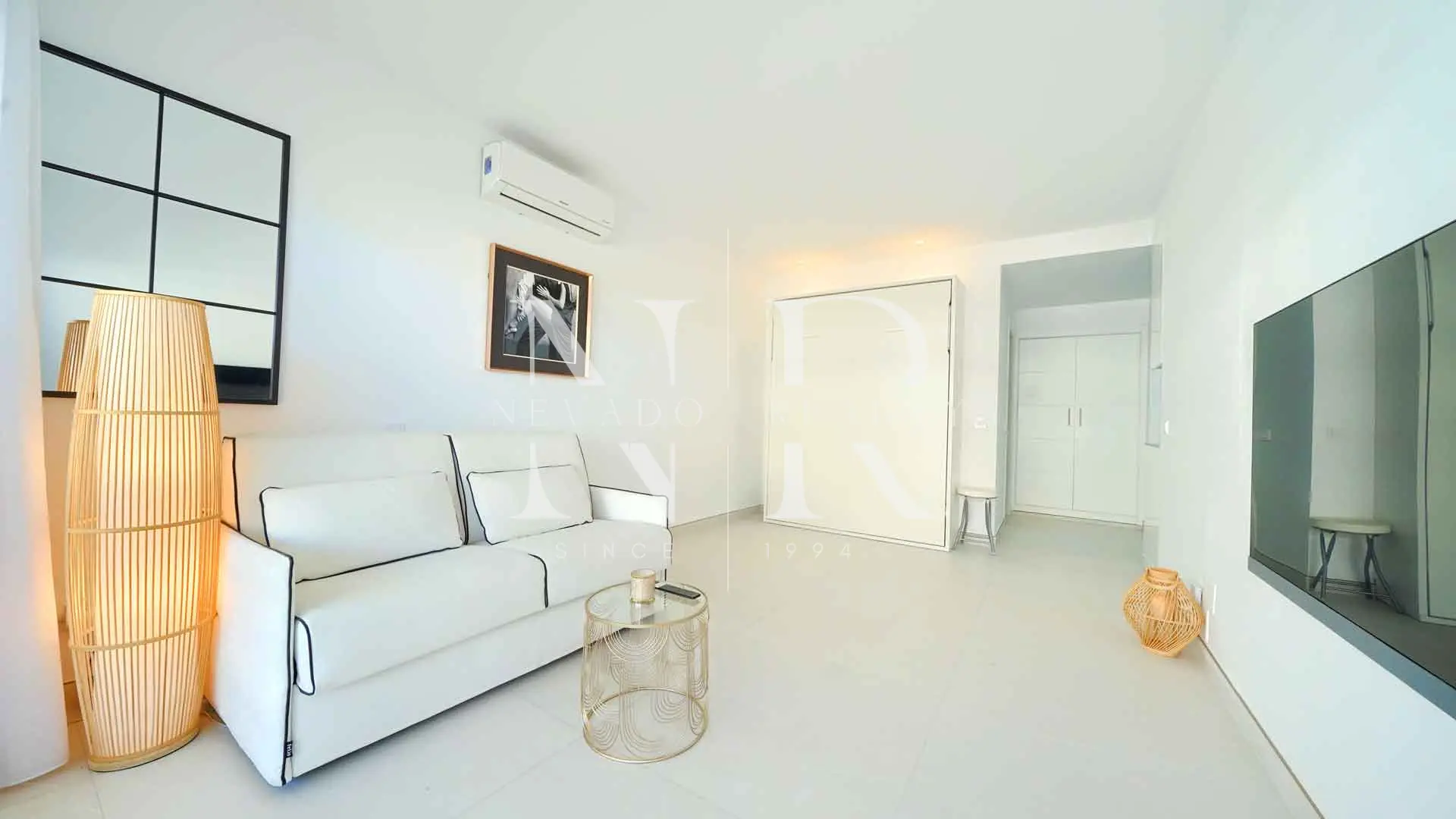 With the beach only a three-minute walk away and Marbella town center 15 minutes away, this studio is ideal for both permanent residence and enjoying holidays on the Costa del Sol. The north-facing property stands out for its modern and functional design. The studio features a living room with a modern wardrobe that opens up to become a very comfortable double bed, making it a functional and relaxing bedroom at night and a modern and comfortable living room during the day.