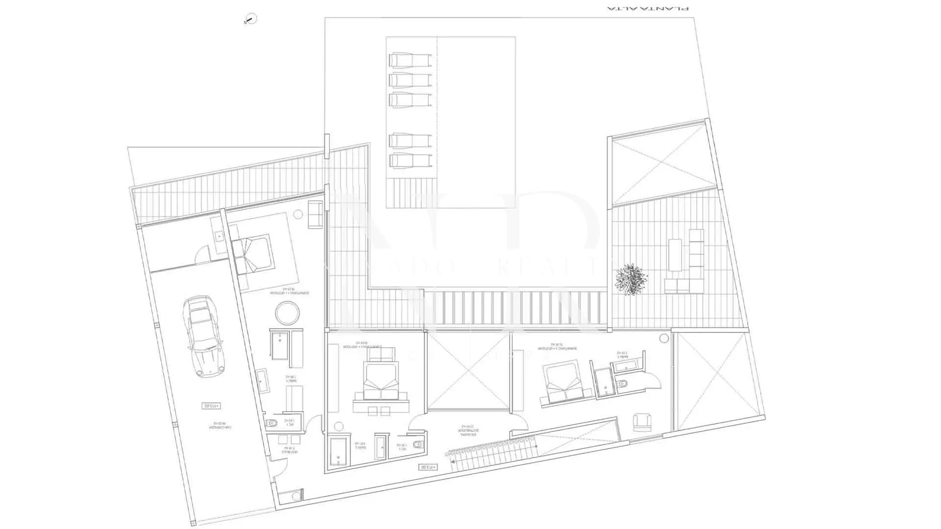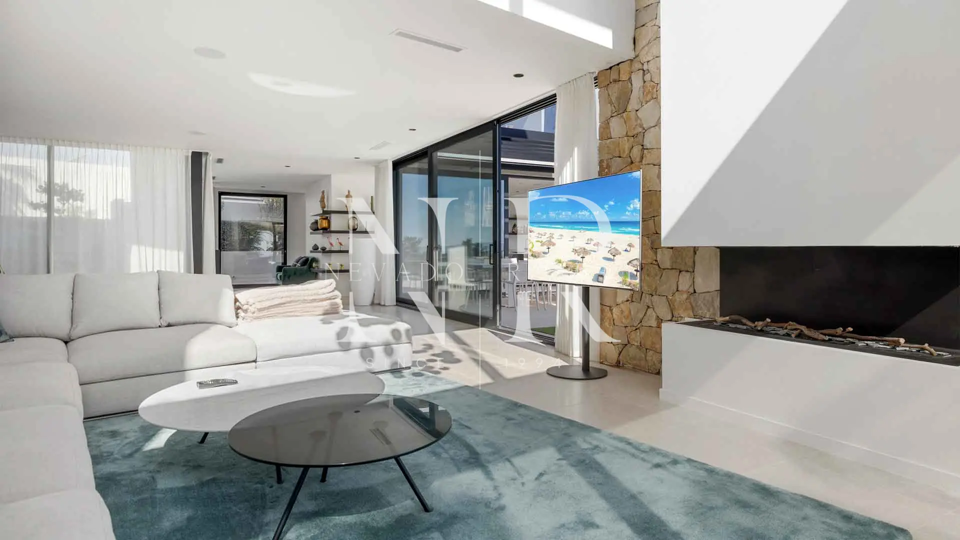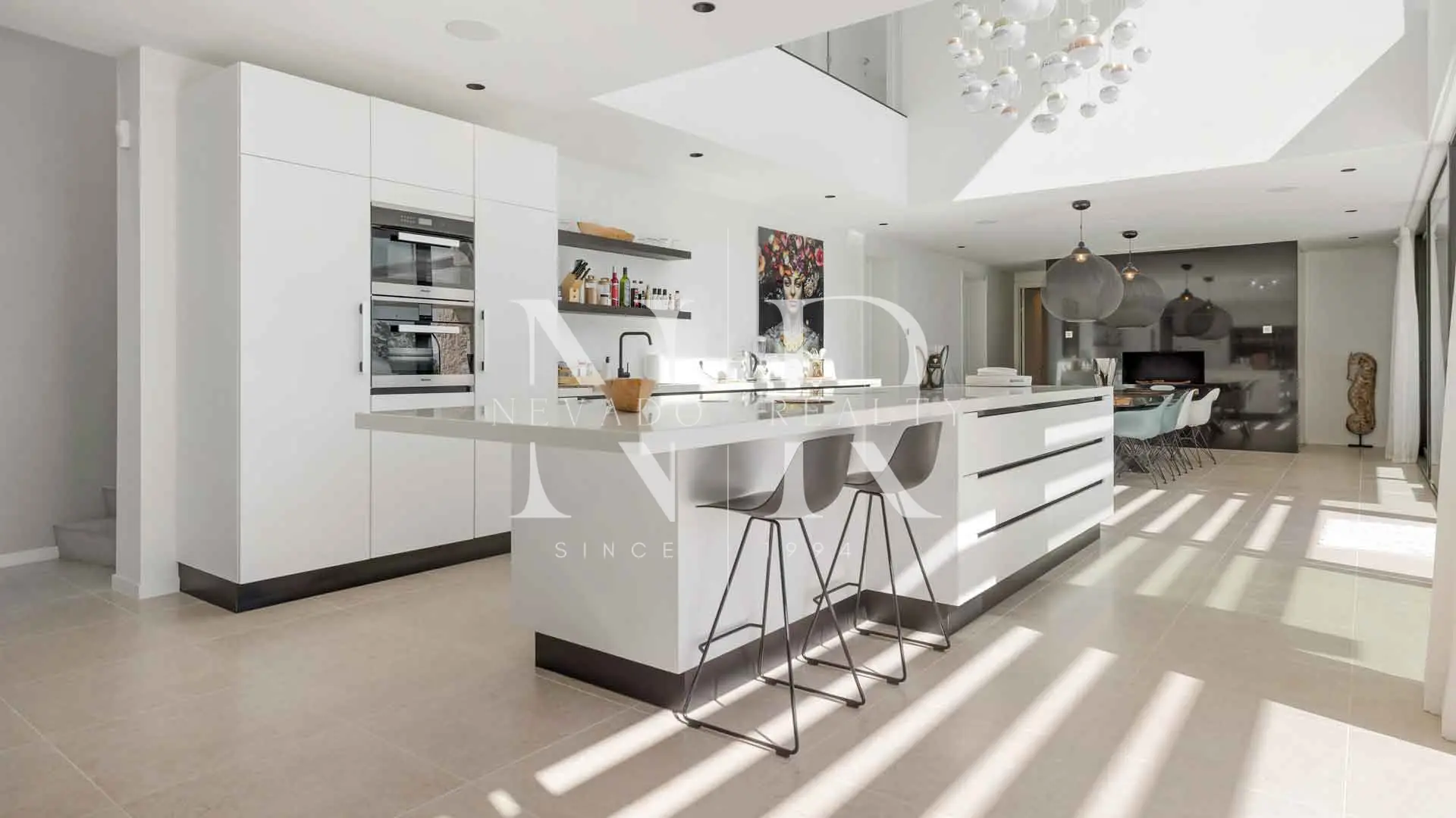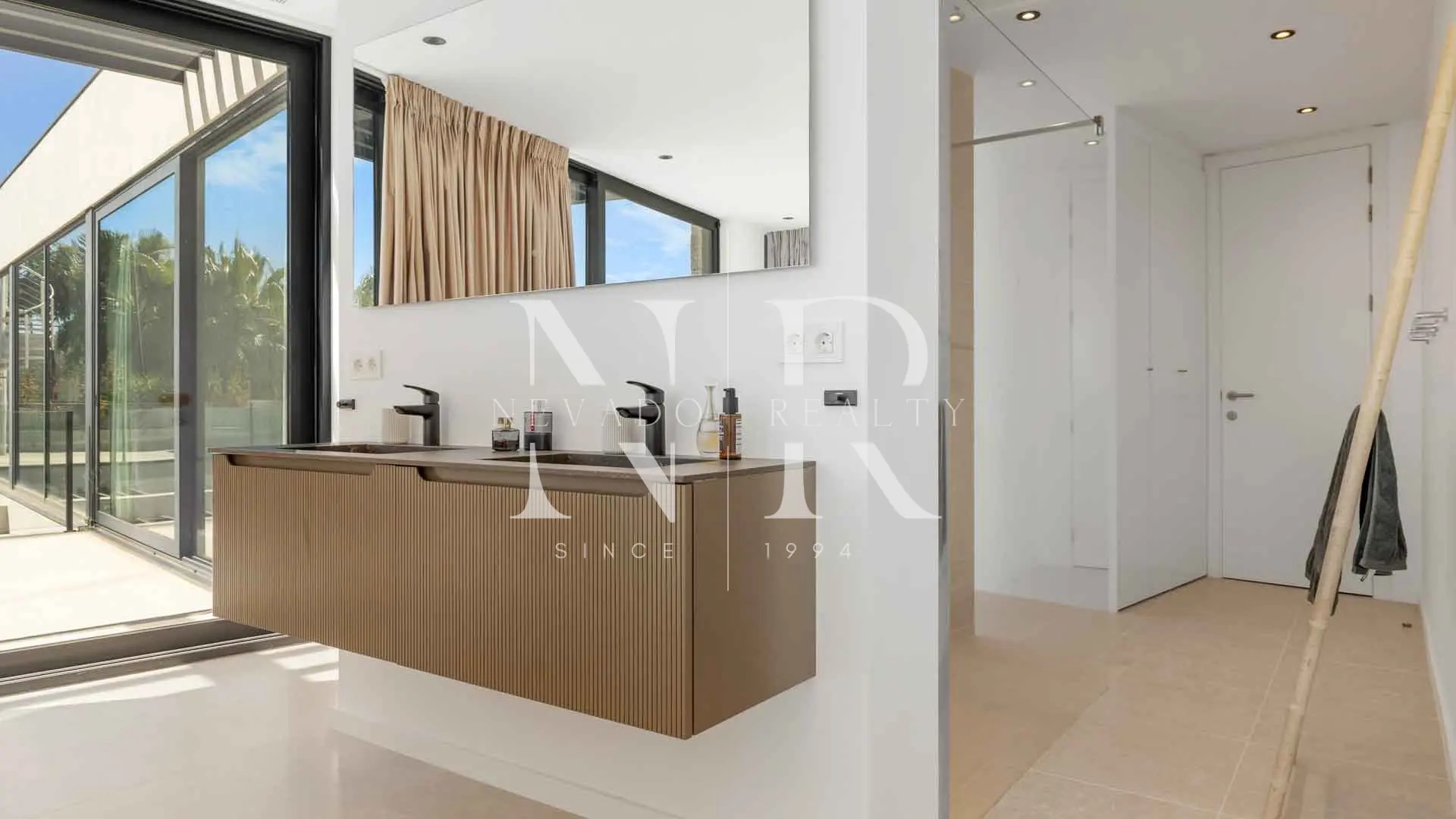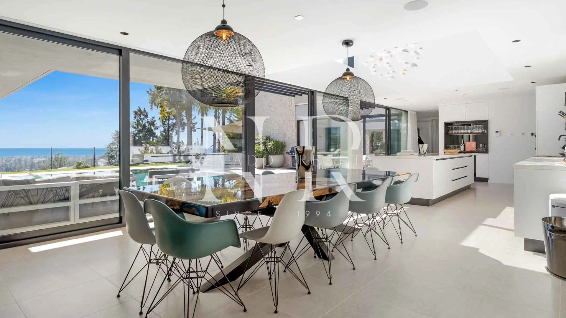Set on a generous plot of 1,195 m², the villa offers 407 m² of living space and 86 m² of terraces, perfectly designed to enjoy the Mediterranean lifestyle. The interior is characterised by its modern lines, high-quality materials and spacious rooms. The living area includes an elegant living room with a fireplace, a fully equipped kitchen and a dining room with direct access to the outdoor areas. Each of the five bedrooms has an en-suite bathroom, including a luxurious master suite with panoramic views. In addition, the property is equipped with air conditioning, underfloor heating and double glazing to ensure comfort throughout the year.